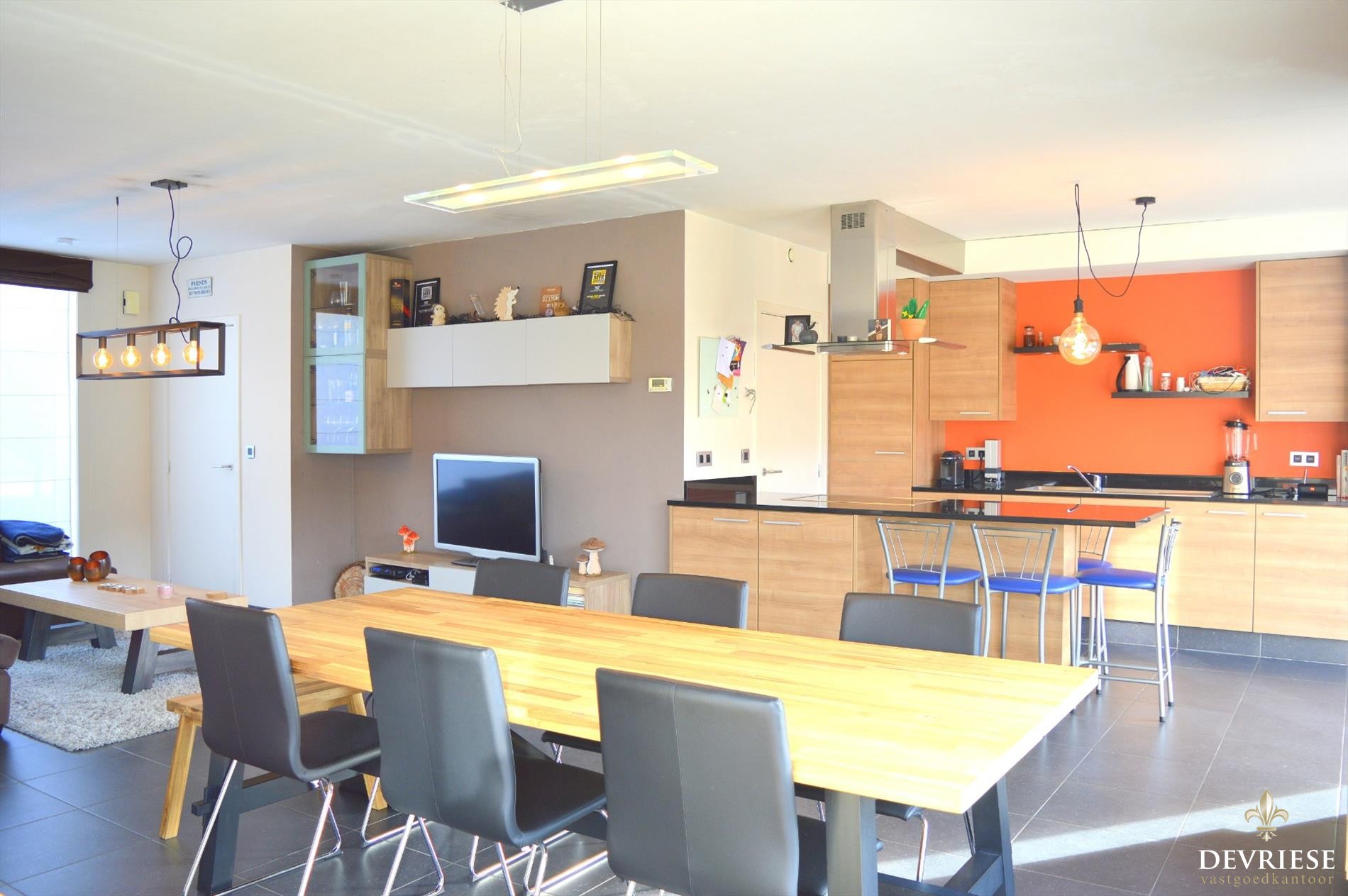 Deze woning kan heel wat adelbrieven voorleggen. Via de ruime inkom ga je enerzijds naar de eerste verdieping, is er een apart gastentoilet of kom je in de leefruimte. Deze geeft al bij de eerste aanblikken een zeer vertrouwd en cosy gevoel, is volledig open en gaat over in de leuke eethoek met open keuken. Dit alles samen creëert een zeer open en ruim gevoel.