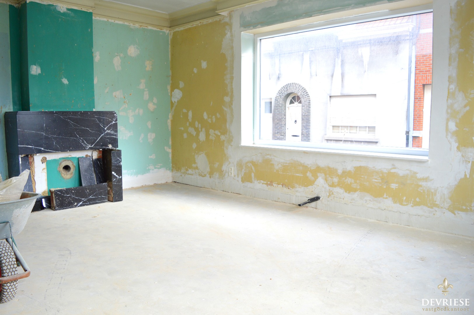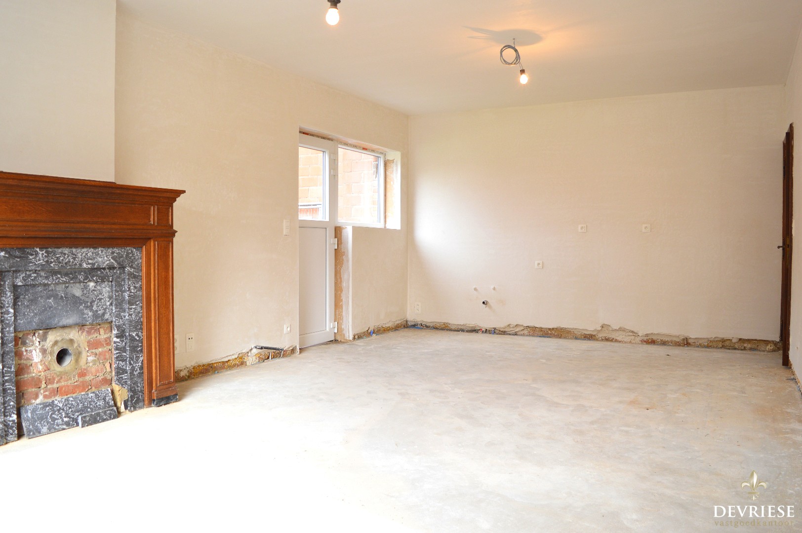 U komt binnen in de ruime en authentieke inkomhal, vooraan de woning is er een eerste ruimte die kan dienst doen als tv kamer, bureel of hobbyruimte, ... Achteraan de woning bevindt zich de leef-en keukenruimte met heel veel lichtinval door de grote ramen en waar de nieuwe eigenaar bovendien zijn ding nog kan doen qua vloeren en keuken.