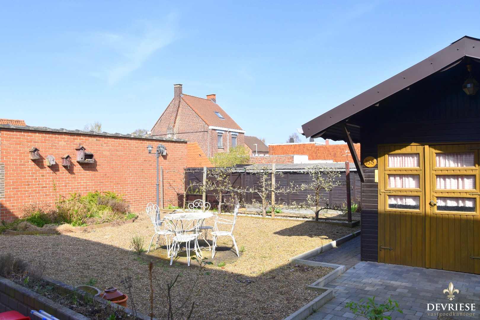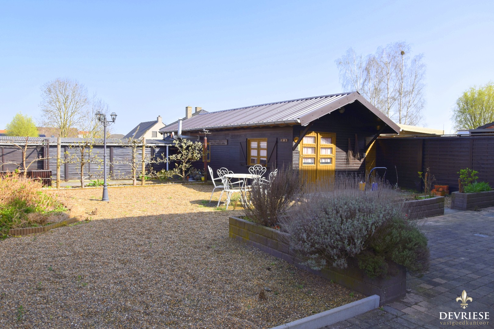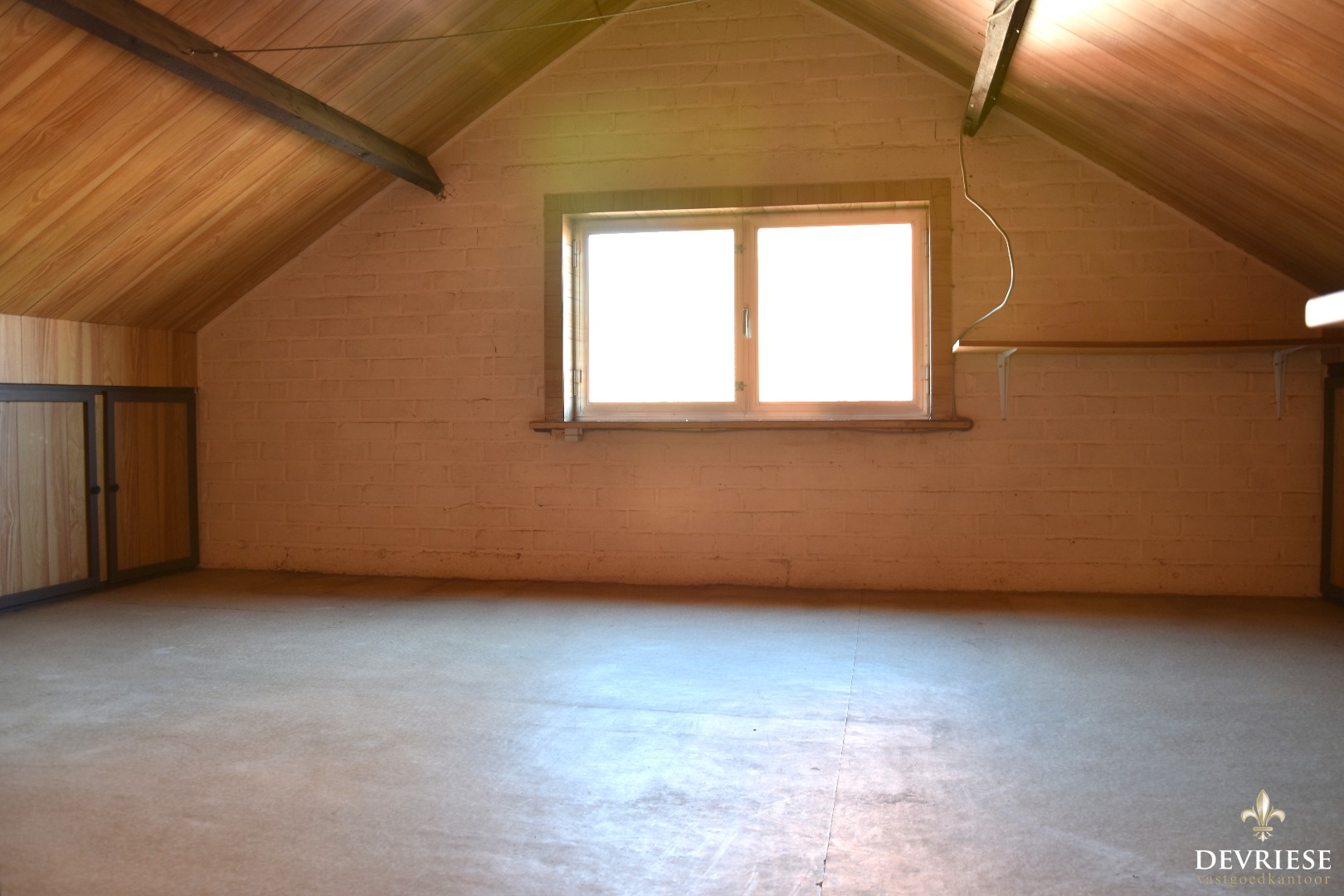Bij het binnenkomen in de inkomhal is er toegang tot de gezellige leefruimte met gaskachel en prachtige, authentieke schouw met aansluitend de ruime keuken. Vanuit beide is er vol zicht op de tuin achteraan. Door de vele raampartijen geniet u in beide volop van de lichtinval. Er is bovendien een garage voorzien met hierbij toegang tot de kelder. In de tuin achteraan geniet u van de rust en hier beschikt u bovendien over een groot tuinhuis, en dus heel wat bergplaats.