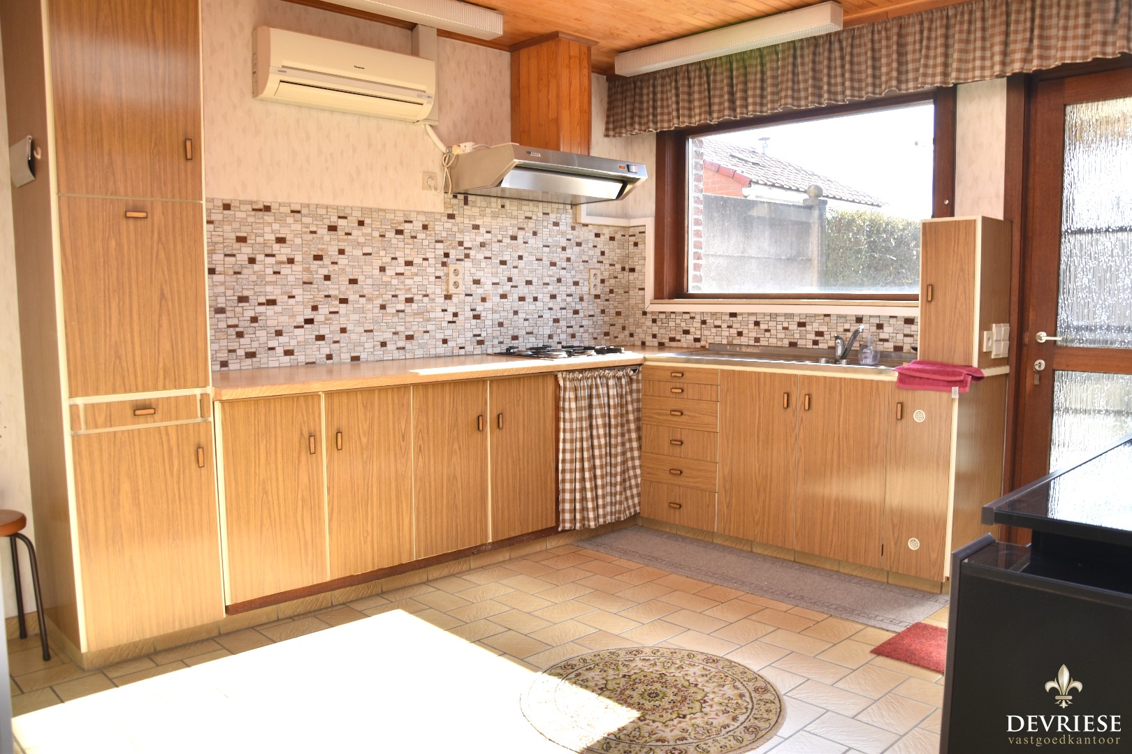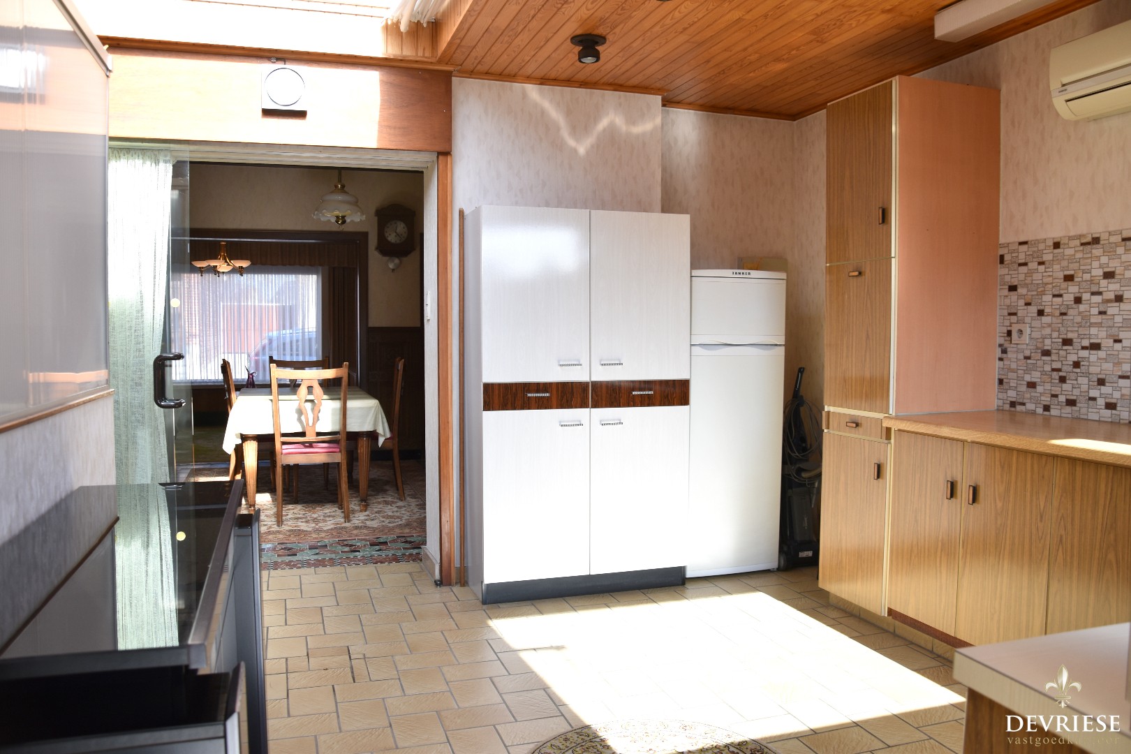 Later werd een uitbouw voorzien met grote lichtkoepel. De keuken geniet hierdoor extra lichtinval, alsook zicht op het terras met gunstige zuid oriëntatie. Tevens is de badkamer met bad en lavabo op het gelijkvloers voorzien.