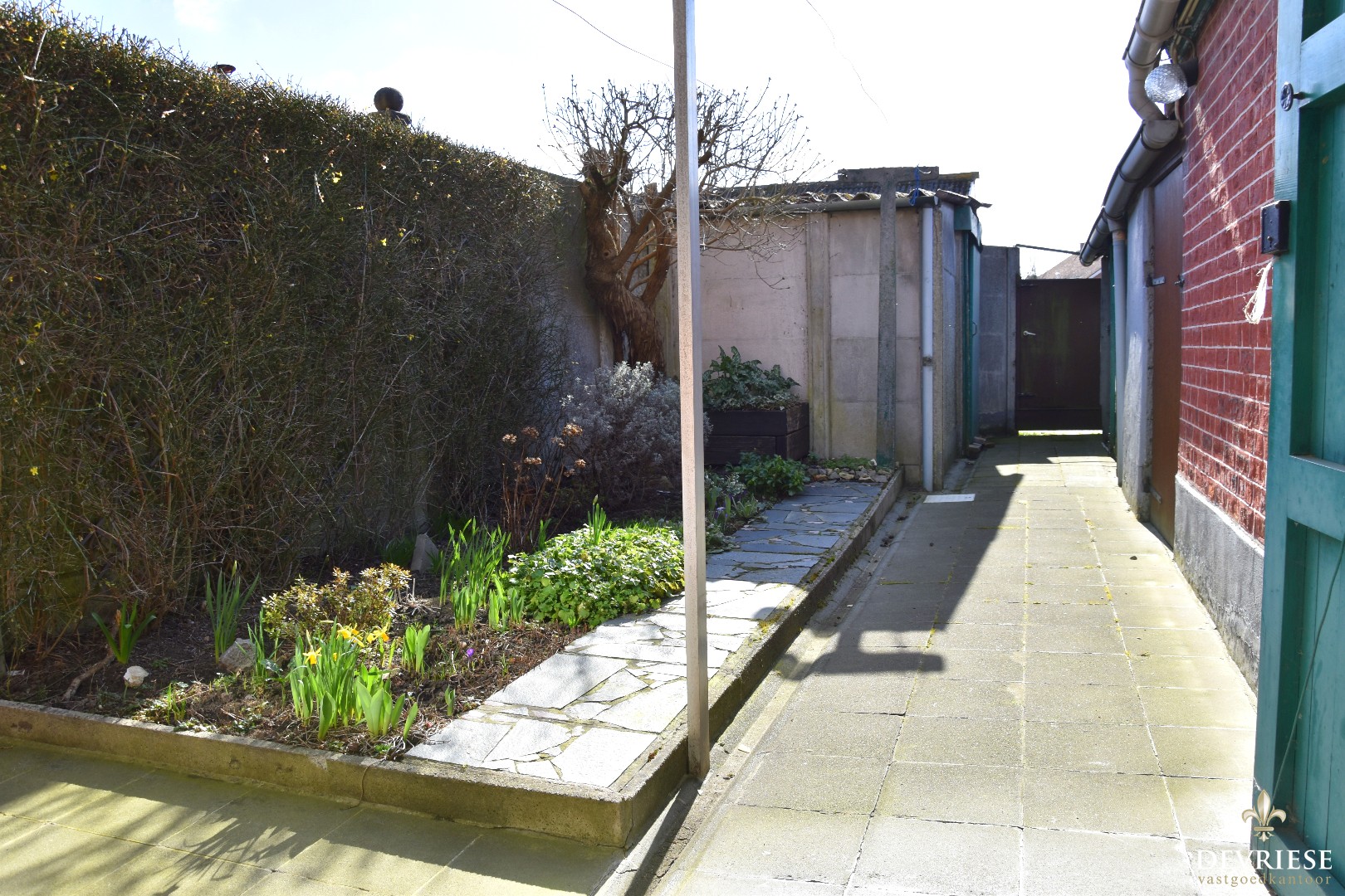 Extra berging door de praktische kelder en extra bergruimtes buiten. Via het poortje in de tuin is er uitweg langs een aanpalende garageweg.