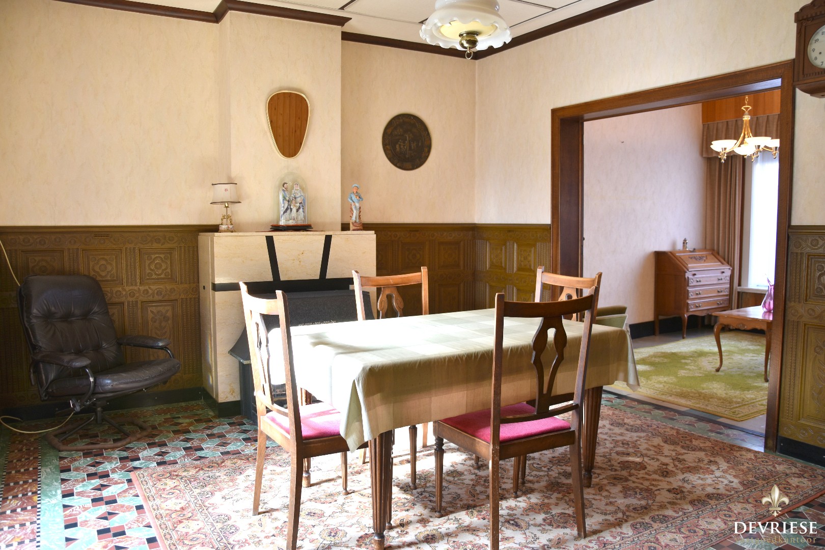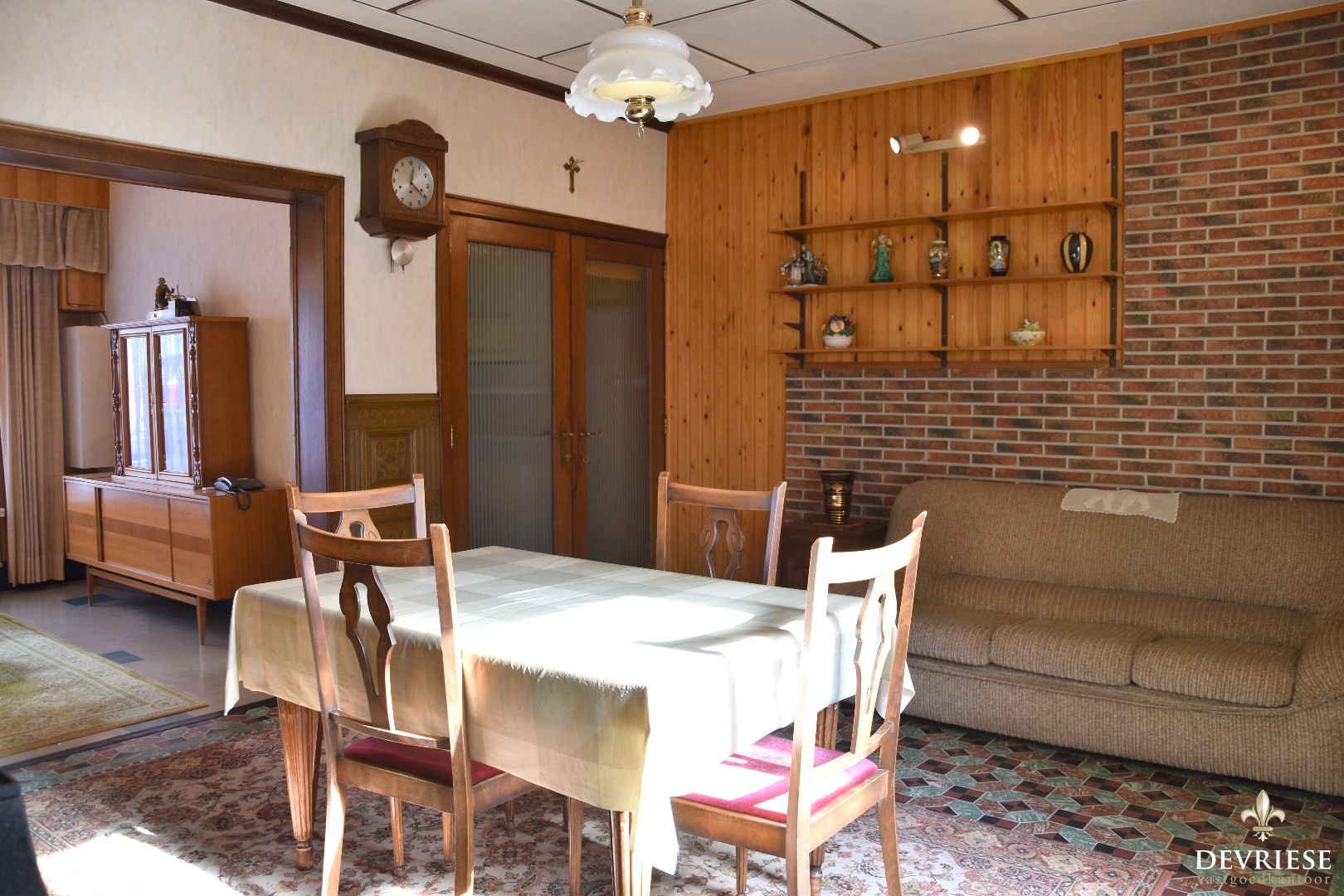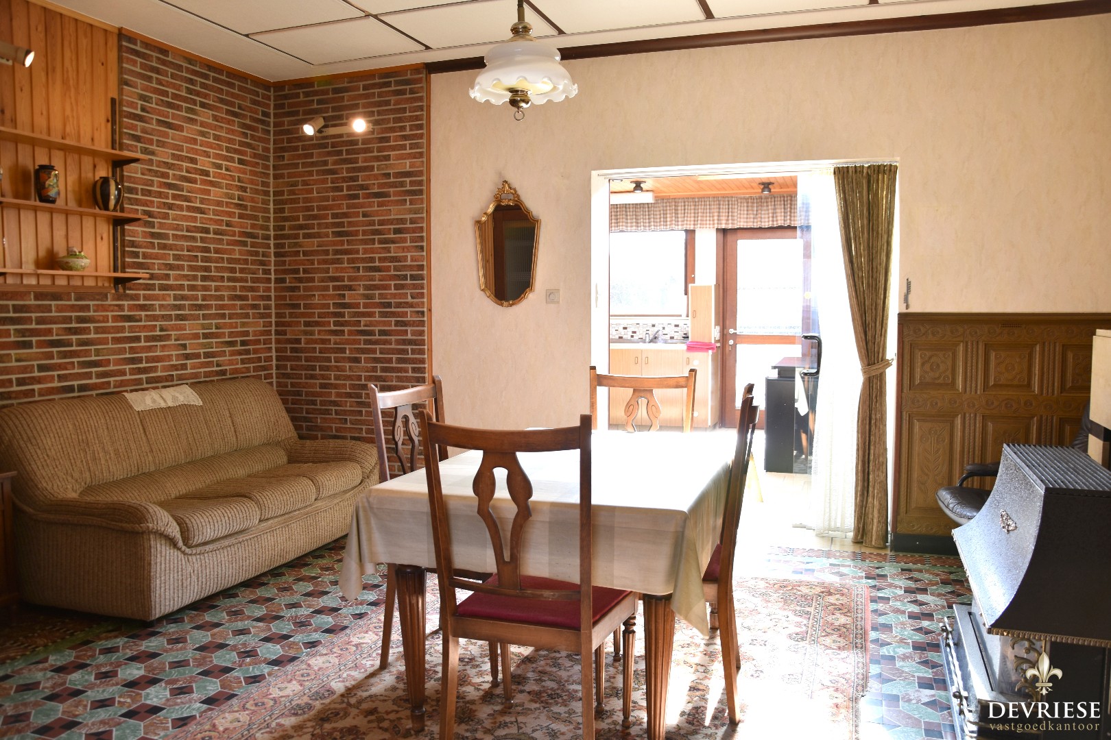 Het huis omvat een aparte inkomhal met toegang tot de leefruimte opgedeeld in eet- en zithoek.