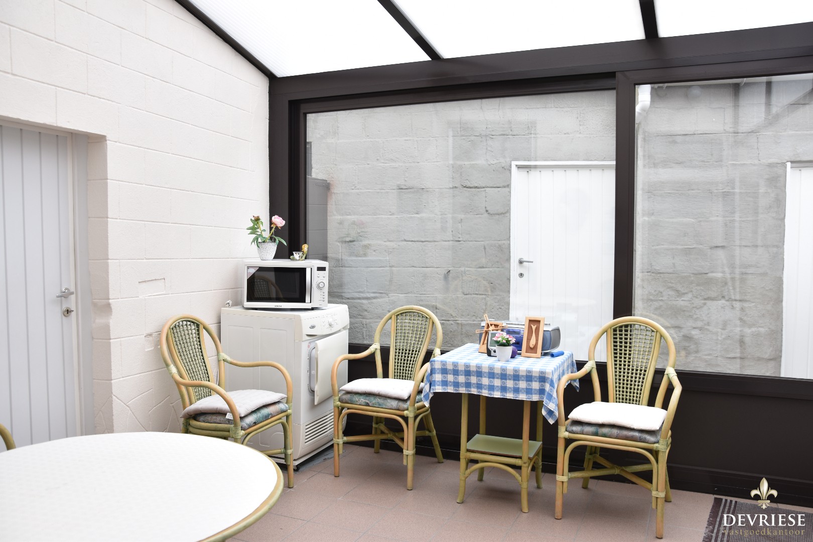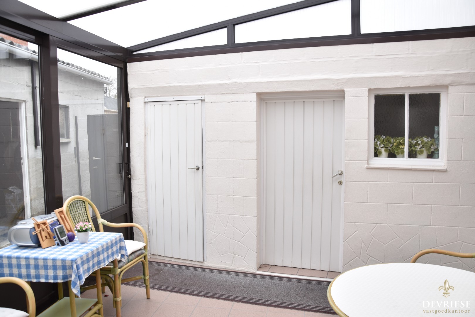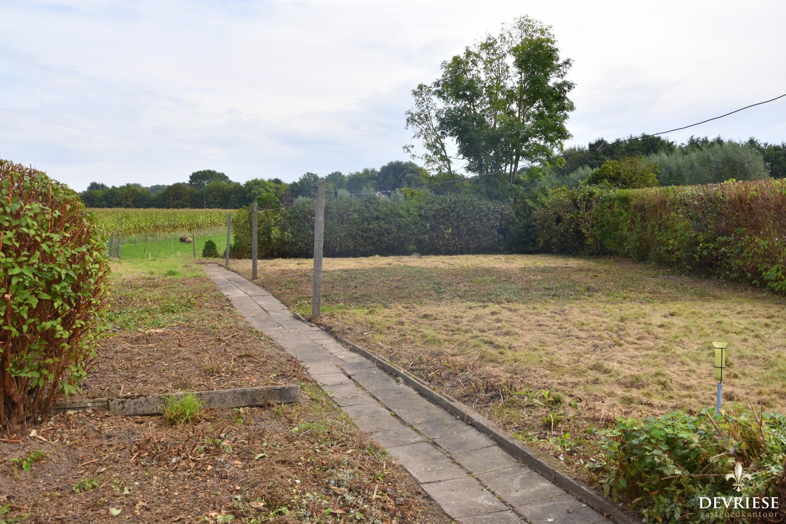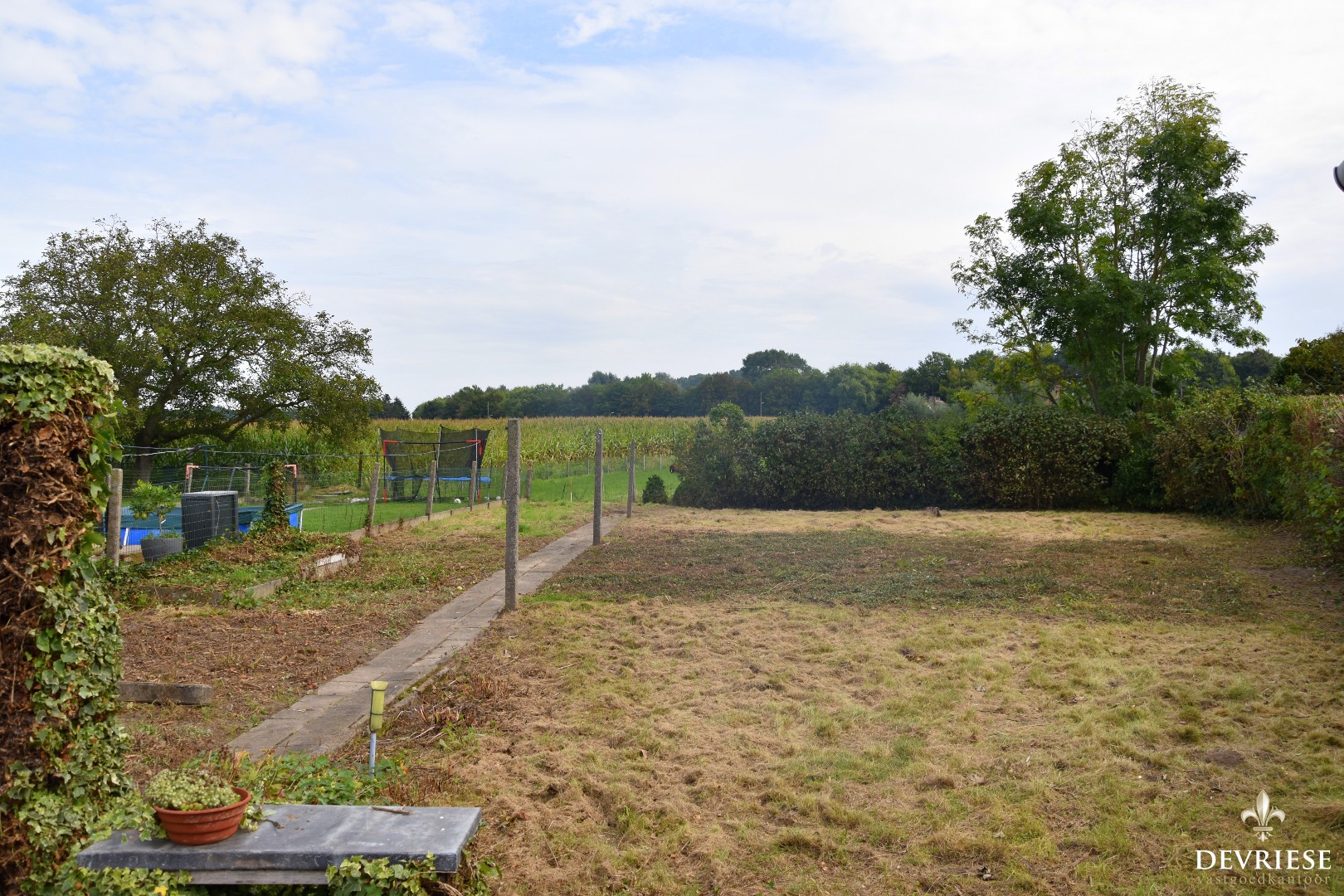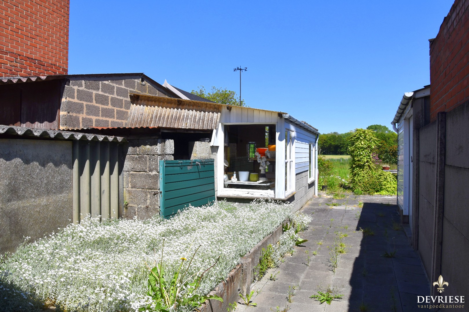 Op de zijkant van is er een ruimte garage aanwezig en voorzien van elektrische poort. Van hieruit is er rechtstreekse toegang tot de tuin achteraan, een mooi perceel voor wie groene vingers heeft of gewoon wil genieten van de rust en het landelijke zicht alsook het ideale speelterrein voor de kids of wie diertjes wil houden.