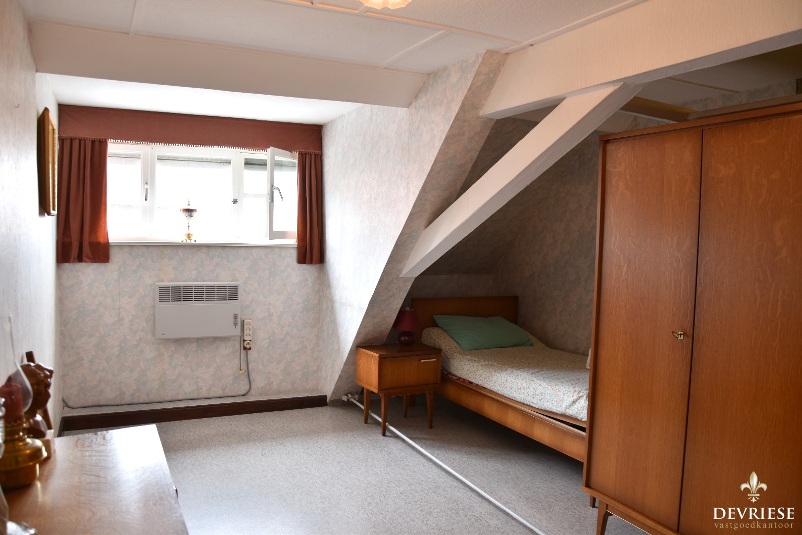 Op het gelijkvloers vindt u de leefruimte met aparte eetkamer met daarnaast de keuken. Achteraan ligt nog de lichtrijke veranda, een apart gastentoilet en de badkamer met bad en lavabo. Op de verdieping zijn er 3 slaapkamers voorzien. Mits de nodige opfrissingswerken kan de zolder tevens ingericht worden.