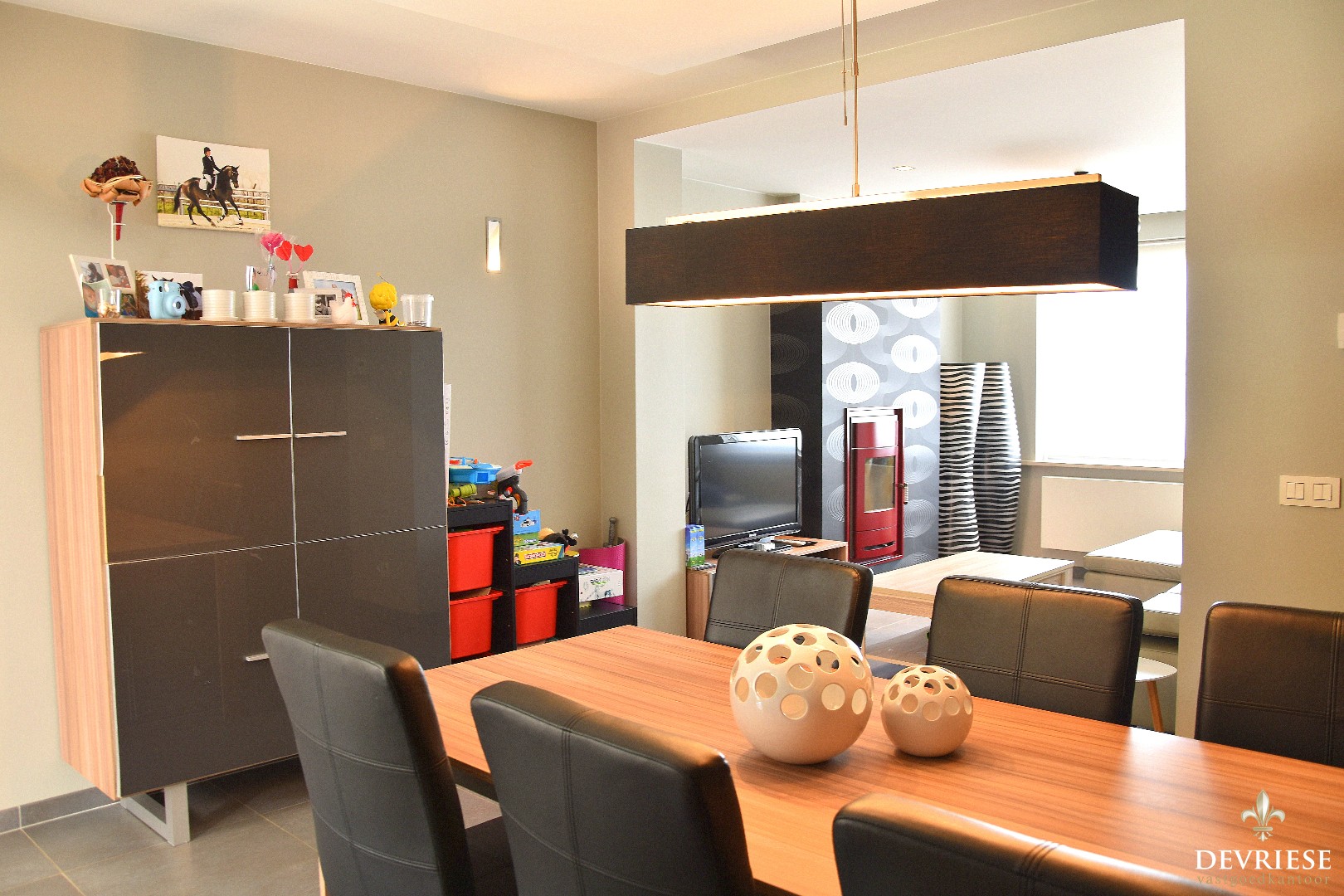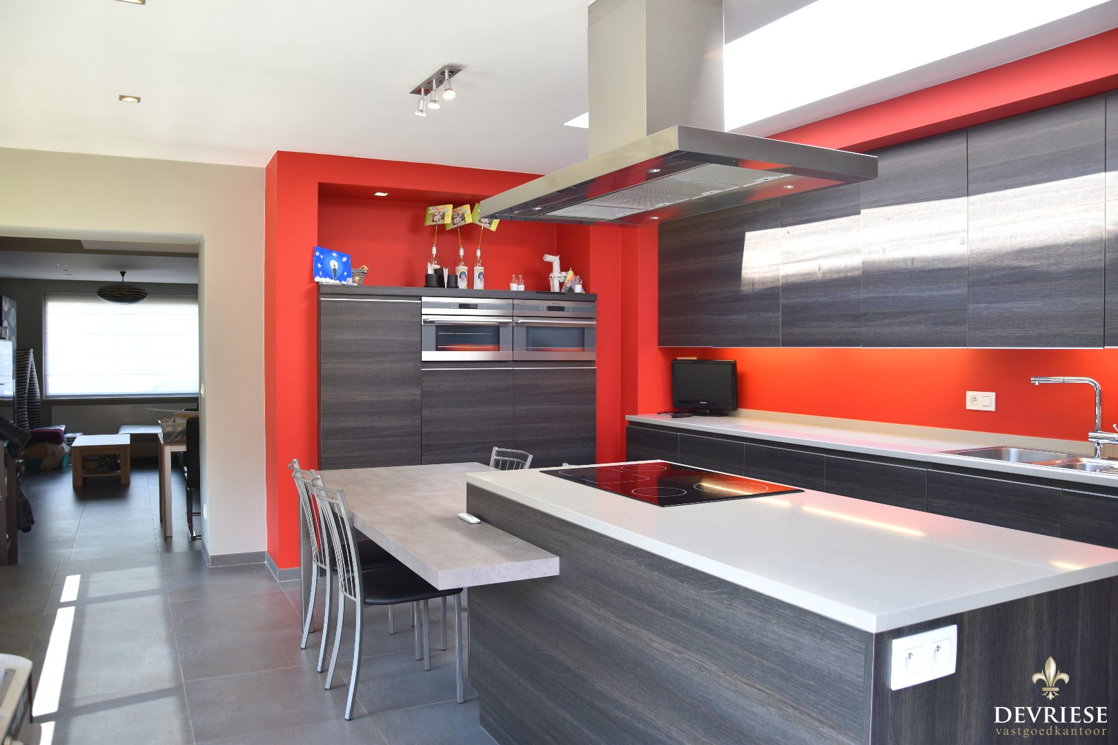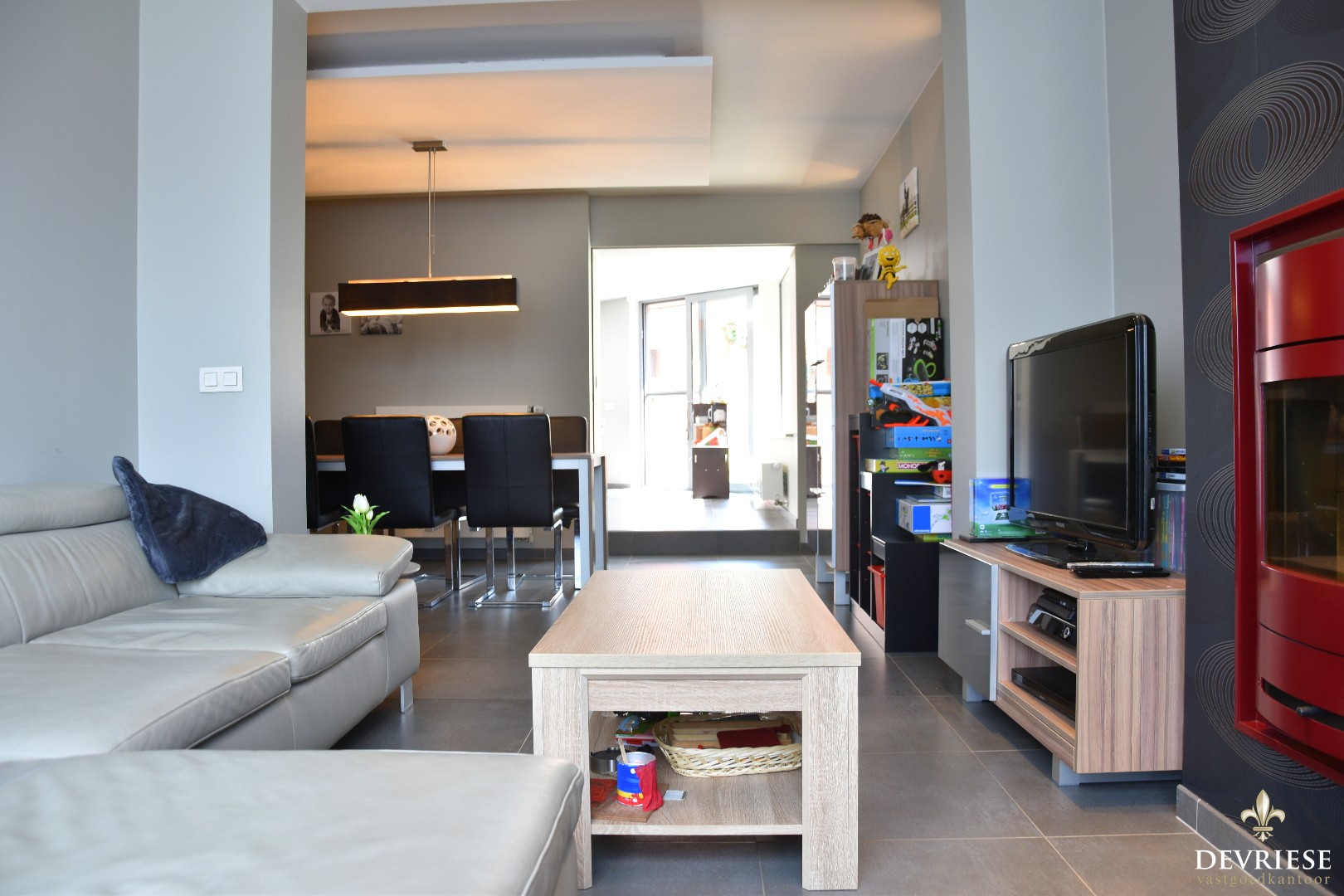 Aparte inkomhal die rechtstreeks toegang biedt tot de ruime, mooi ingerichte leefruimte met kachel met daarachter de open ingerichte keuken, voorzien van alle moderne comfort. Geniet hier van de lichtinval door de vele raampartijen. Een eerste badkamer werd voorzien op het gelijkvloers.
