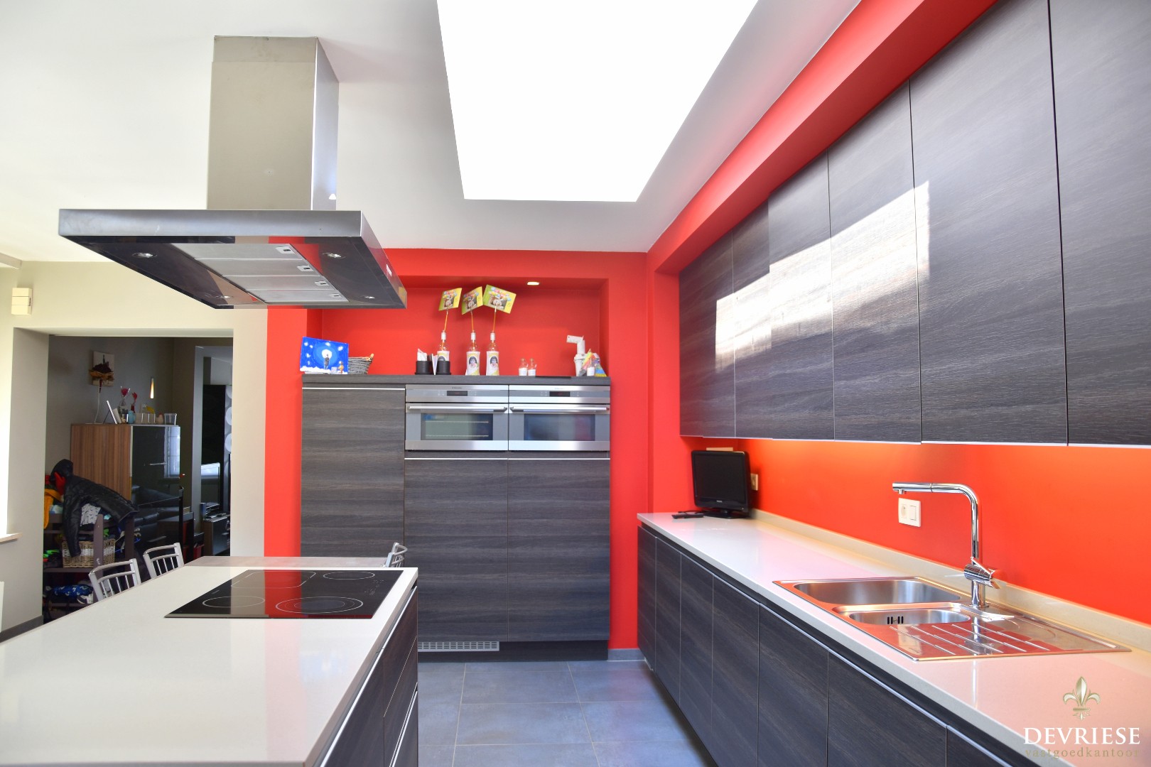 Achteraan geniet u in het gunstig georiënteerde tuintje die toegankelijk is vanuit de keuken of de garage. De garage biedt plaats voor één auto en is voorzien van elektrische ... poort.