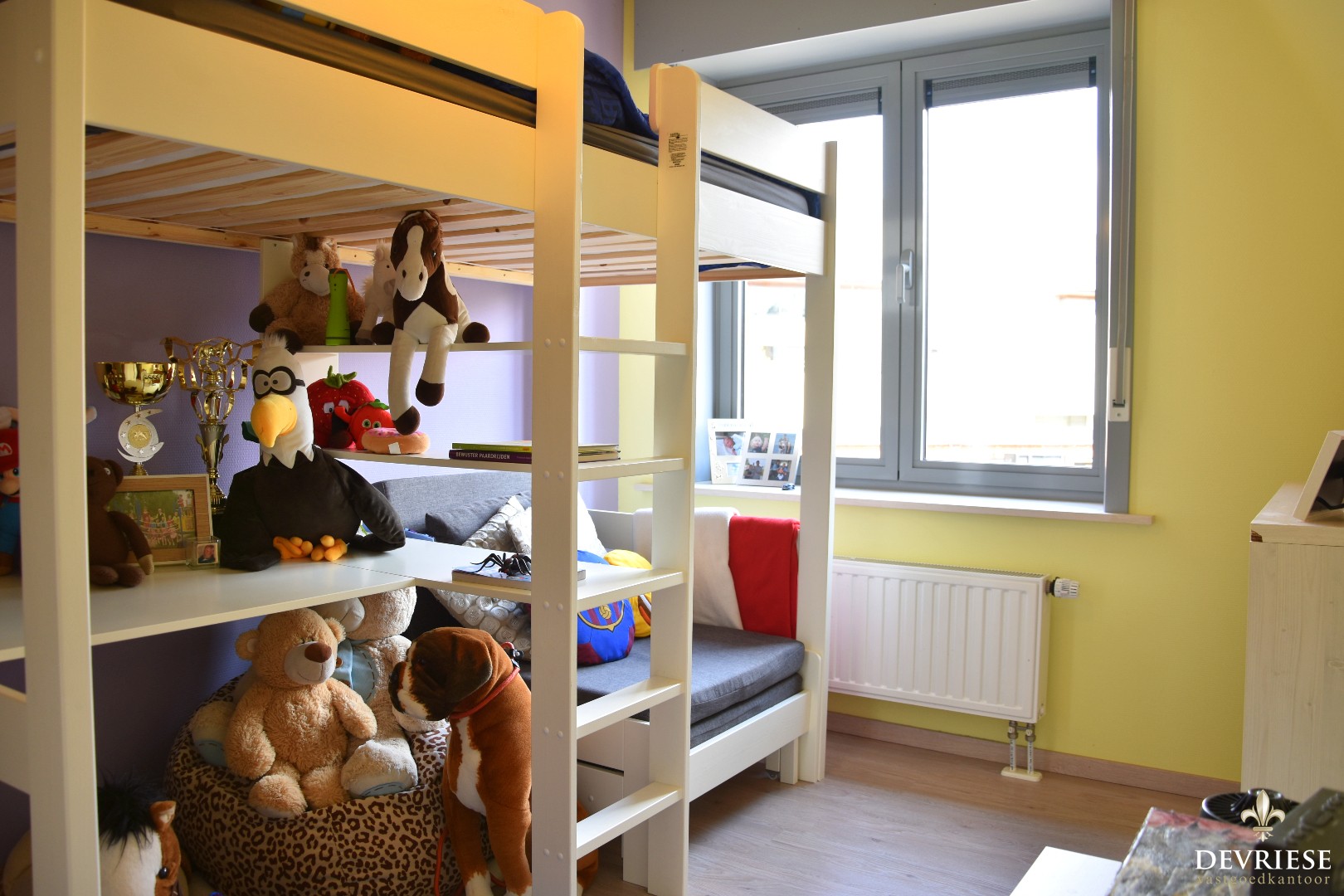 Op de verdieping zijn er 2 slaapkamers ingericht en de tweede ruime badkamer. Op het zolderverdiep is er een bergruimte en een derde slaapkamer die nog verder moet ingericht worden.