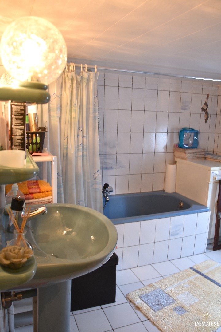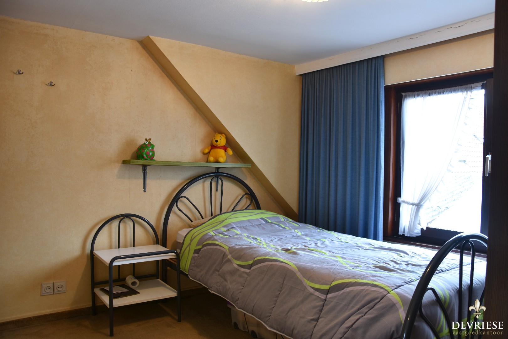 Op de tussenverdieping werd een eerste badkamer ingericht. Op de verdieping liggen 2 slaapkamers, een berging en een tweede badkamer. Naast de woning is een ruime garage en aparte berging voorzien.