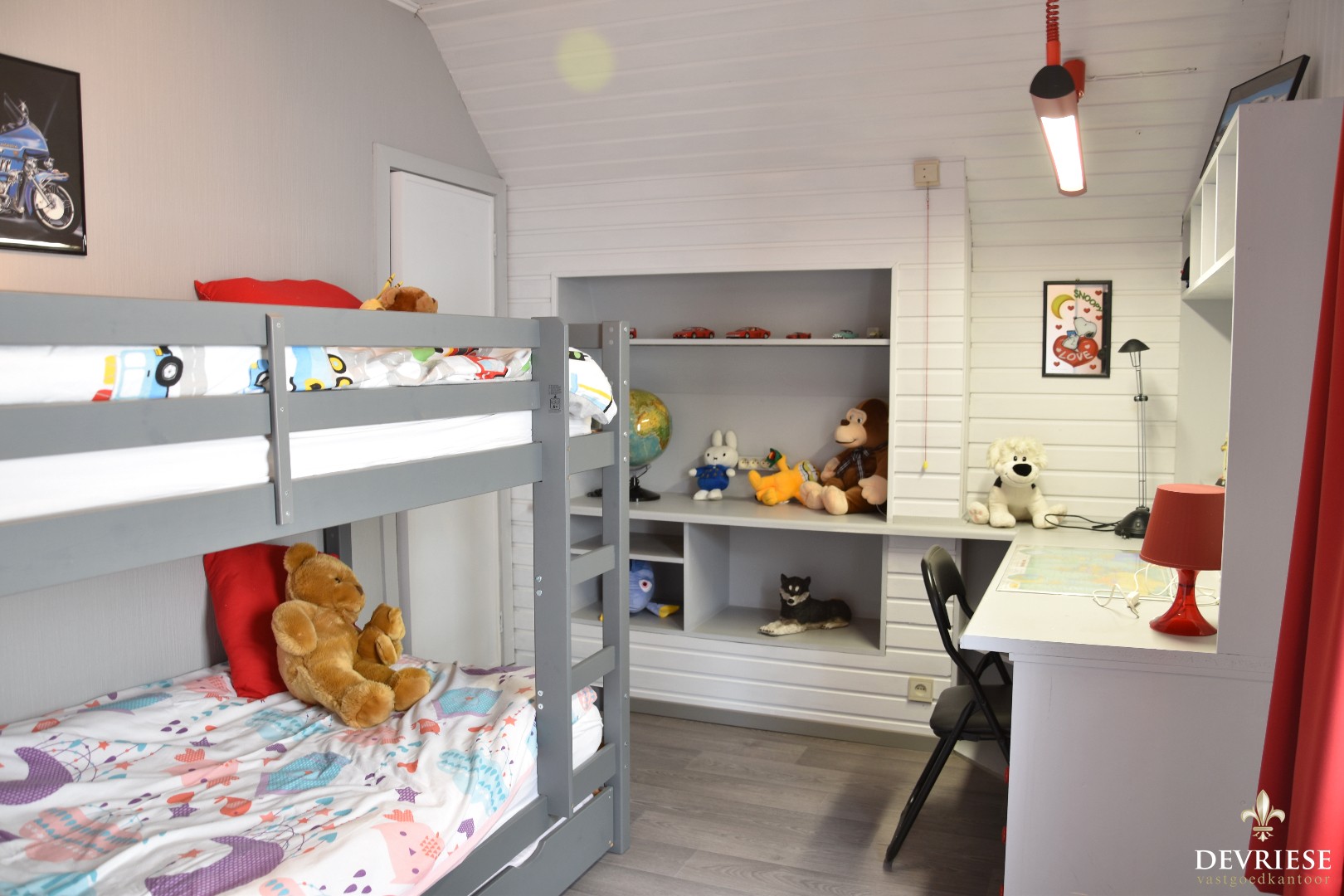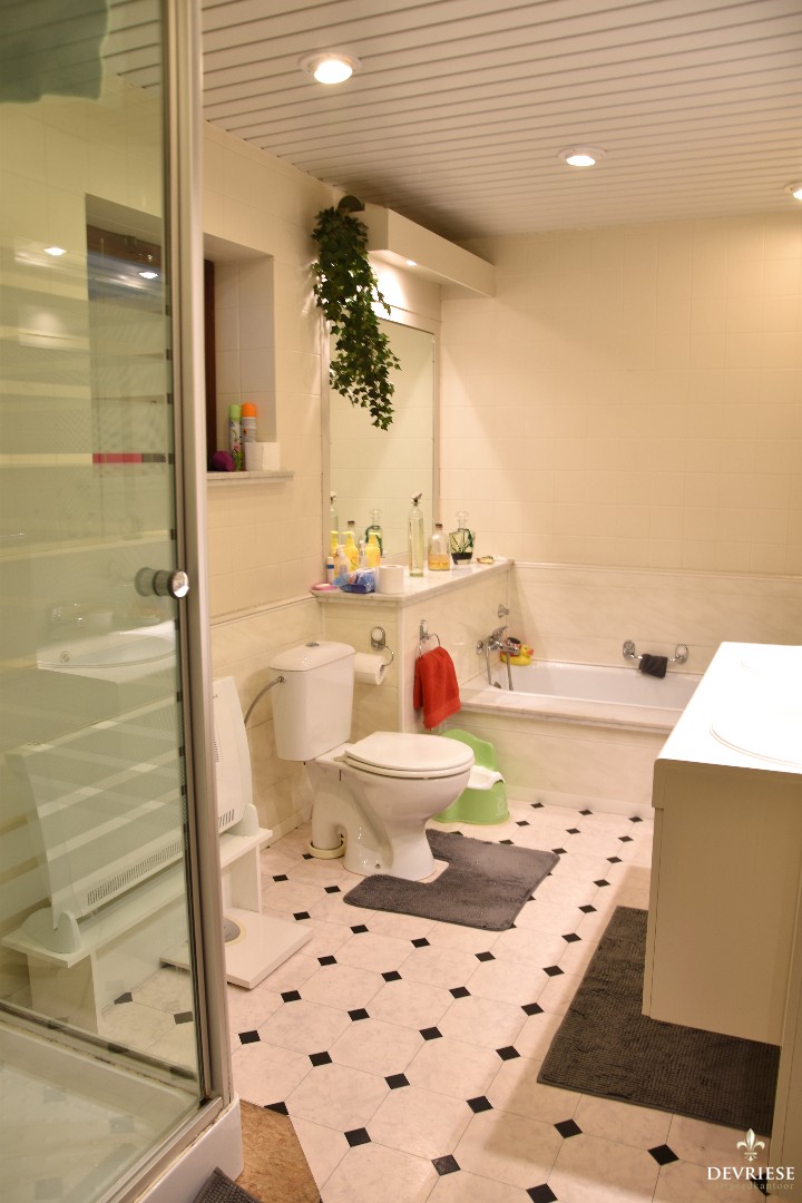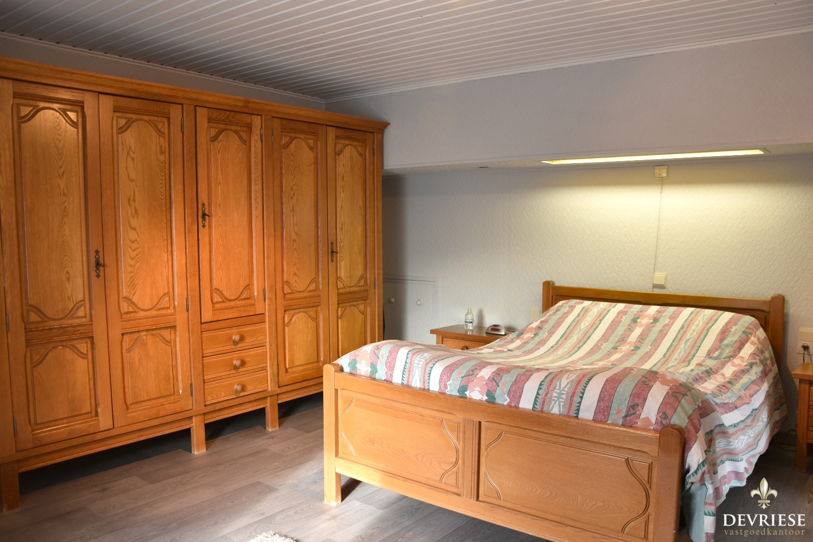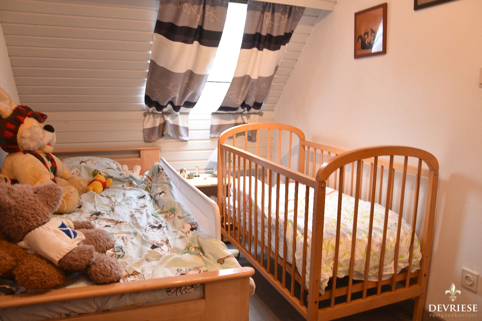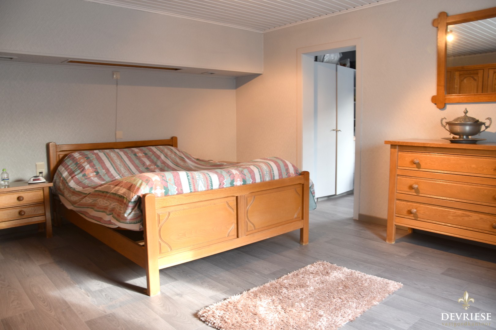 De woning ligt op 860 m² grond. U komt binnen in de aparte inkomhal, voorzien van gastentoilet. Daarnaast is er toegang tot de leefruimte vooraan. Daar achter ligt de ruime leefkeuken, waar u volop geniet van vol zicht op de tuin. Ook op het gelijkvloers liggen extra bergruimtes, een bijkeuken, een ruime veranda en de badkamer, voorzien van bad, douche, een tweede toilet en dubbele lavabo. Op de verdieping werden 3 slaapkamers ingericht.