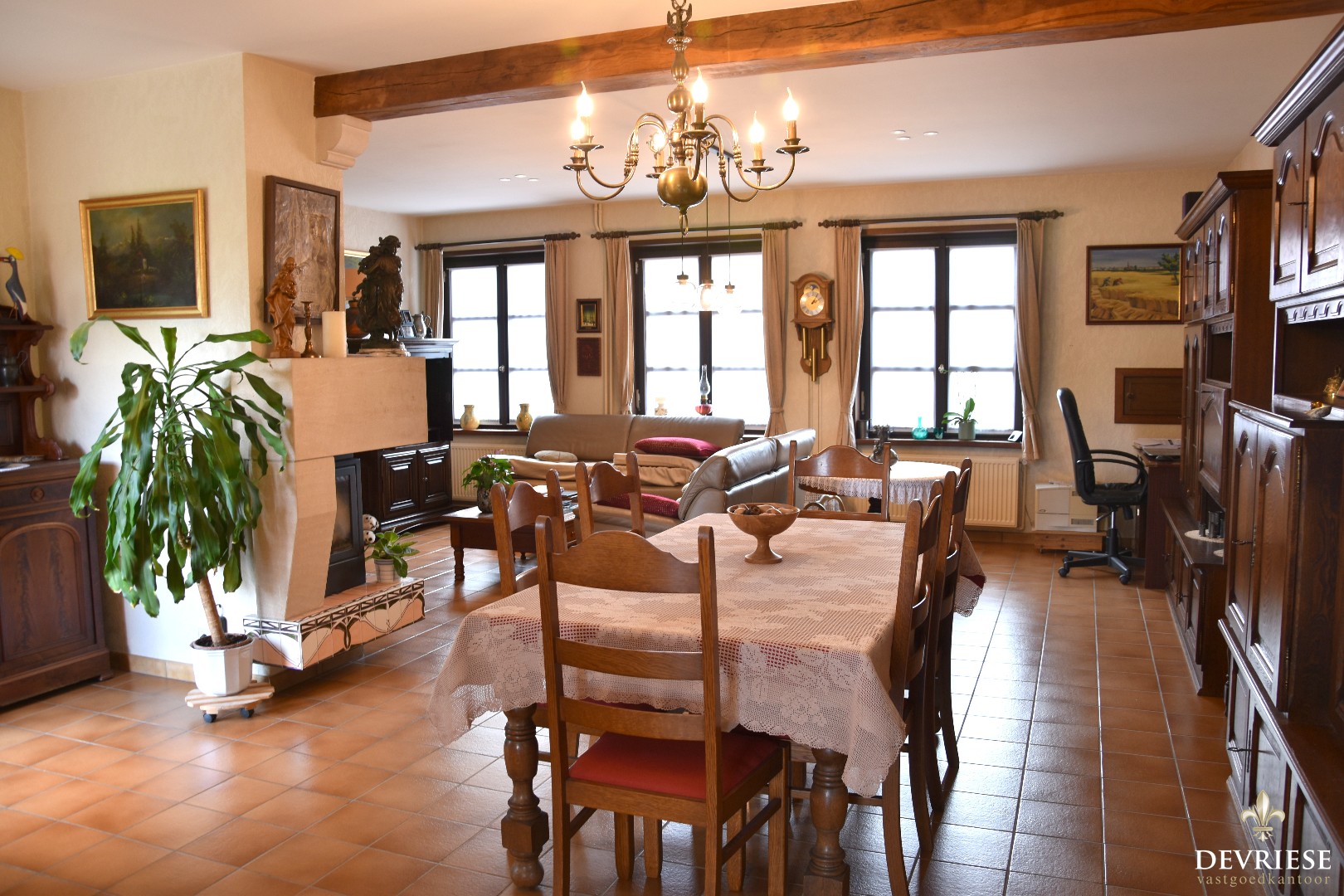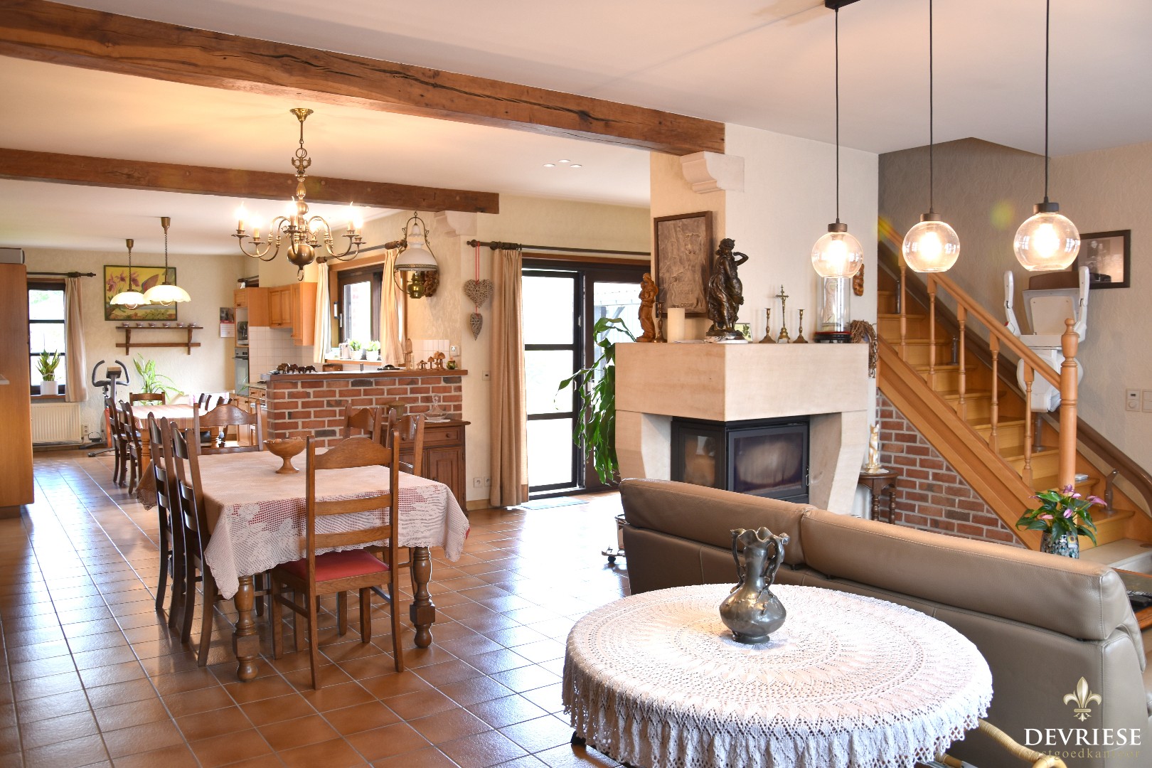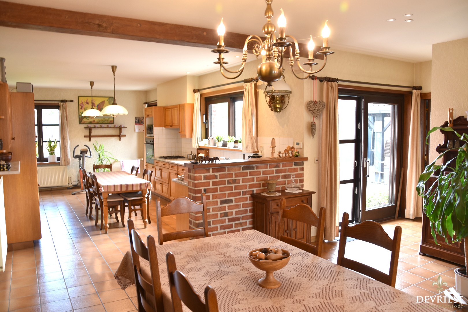 Inkomhal met gastentoilet met toegang tot de zéér gezellige woonruimte. Deze omvat een salongedeelte, eetplaatsvoorziening en een geëquipeerde semi-open keuken met ontbijthoek.