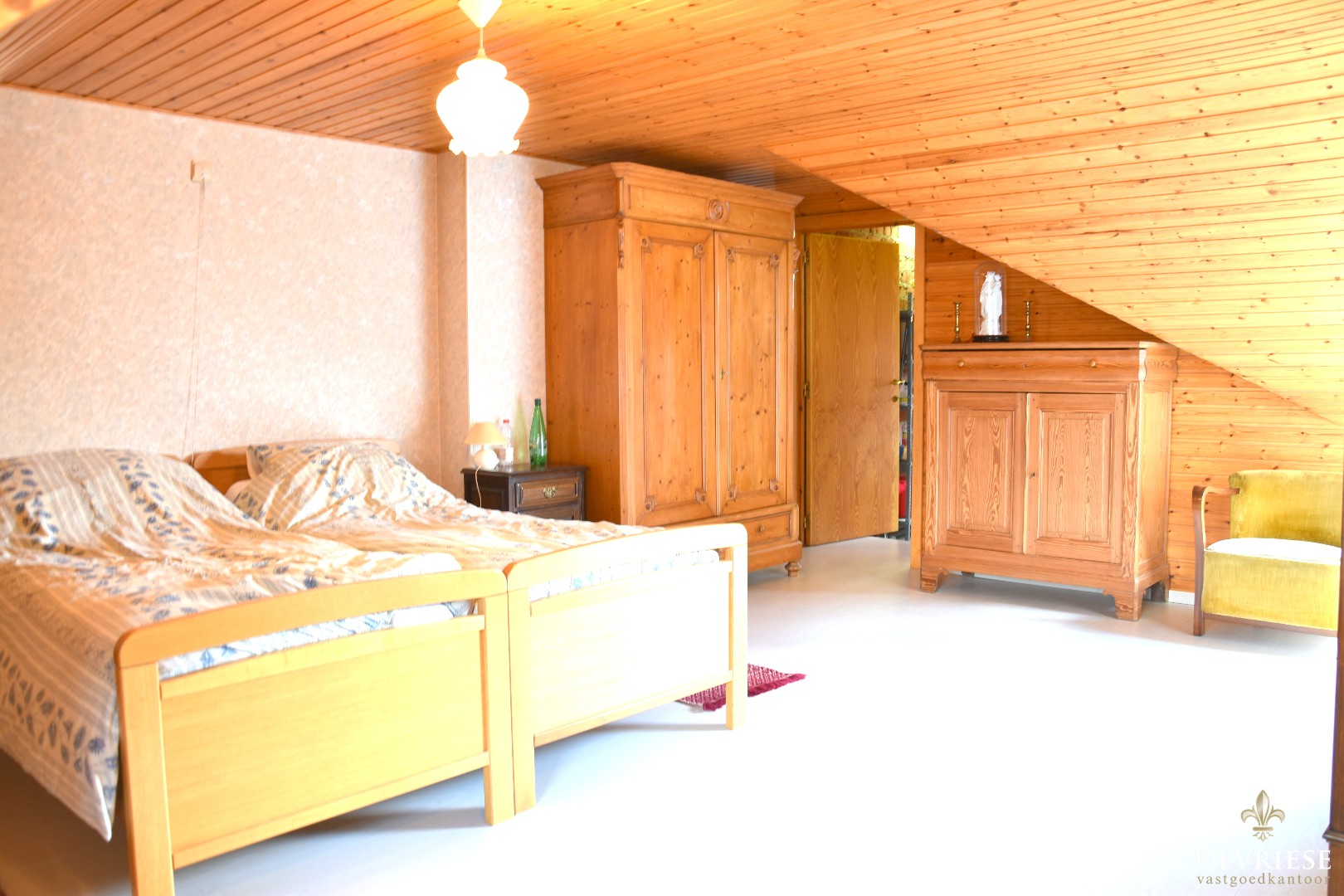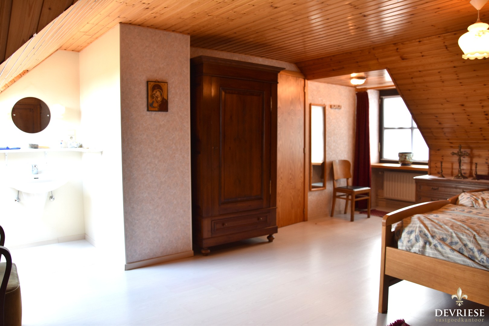 volwaardige slaapkamers (25,4 - 18,6 - 19,6), voorzien van eigen lavabo. Een zolderruimte boven de keuken is rechtstreeks bereikbaar van buitenaf (via vaste trap), evenwel ideaal om in te richten als extras slaapkamer /hobbyruimte / studio / ... .