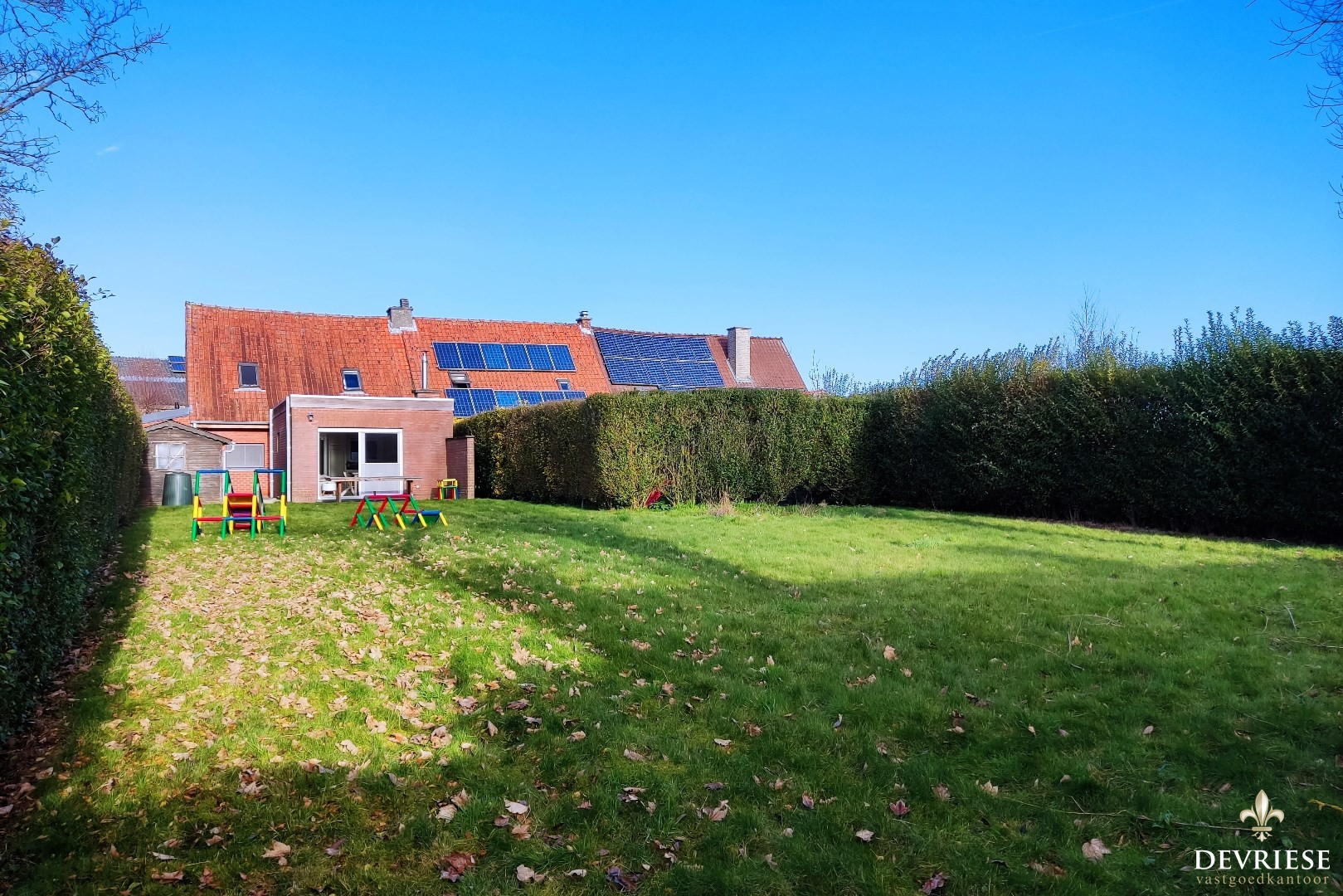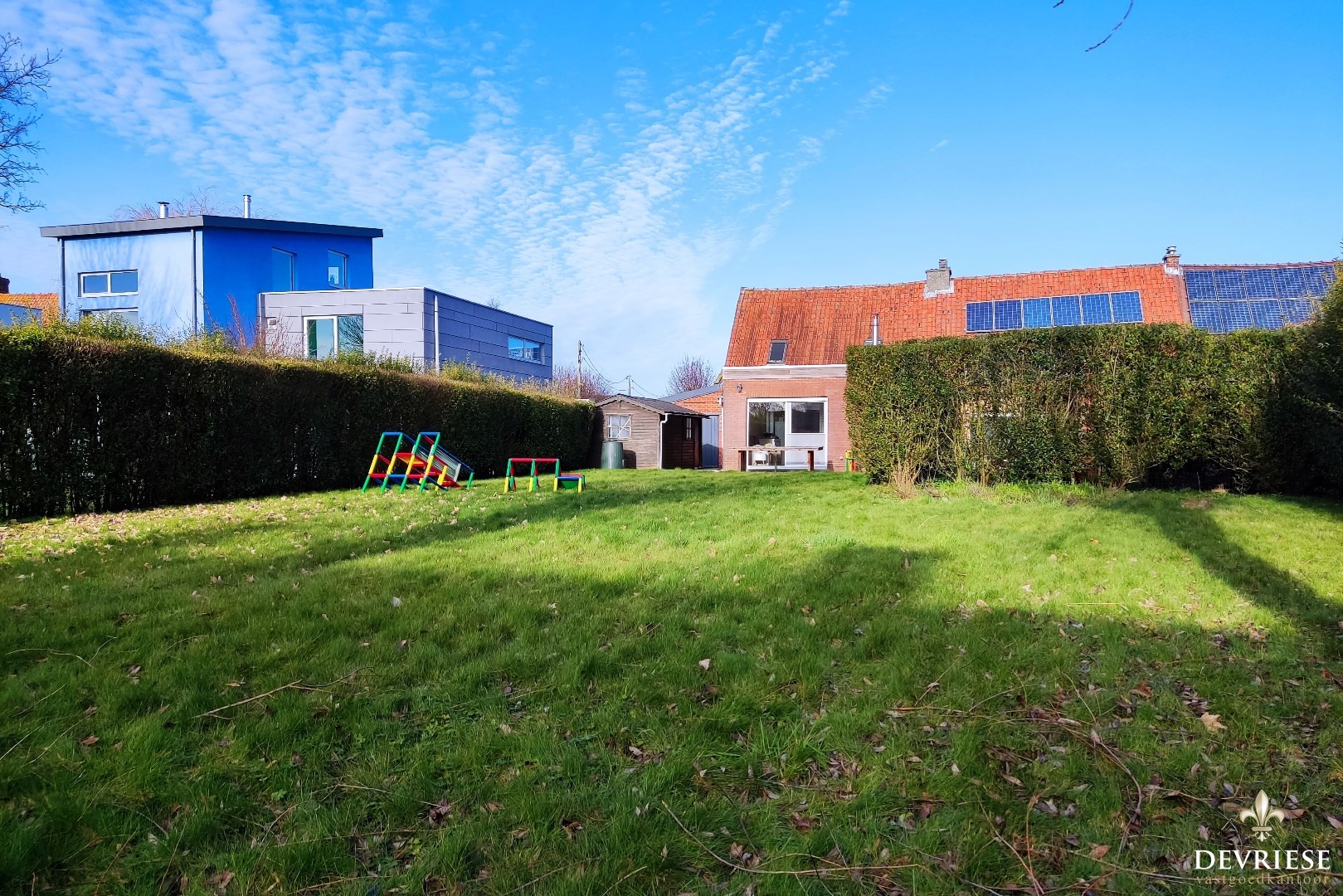 Halfopen bebouwing op zuidoost georiënteerd perceel in doodlopende straat te Gullegem.
