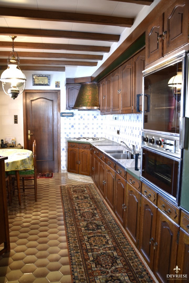 Inkomhal met toilet, leefruimte (salon & eetplaats), woonkeuken met ontbijthoek, droge berging en ruime wasplaats met douche & bijkeuken.