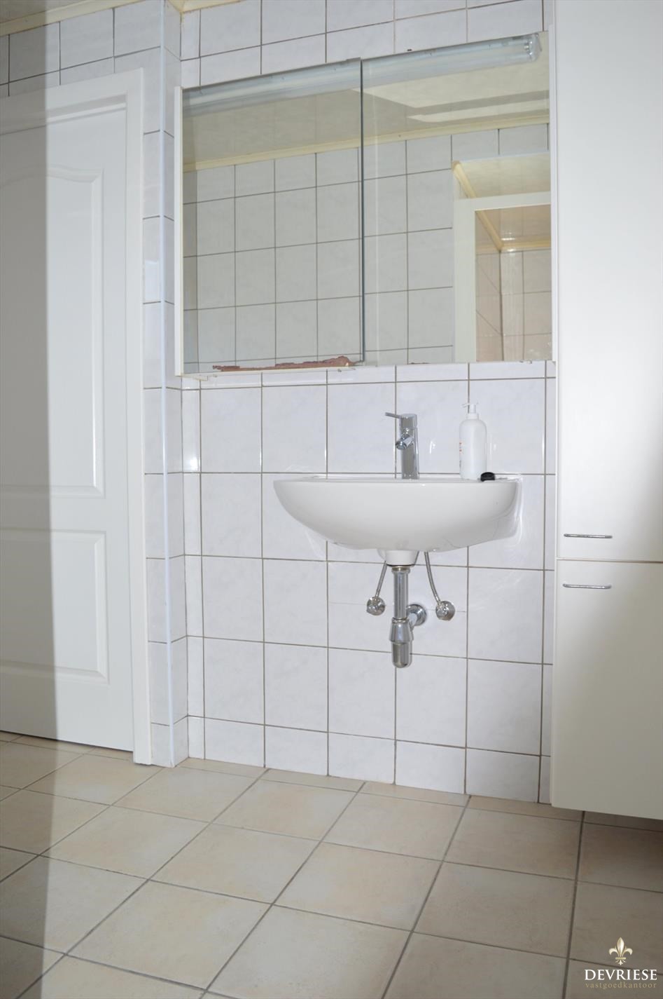 Badkamer uitgerust met lavabo en douche. Apart toilet. De berging, voorzien van aansluiting voor wasmachine/droogkast, maakt het gelijkvloers compleet.