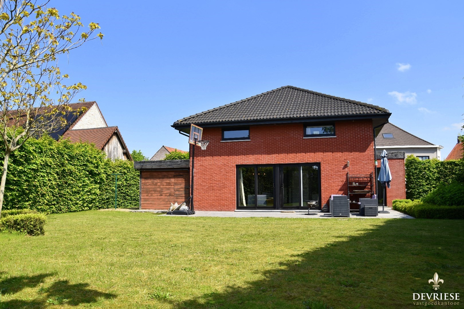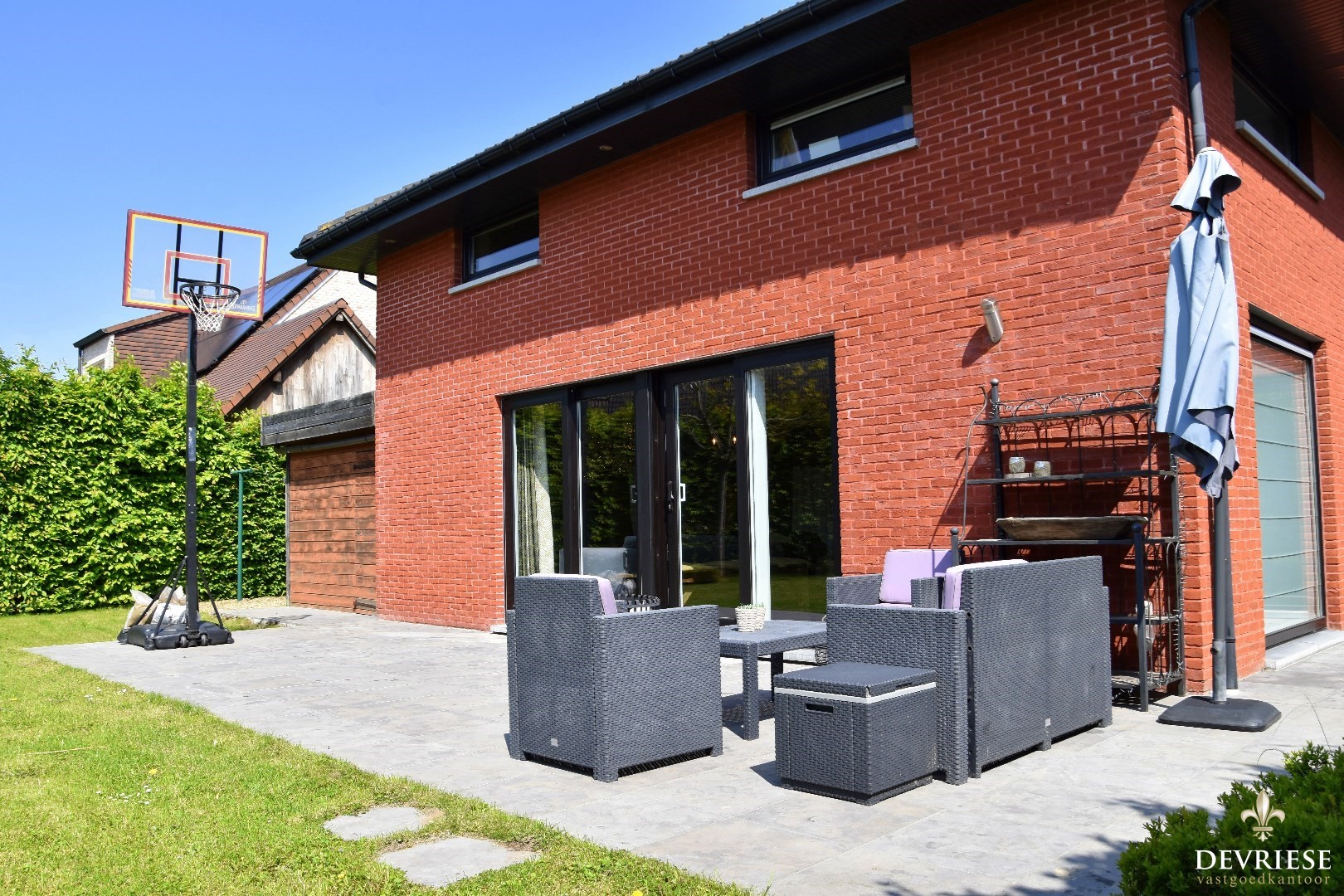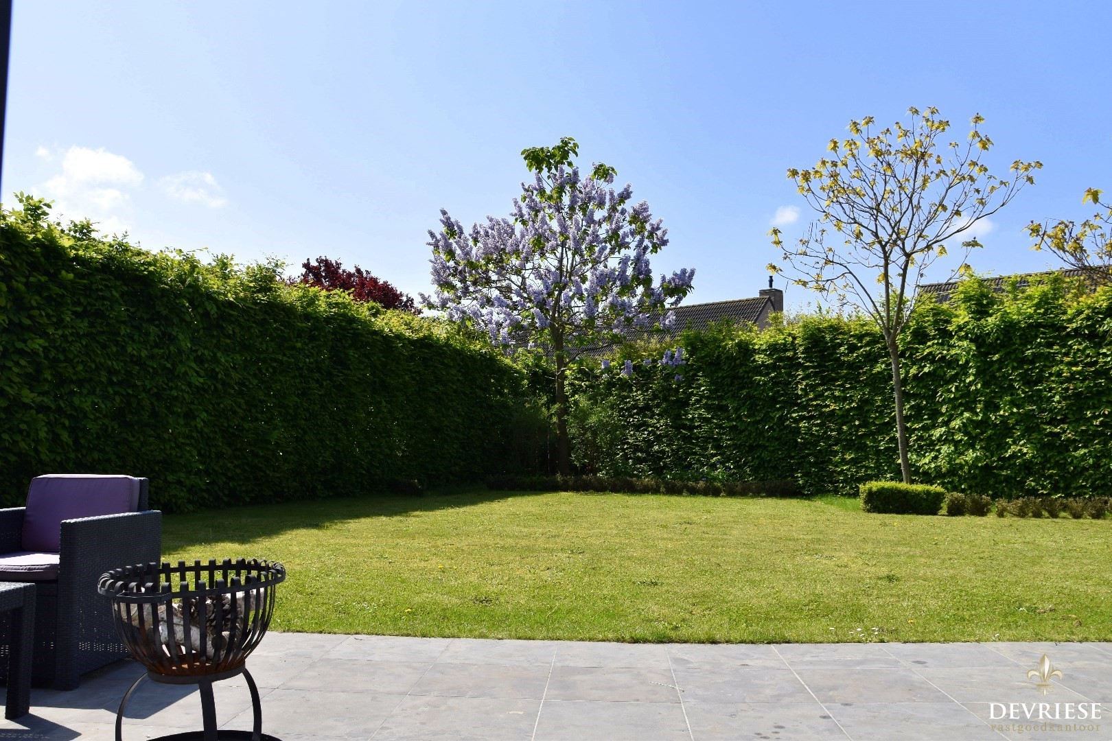 Knap aangelegde tuin, volledig zuid georiënteerd. Mét zalig zonneterras.