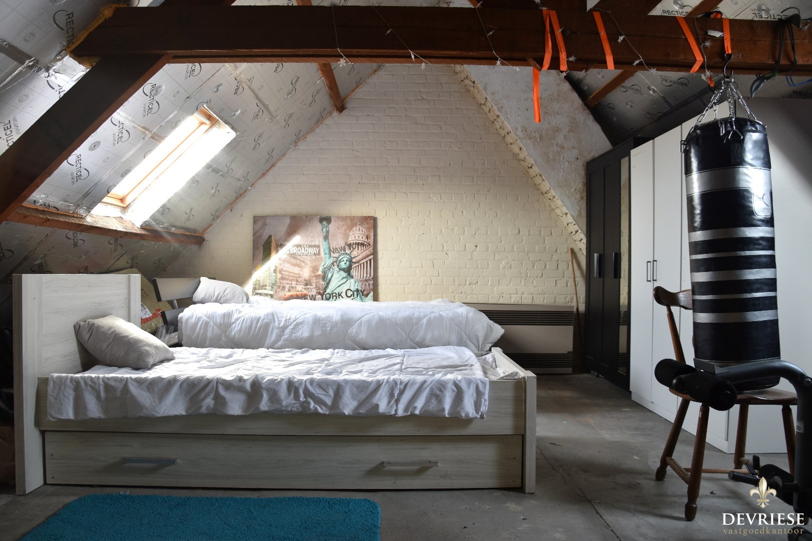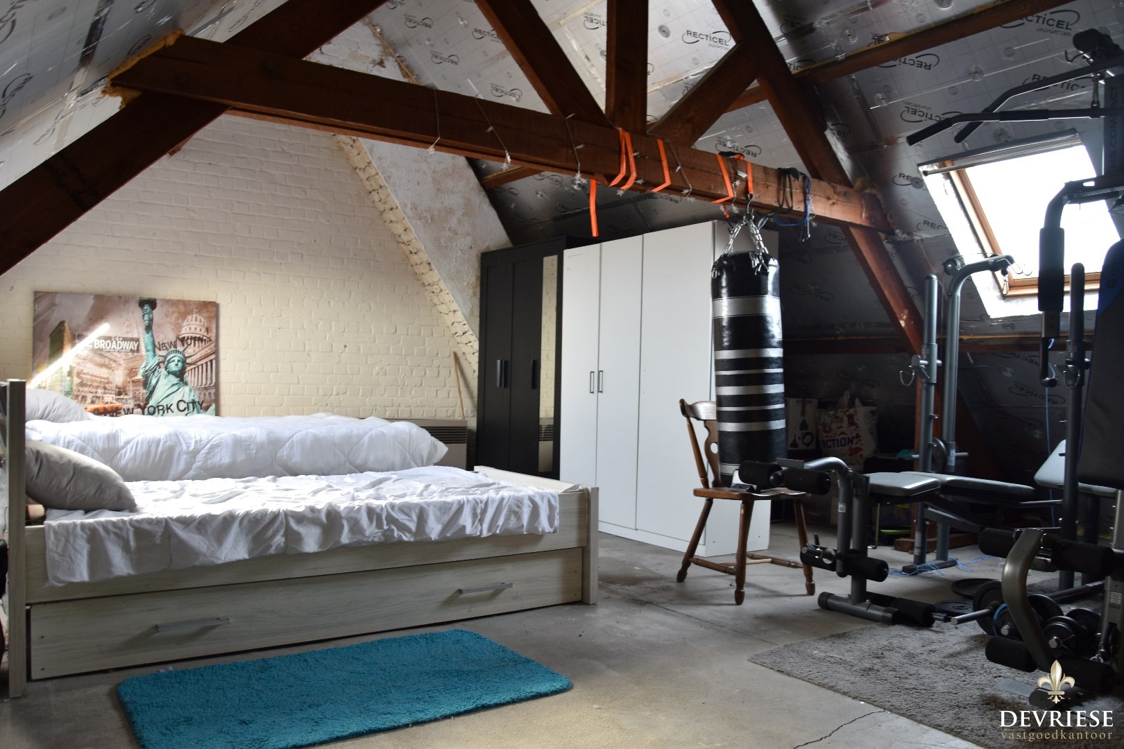 Geïsoleerde zolder, tot op heden ingericht als masterbedroom met personal fitness.
