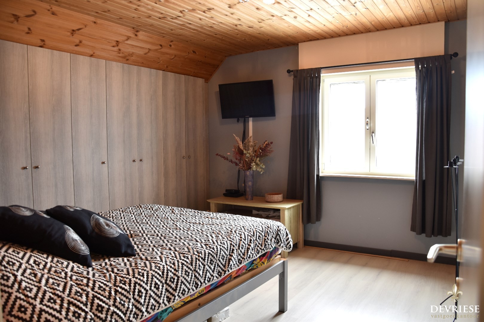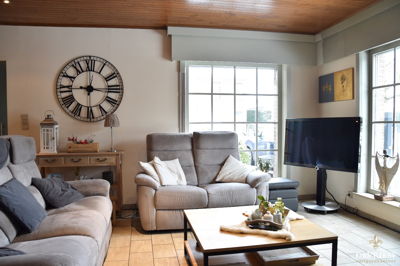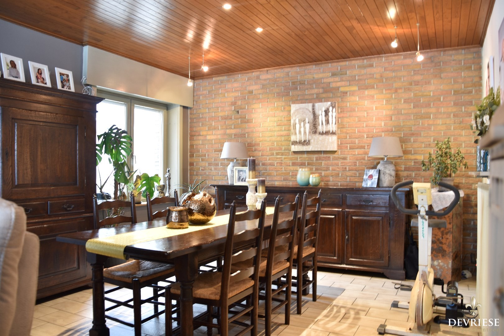 Bij het binnenkomen van deze woning komt u terecht in een inkomhal met apart toilet. Leefruimte met veel lichtinval, bestaande uit eetplaats en salon. Dankzij de gezellige indeling én de houtkachel, is het hier héél aangenaam vertoeven.