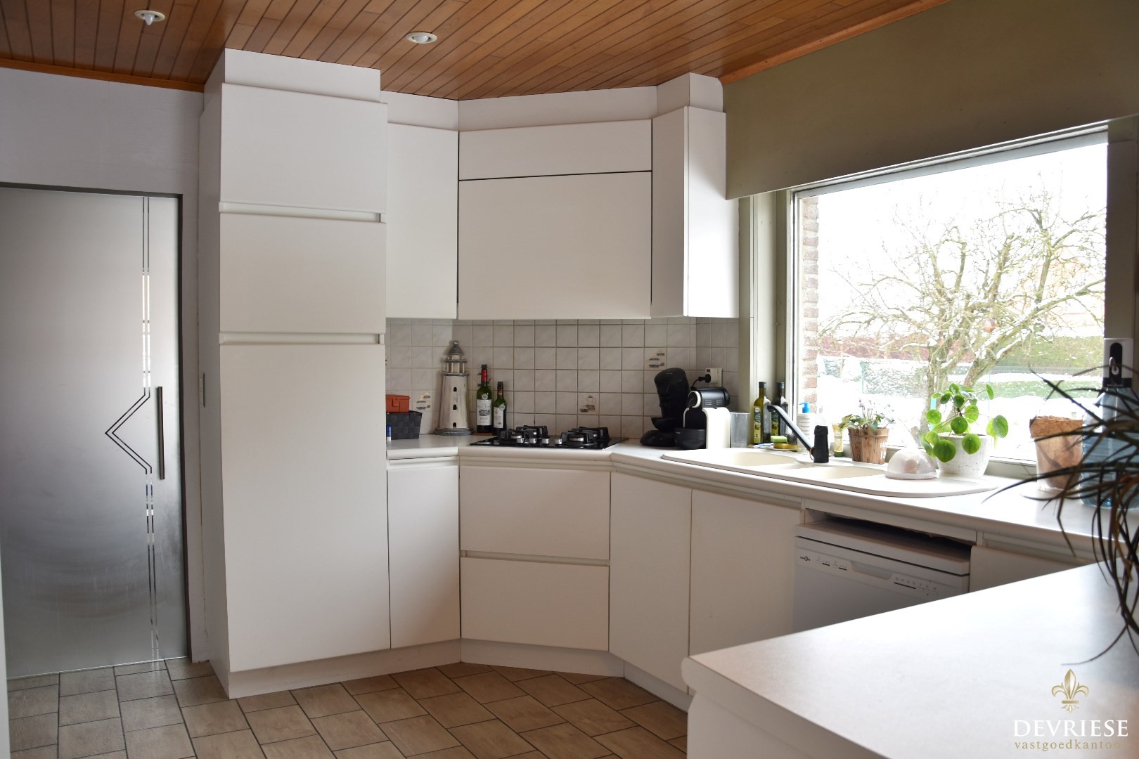 Geëquipeerde woonkeuken met heel wat opbergmogelijkheden. Bovendien voorzien een ontbijthoek mét zicht op de tuin.