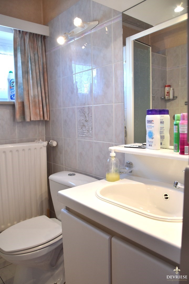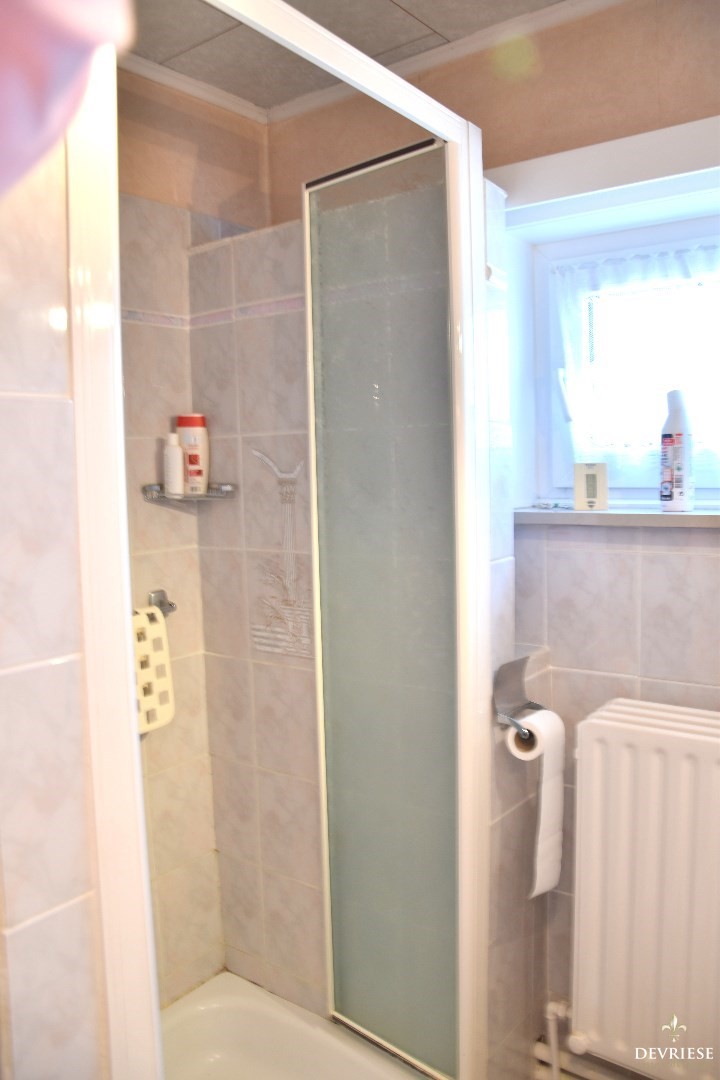 Op de verdieping tellen we 4 volwaardige slaapkamers (12,2 - 7,7 - 15,5 - 12,2 m²). De badkamer werd uitgerust met een lavabo, douche en tweede toilet.