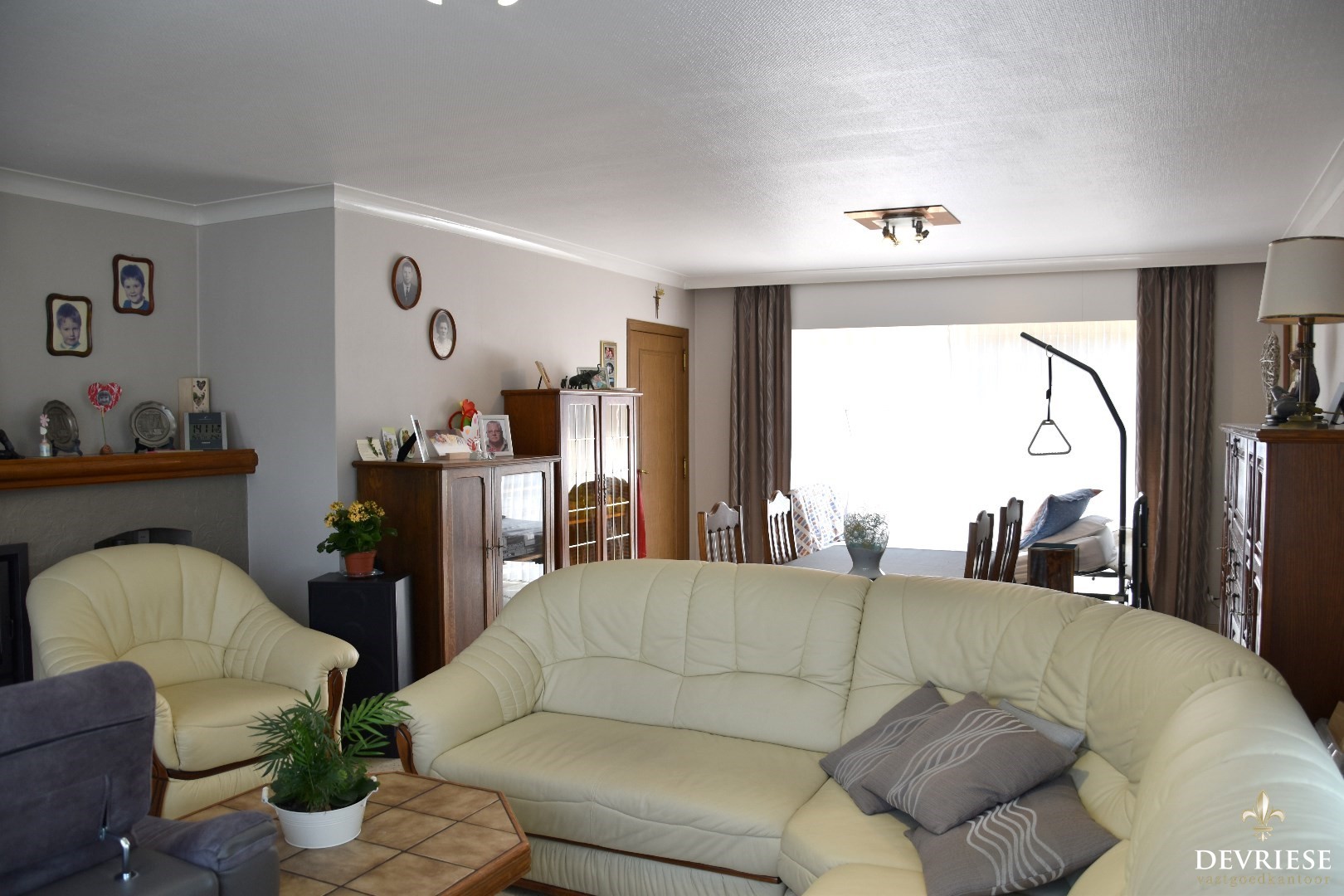 Van hieruit bereik je het gezellige woongedeelte. Opgedeeld in een zit -en eetplaats. Tijdens Gezellige winteravonden zal de houthaard goed van pas komen.