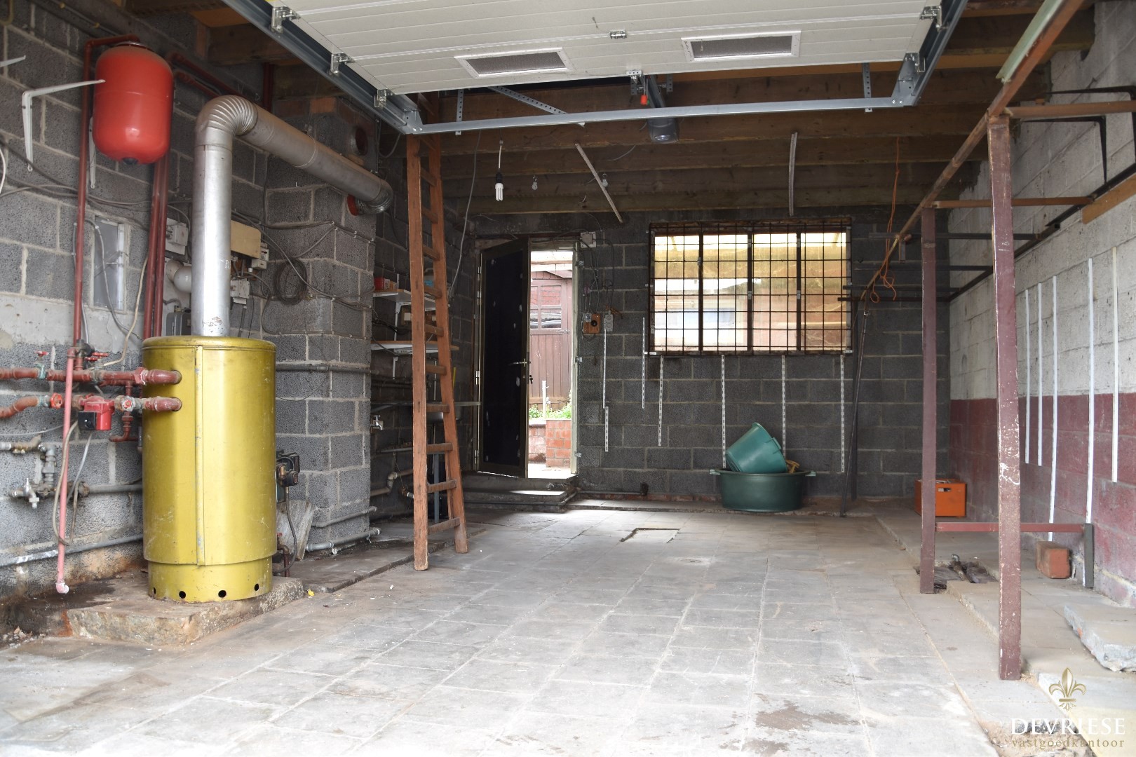 De ruime garage van 26,6 m² beschikt over een zolderberging van dezelfde grootte.