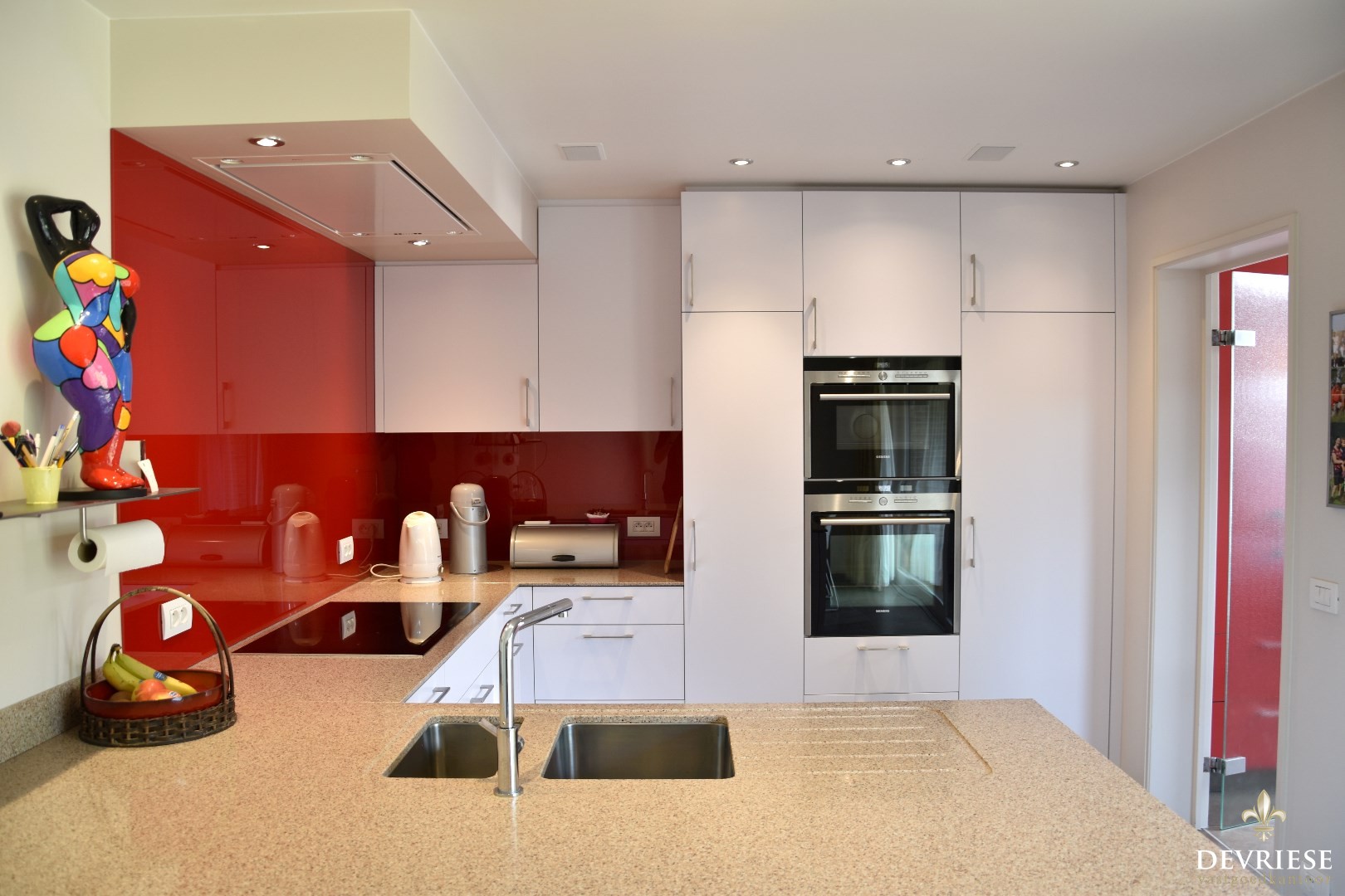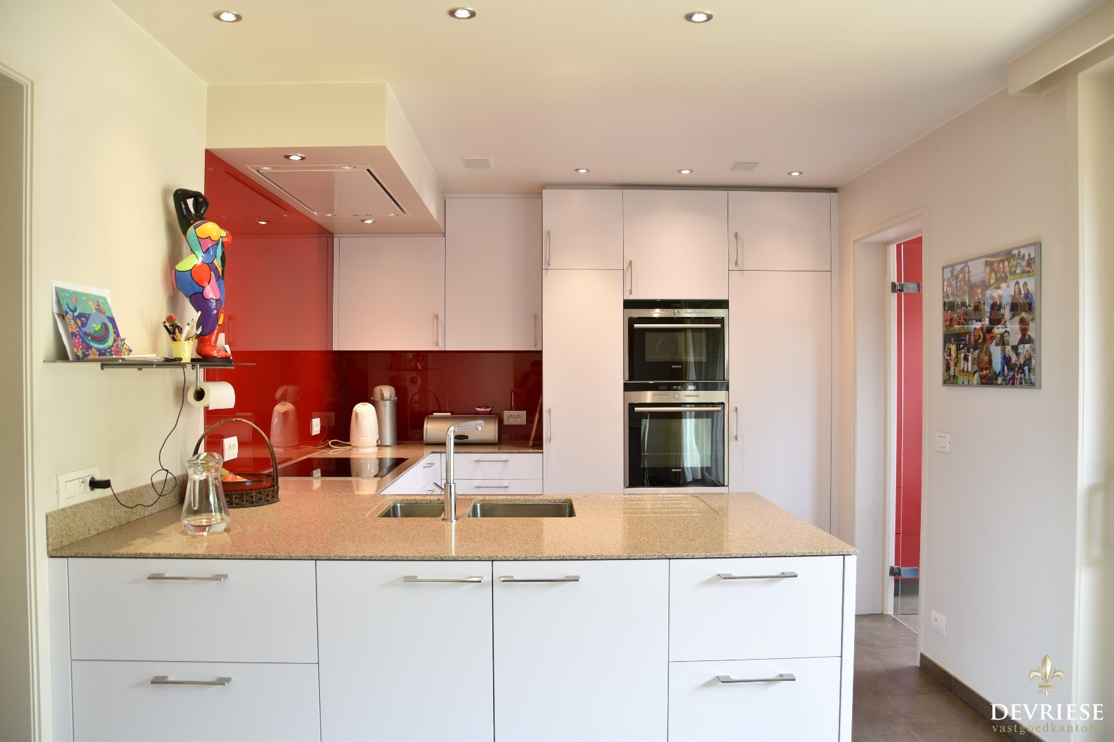 De ruime leefruimte, bestaande uit een eetplaats en zithoek, biedt een uitnodigende sfeer. Veel natuurlijk lichtinval en eveneens Volledig uitgeruste keuken met ontbijthoek, voorzien van kwalitatieve toestellen (Siemens & Miele) en tal van opbergmogelijkheden.