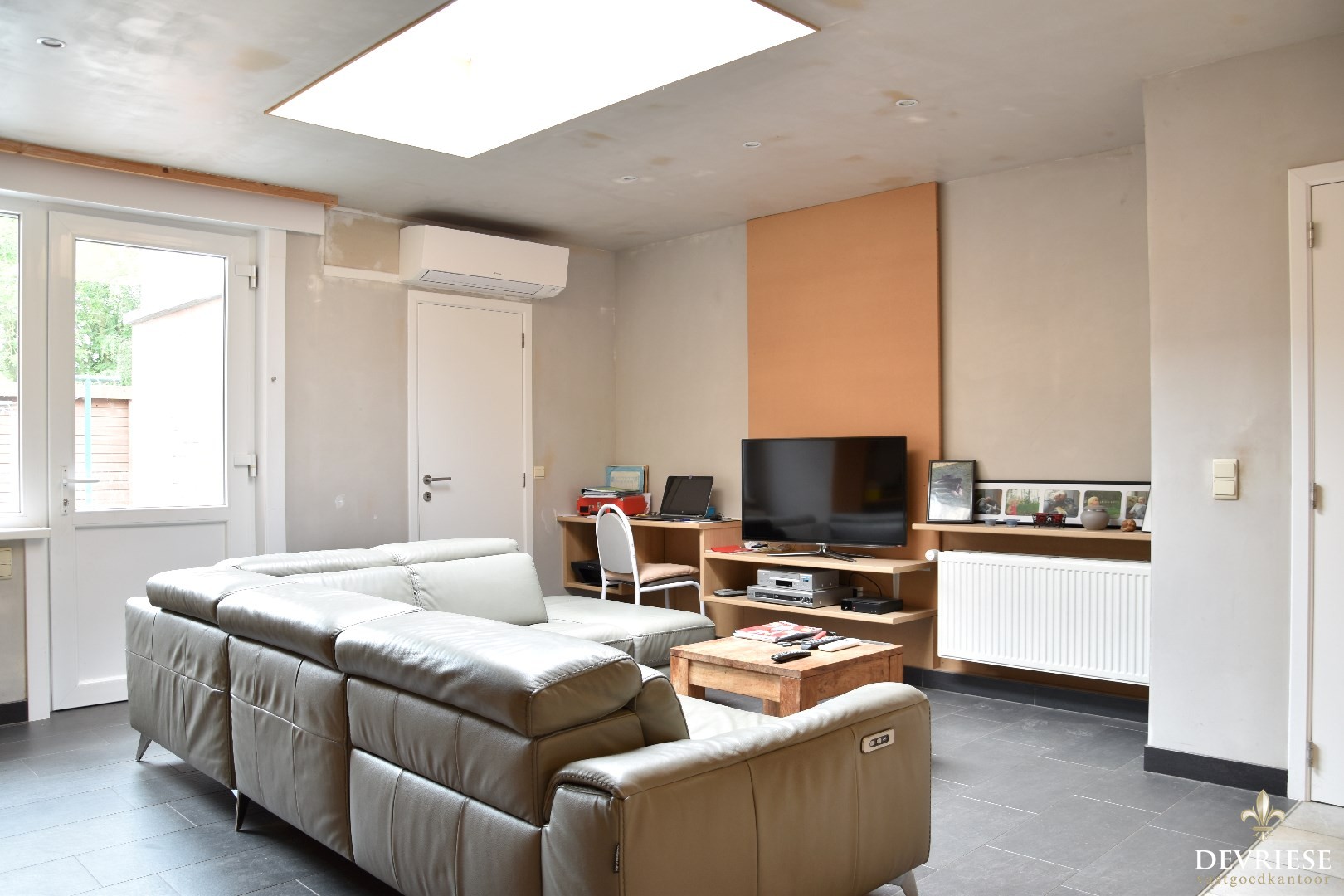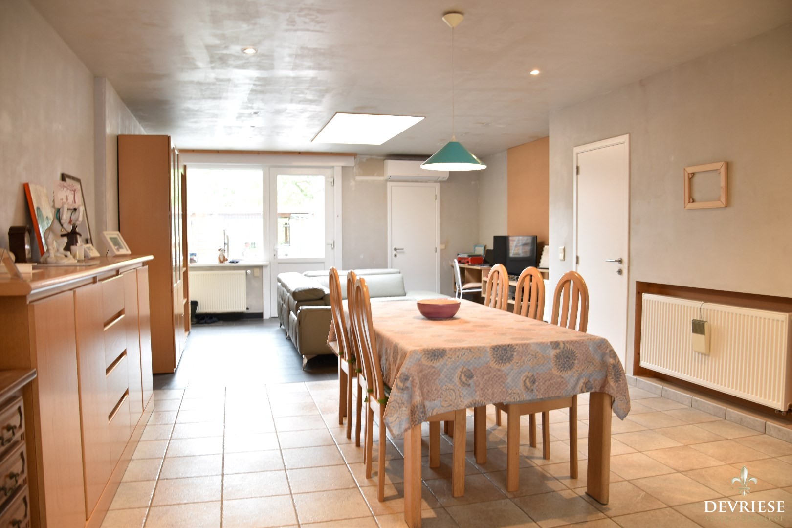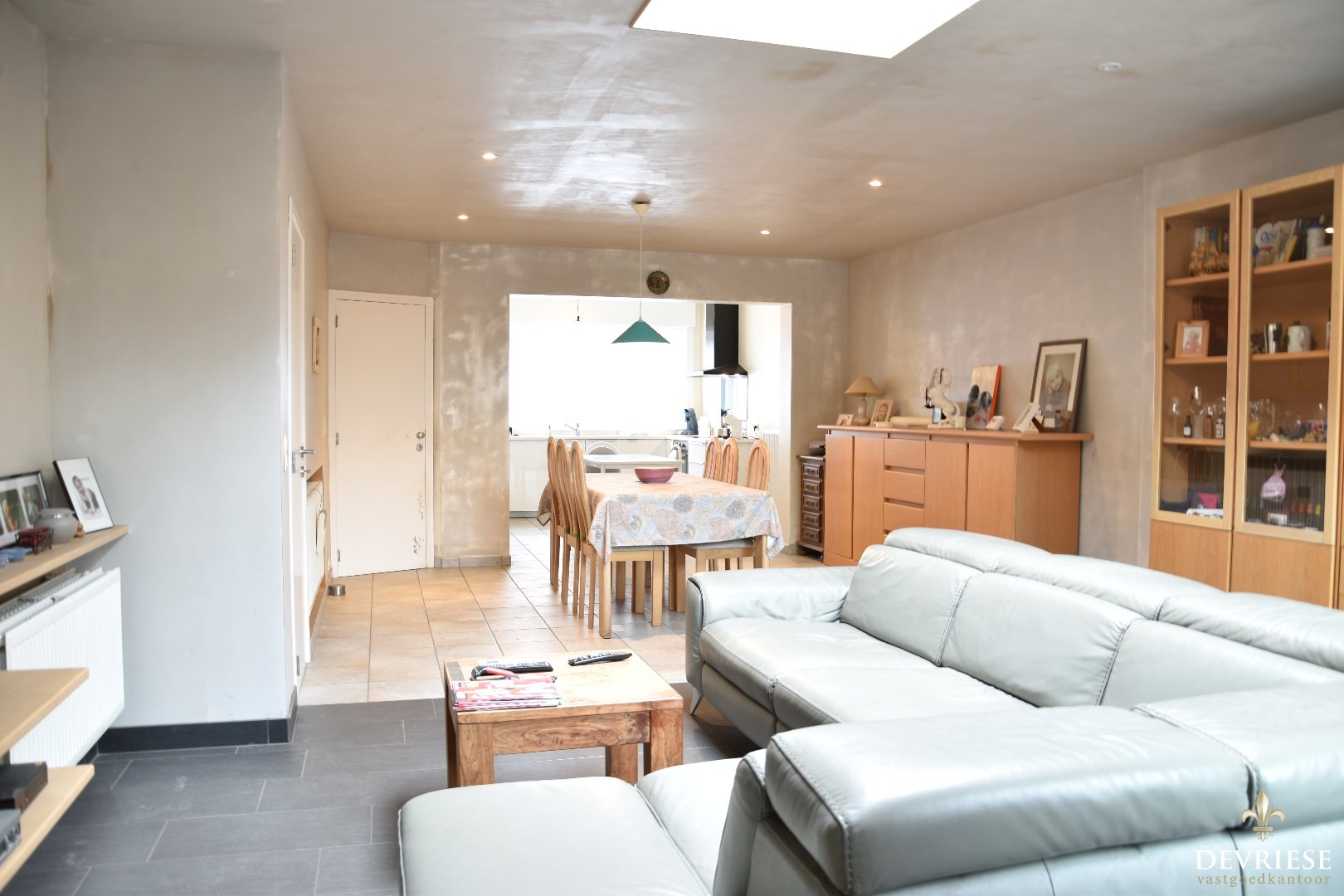 Bij het betreden van de woning wordt u verwelkomd door een uitnodigende inkomhal die meteen een gevoel van huiselijkheid uitstraalt. Deze hal leidt naar een gezellige leefruimte, waar een recent geïnstalleerde, moderne keuken een centraal element vormt.
