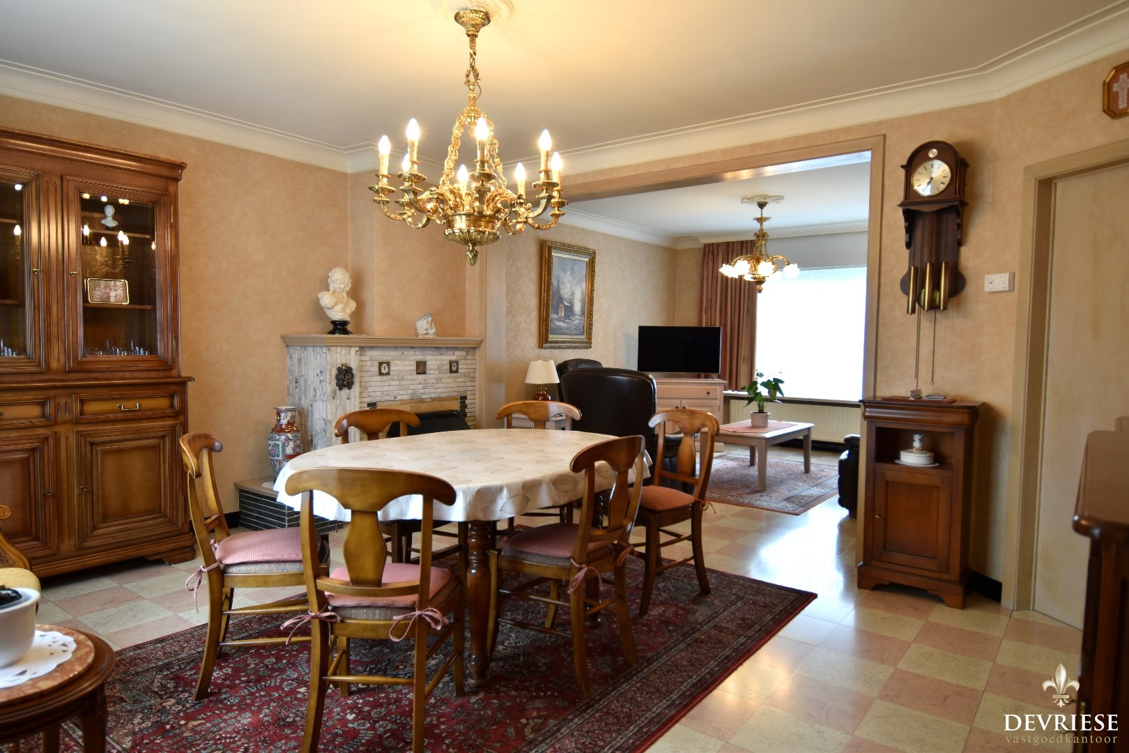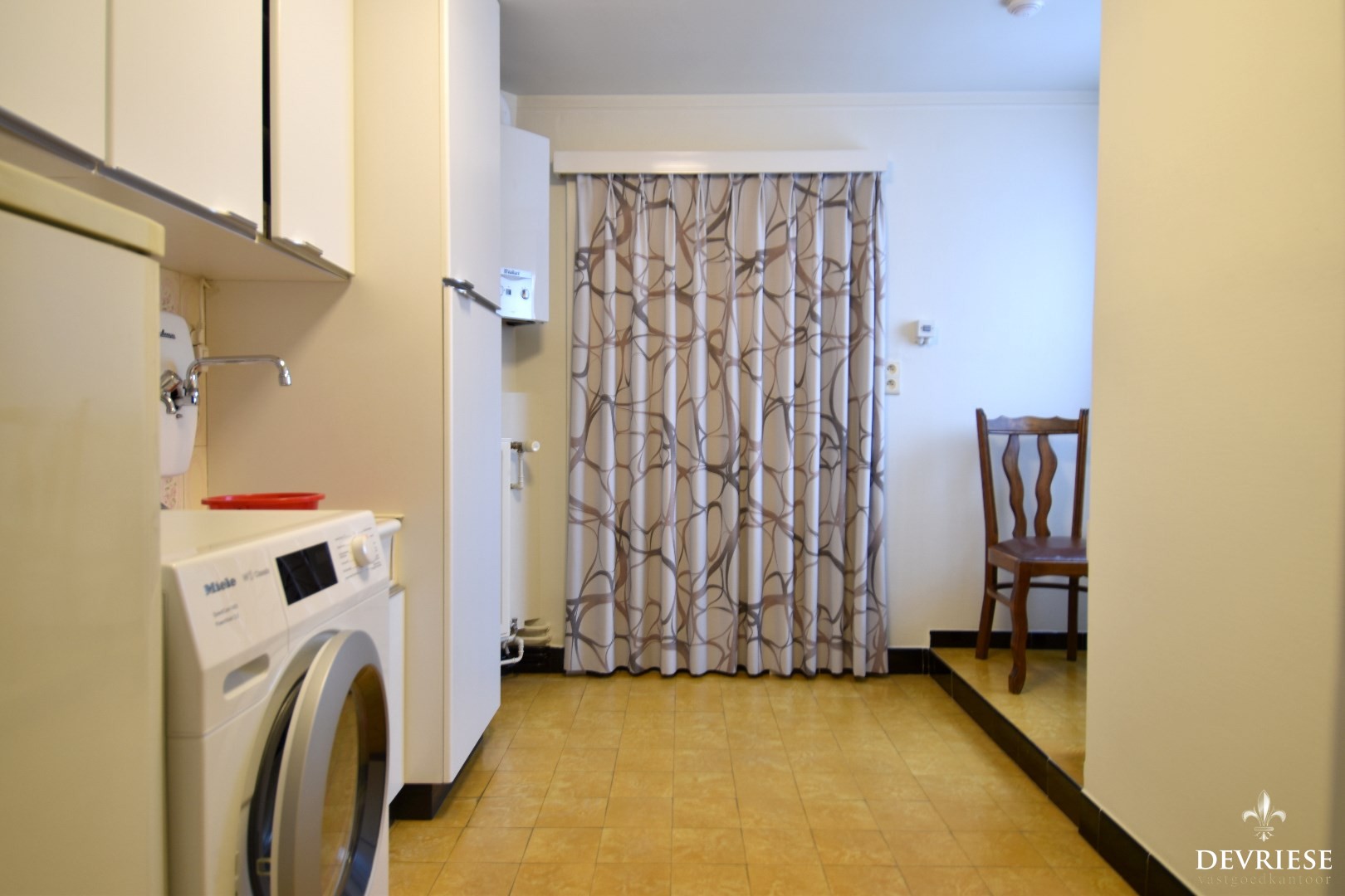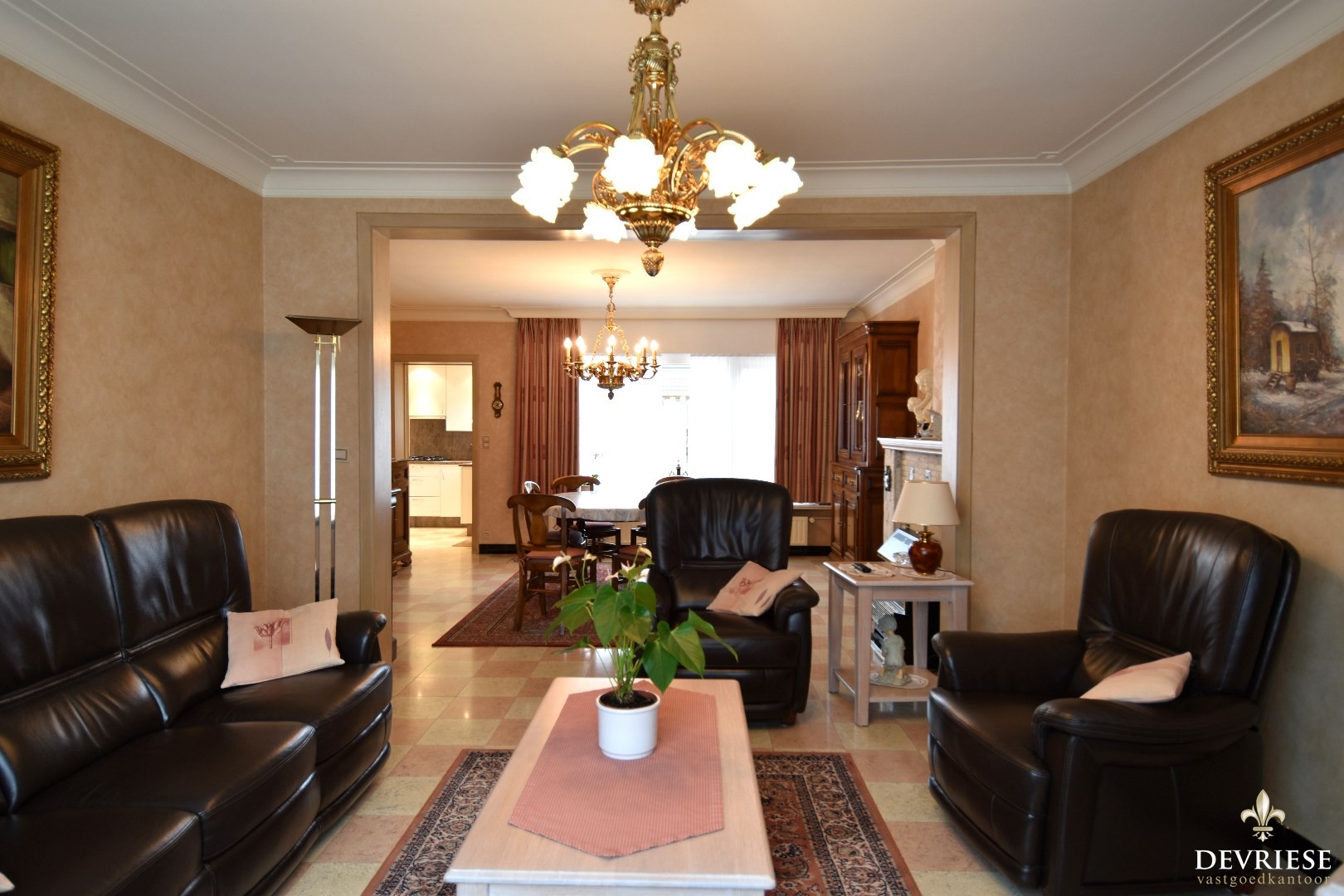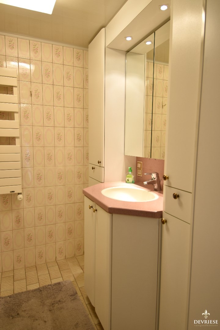 Op het gelijkvloers komt u binnen in een polyvalente ruimte (voorheen garage) die rechtstreeks toegang geeft tot een uitnodigende, lichtrijke doorzonleefruimte. Hier kunt u heerlijk ontspannen in het salon of dineren aan tafel.