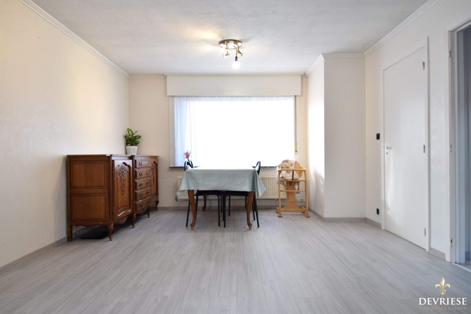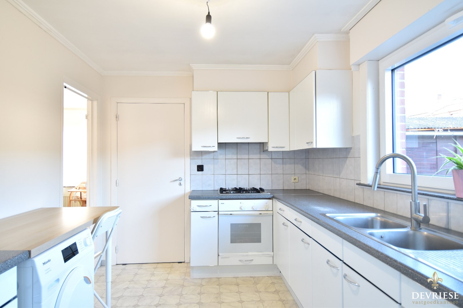 Vanuit de keuken heb je toegang tot de eerste, recent vernieuwde badkamer met inloopdouche en lavabo, en tot een polyvalente ruimte (of slaapkamer) op het gelijkvloers.