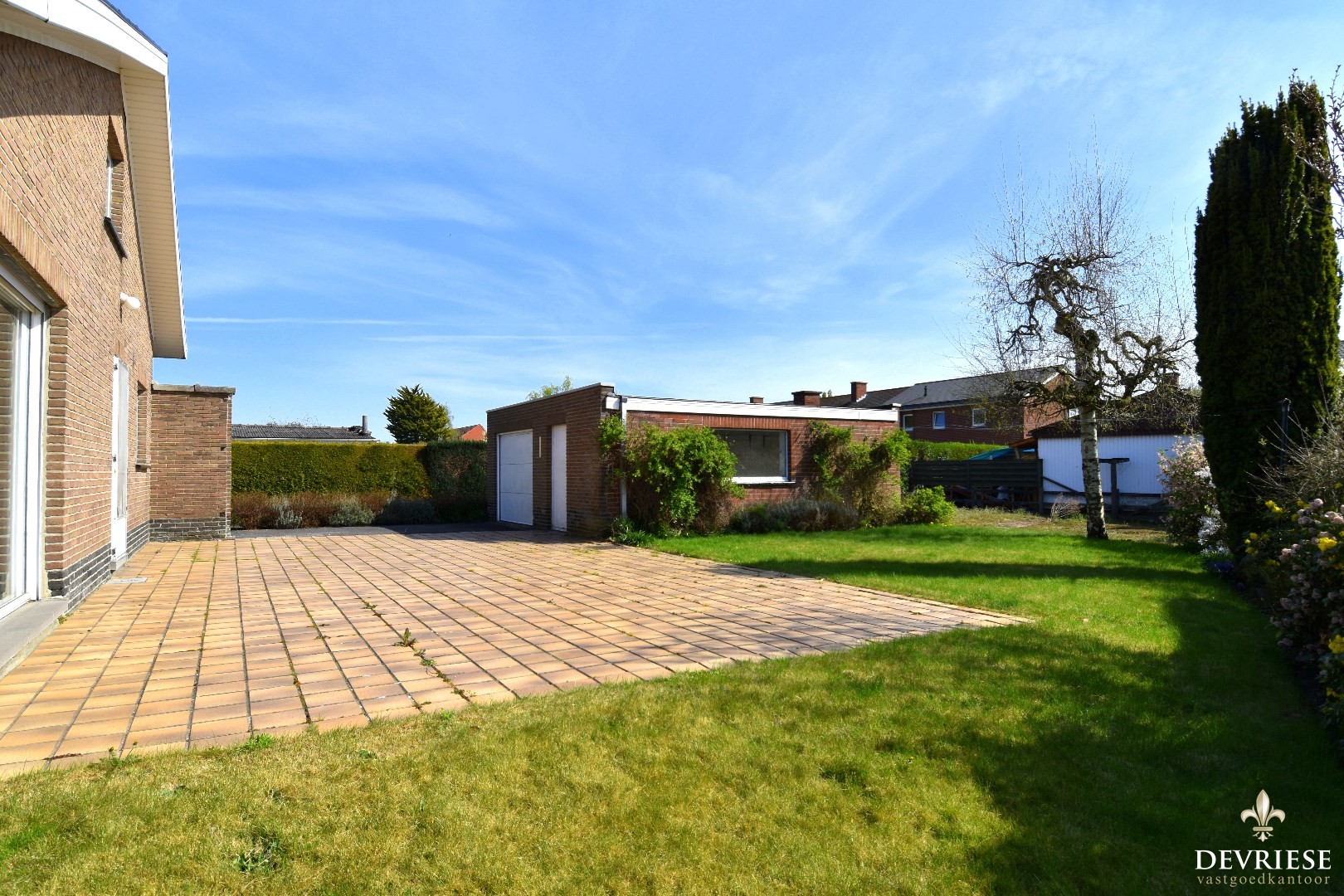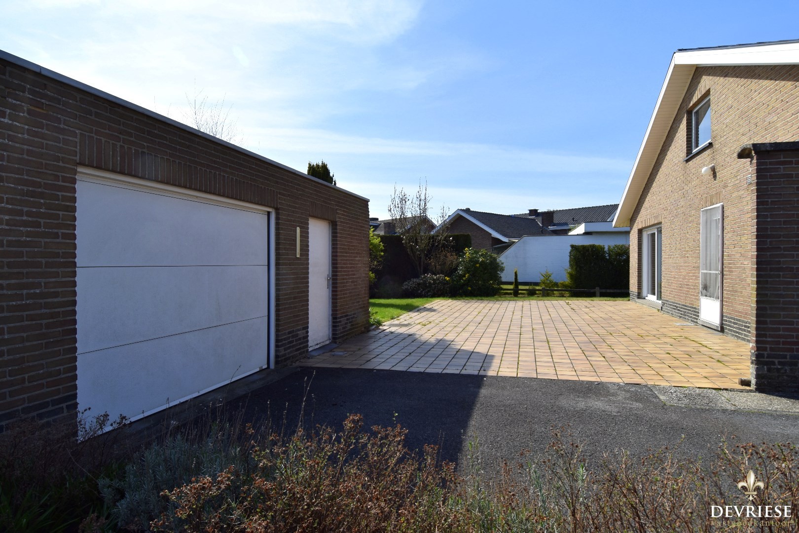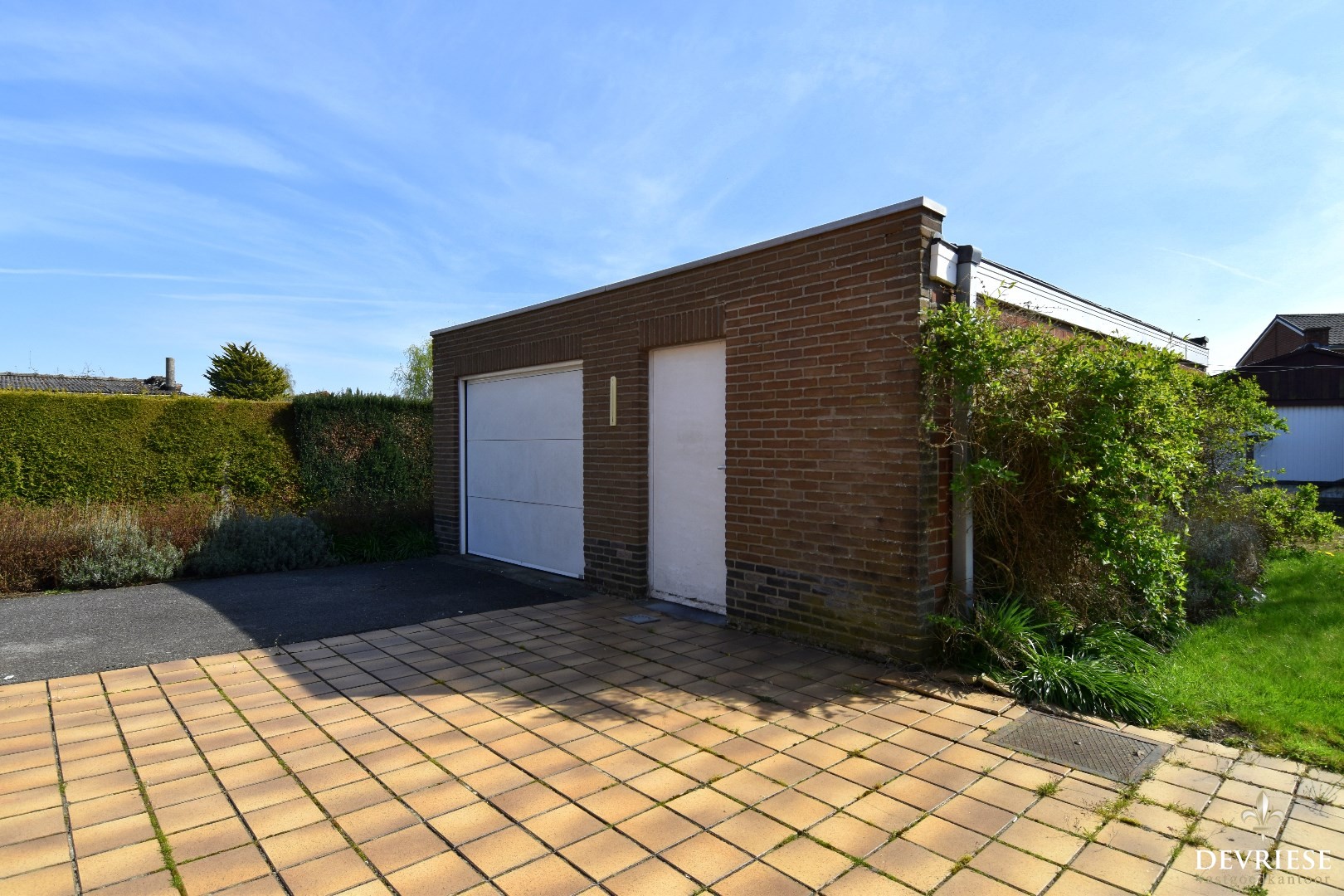 De oprit biedt plaats aan meerdere wagens. Op het eind is er een handige garage met sectionaalpoort met een naastgelegen berging.