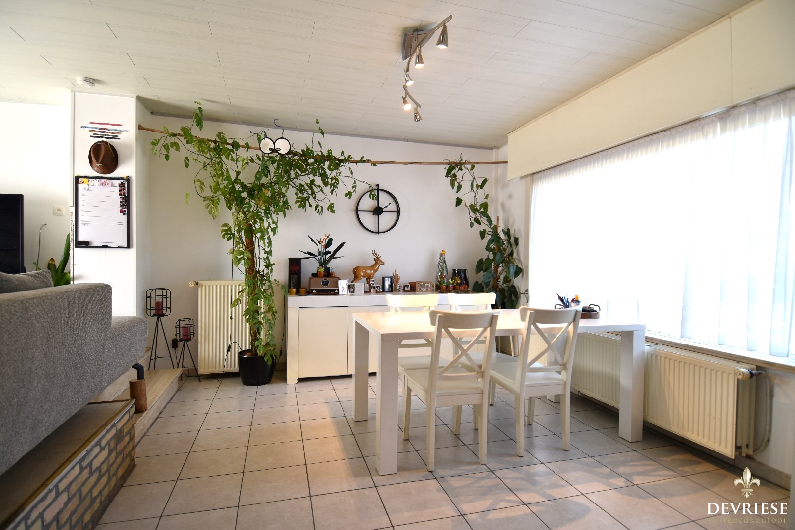 Bij het binnenkomen betreed je een inkomhal die toegang geeft tot de lichtrijke leefruimte, bestaande uit een salonruimte en eetplaats, perfect voor gezellige familiemomenten.
