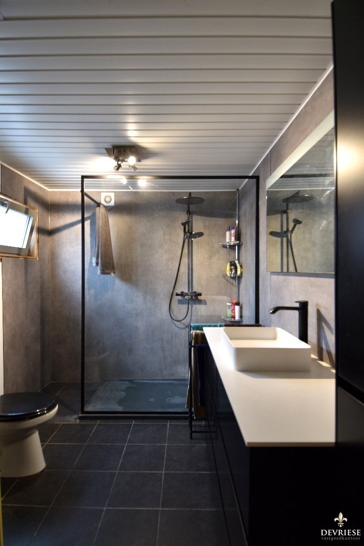 Aansluitend vind je een praktische wasplaats met extra opbergruimte en een apart gastentoilet. Verder op het gelijkvloers is er een stijlvolle badkamer met inloopdouche, lavabomeubel en een tweede toilet.