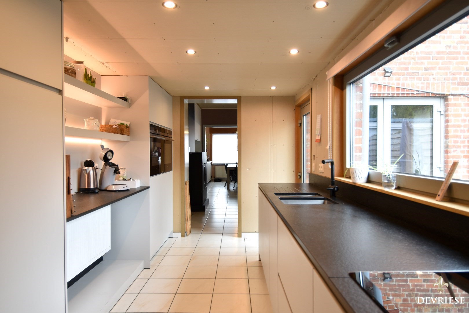 Bij binnenkomst word je verwelkomd in een gezellige inkomhal die meteen een warm thuisgevoel geeft. Van hieruit bereik je de aangename leefruimte, waar een moderne en recent vernieuwde keuken een échte blikvanger is.