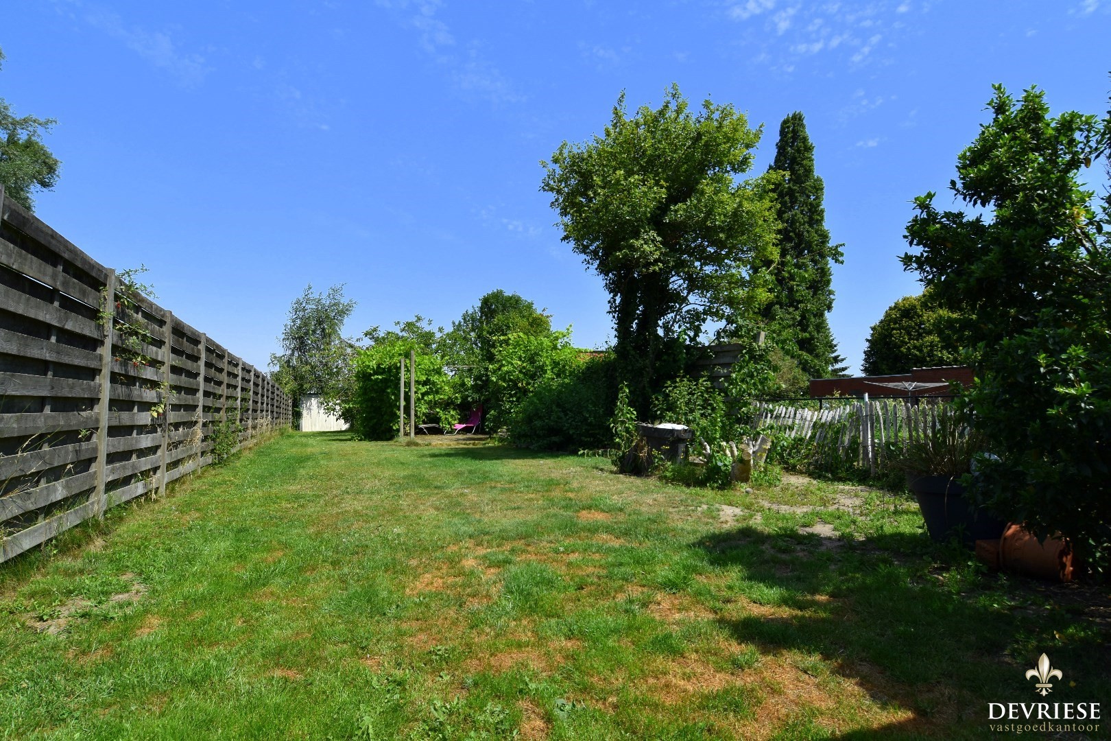 Een aangelegd terras vloeit naadloos over in een ruim gazon met een prachtig vergezicht op de achterliggende velden. Hier geniet je in alle rust van het buitenleven.