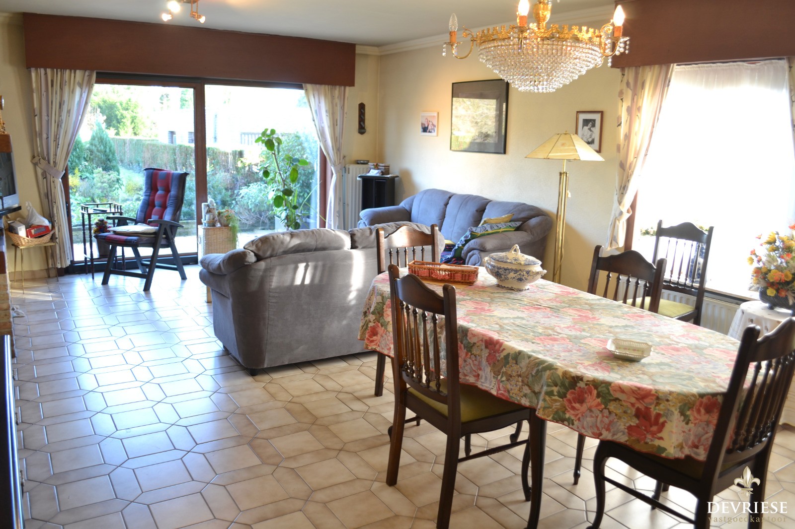 Half open bebouwing met ruime living en keuken die vol uitgeven op de tuin. 3 slaapkamers en mogelijks een vierde op de in te richten bergruimte.