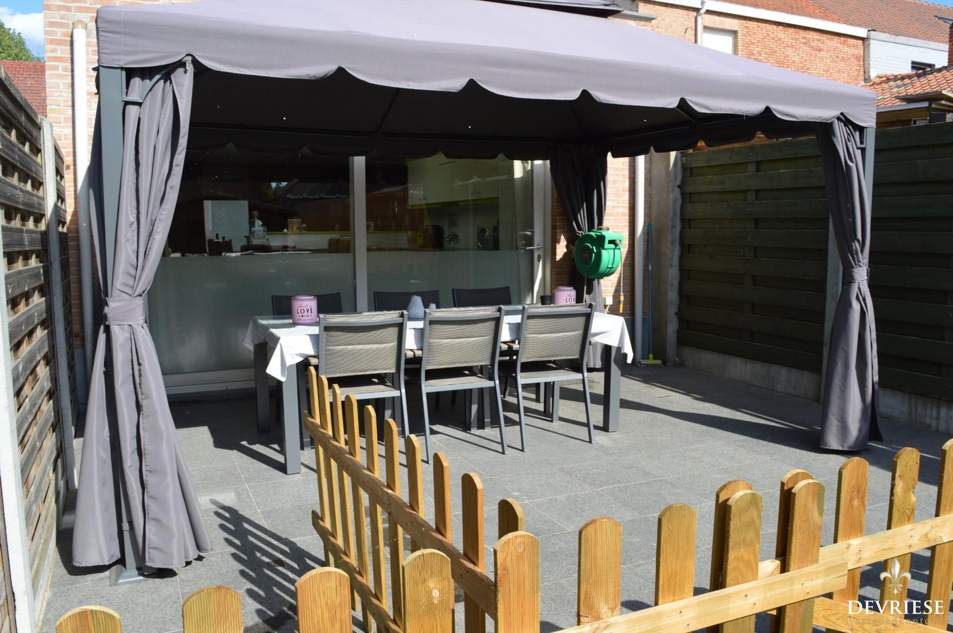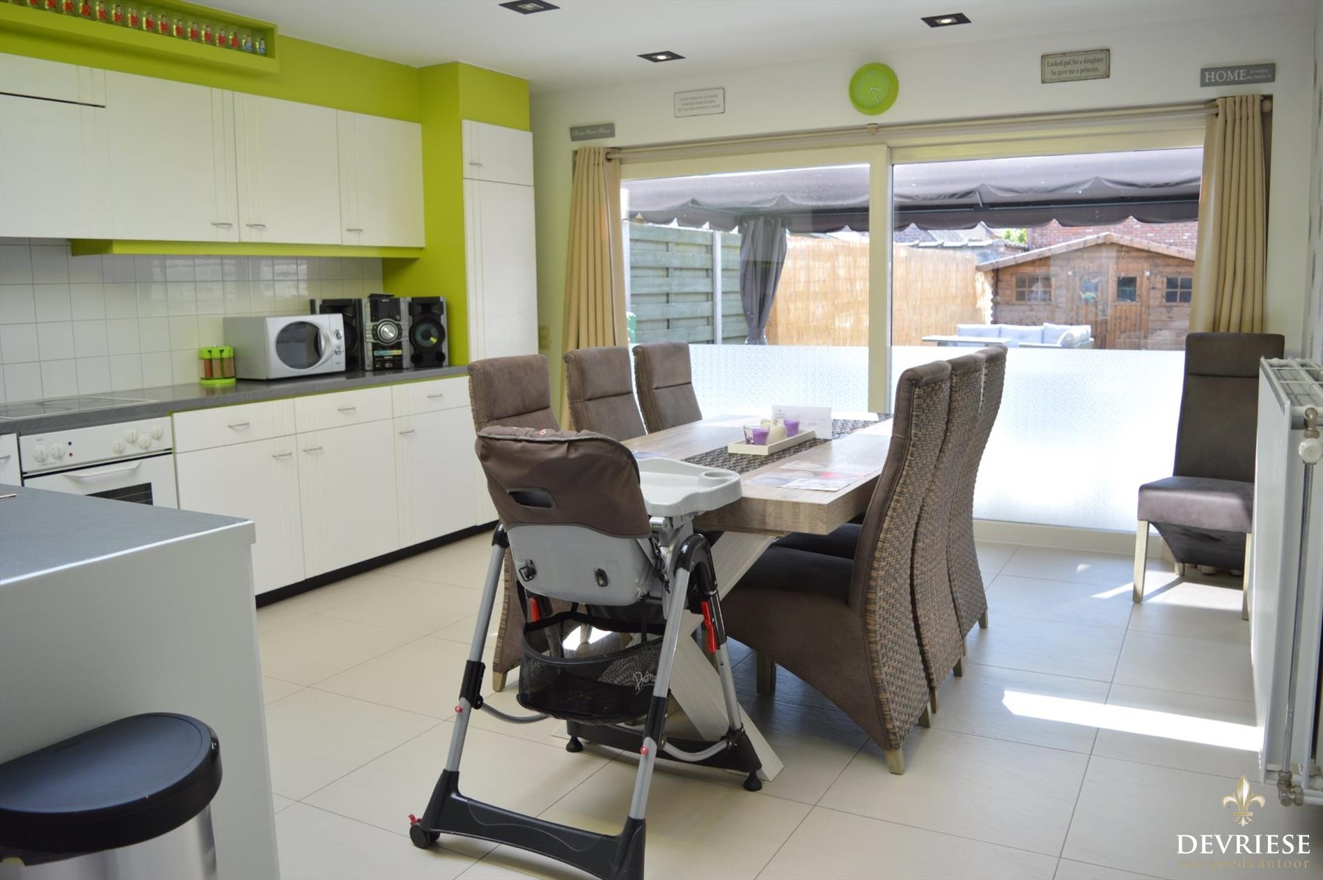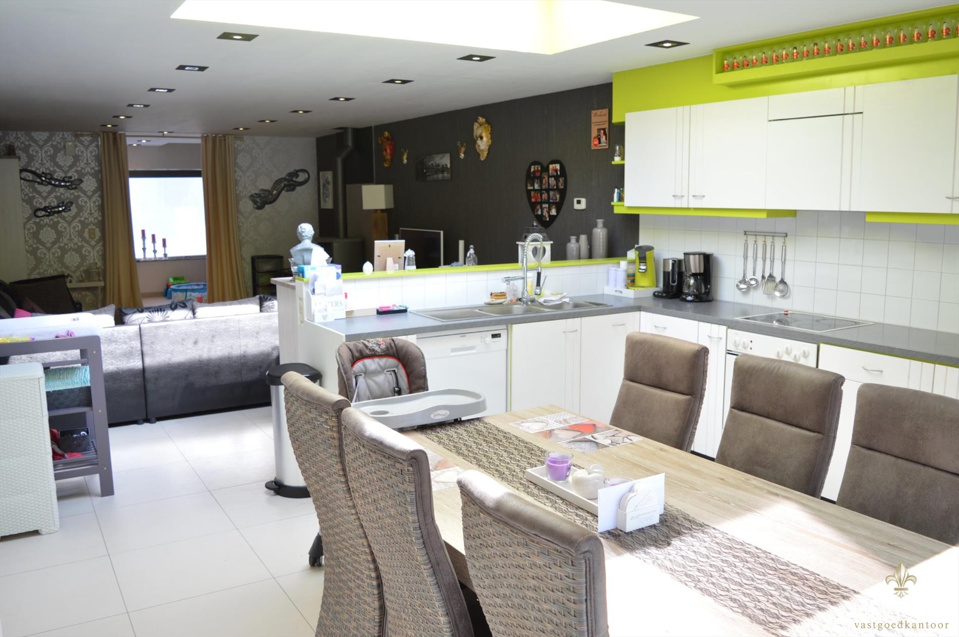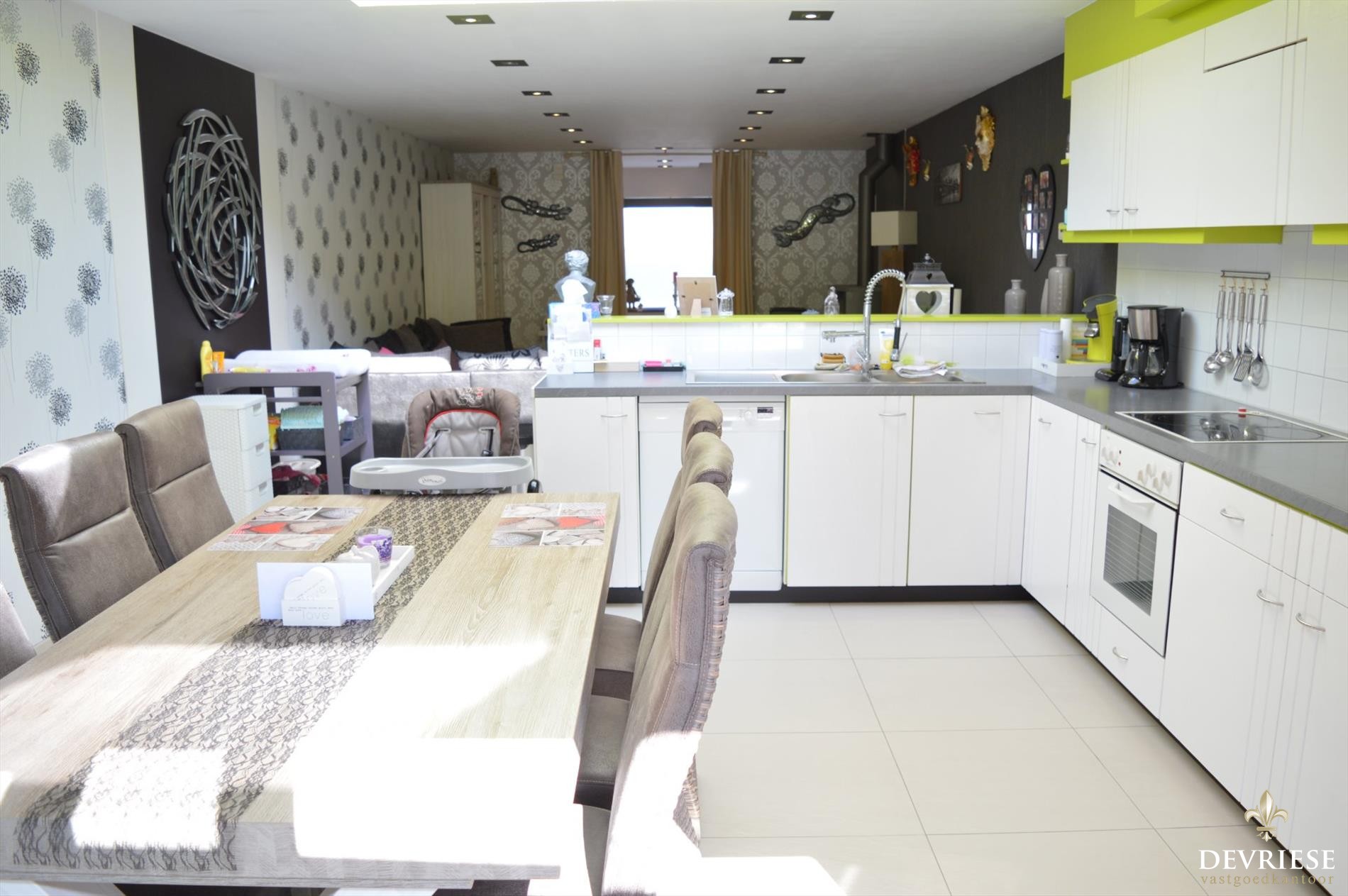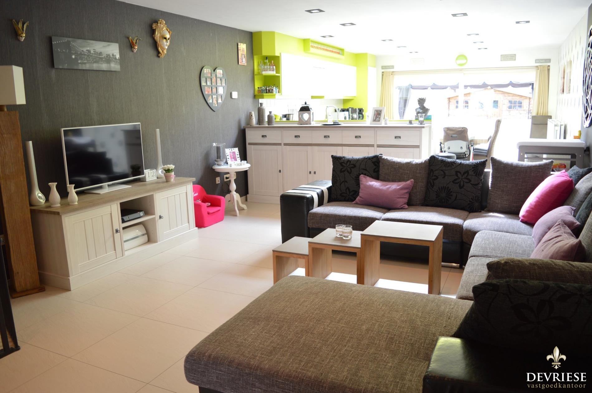 U komt binnen via de inkomhal die voorzien is van een bergruimte en apart gastentoilet. Daarachter ligt de ruime leefruimte met heel wat lichtinval en aansluitend een open keuken. Van hieruit is er vol zicht op het onderhoudsvriendelijke tuintje achteraan.