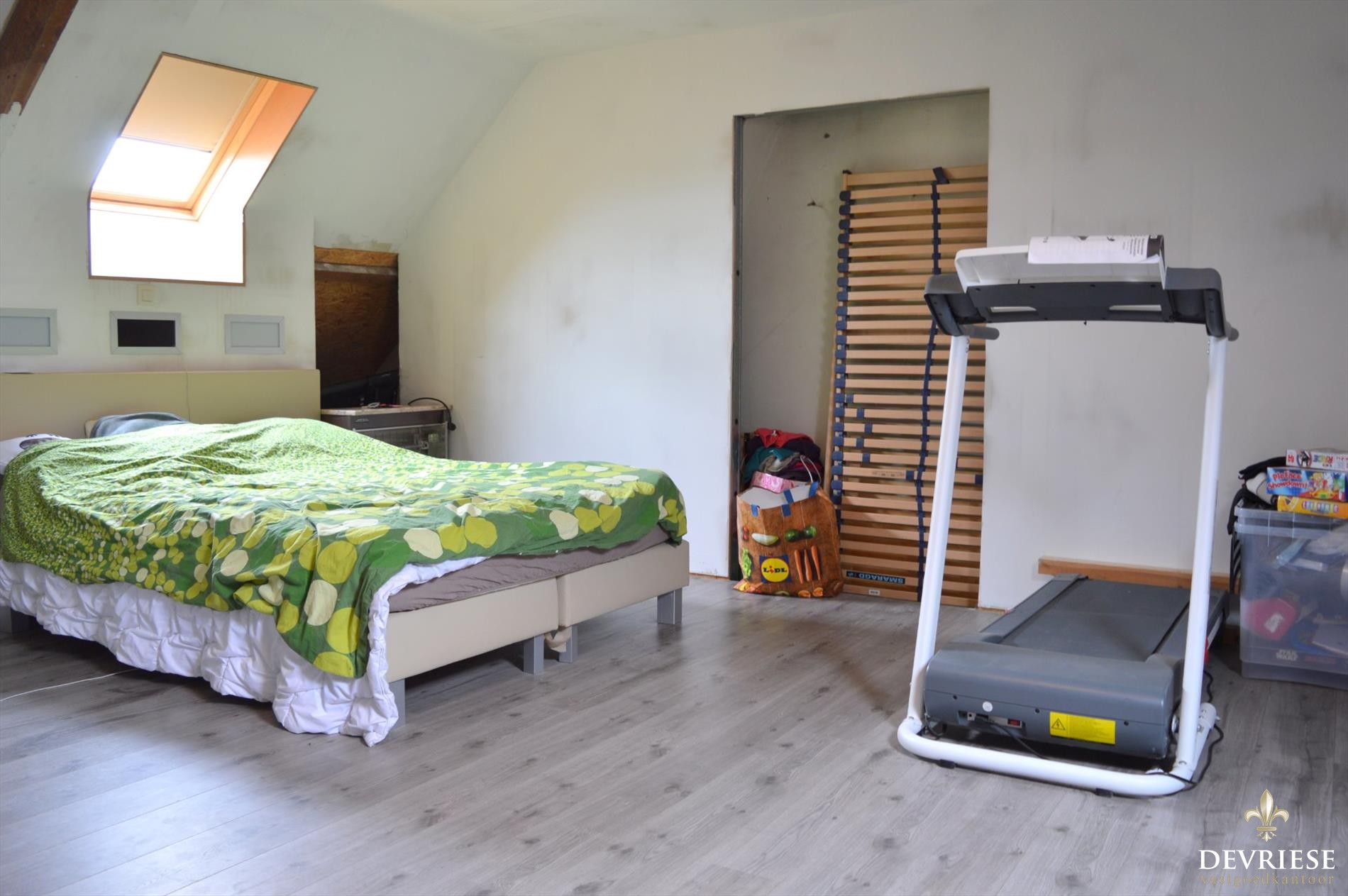 Via de vaste trap gaat u naar de zolderruimte, die ingericht werd als 4e slaapkamer en voorzien is van extra opbergruimte.