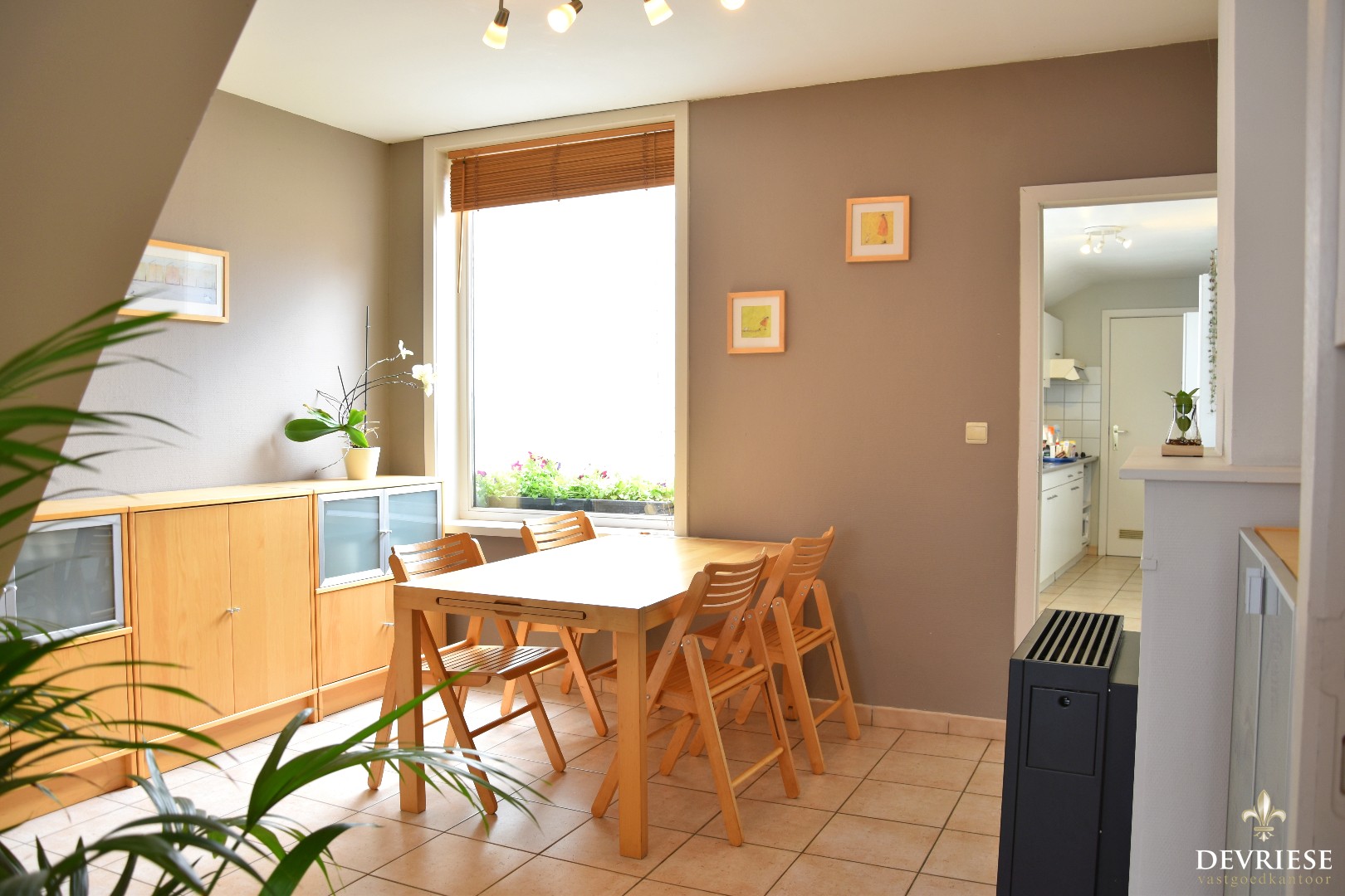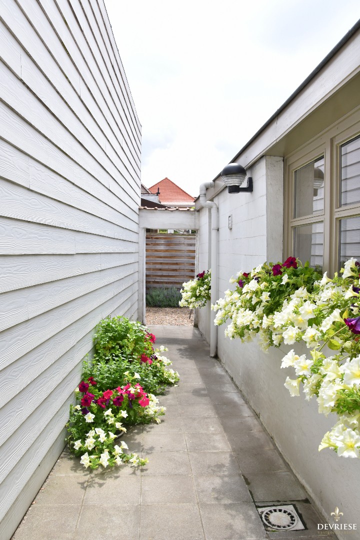 Vanuit de keuken is er toegang tot het gezellige terras achteraan. U geniet er van het zonnetje door de gunstige zuidoost oriëntatie. Bovendien is deze toegankelijk via de uitweg en dit te voet of met de fiets.