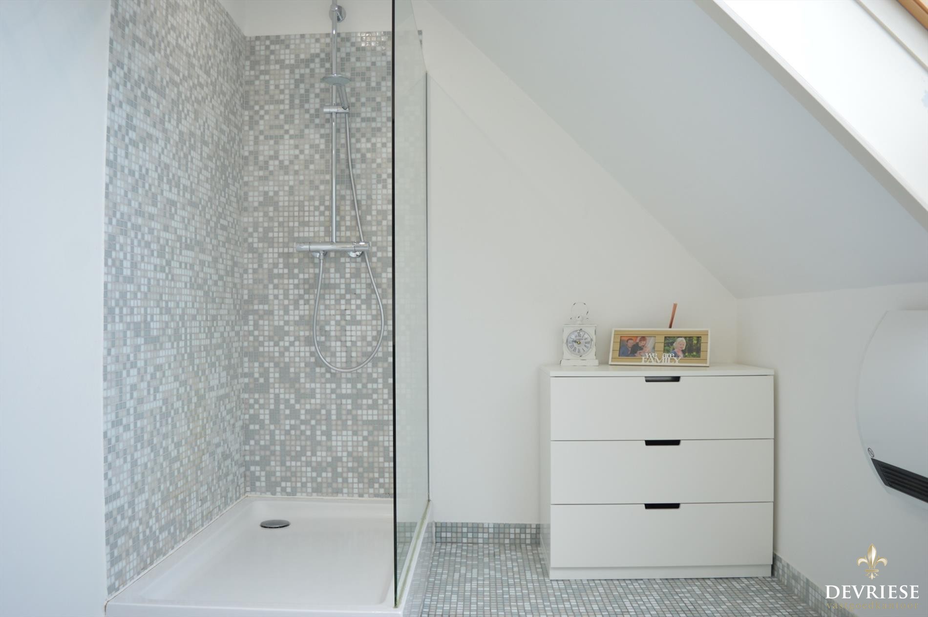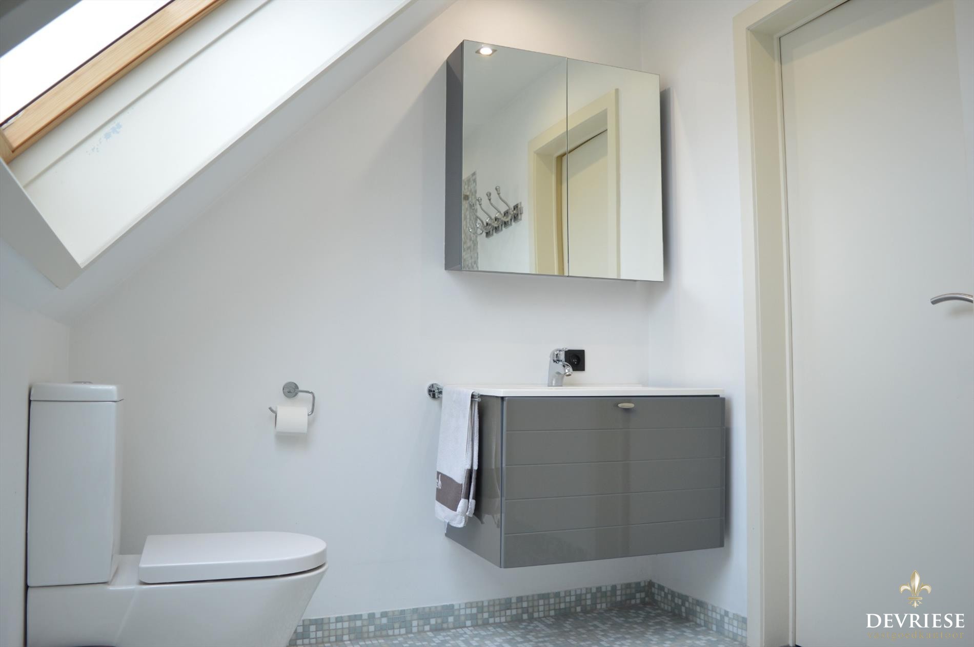 Op de eerste verdieping zijn er 3 slaapkamers, waarvan 1 met bijhorende dressingruimte en de moderne badkamer, voorzien ... van inloopdouche, enkele lavabo, een tweede toilet en bidet.