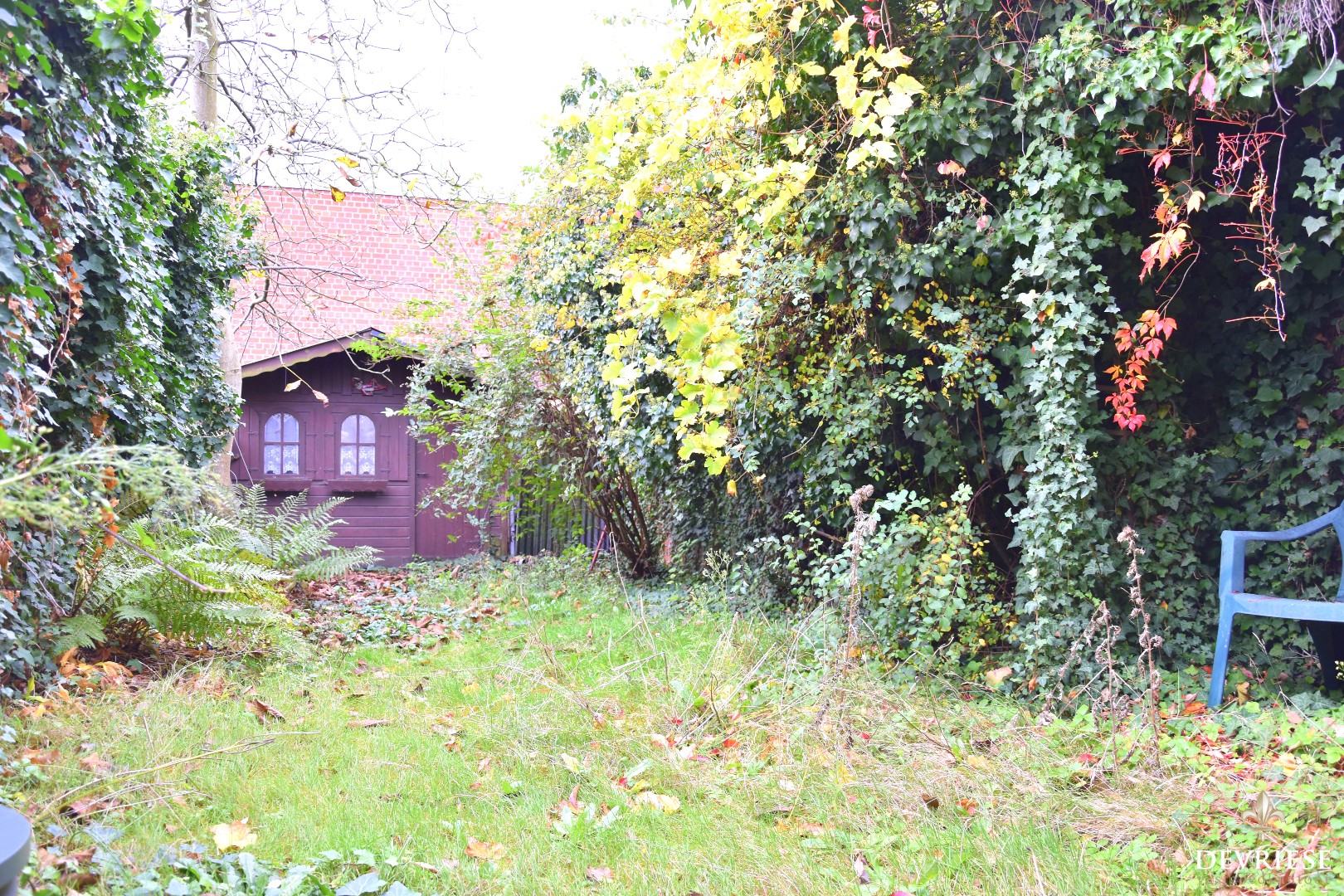Achtertuin met gunstige oriëntatie, met achteraan het tuinhuis dat voorzien is van een sauna.