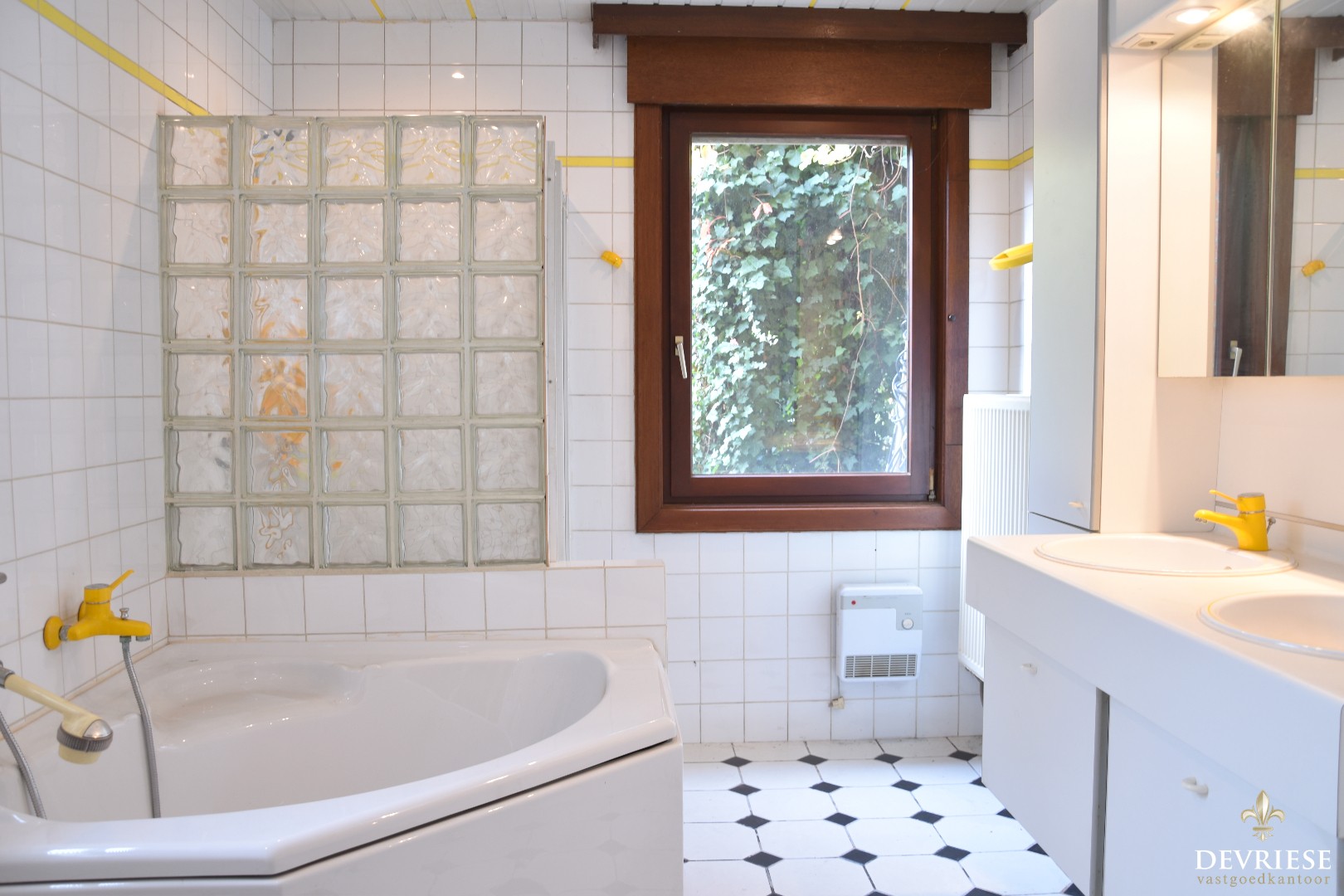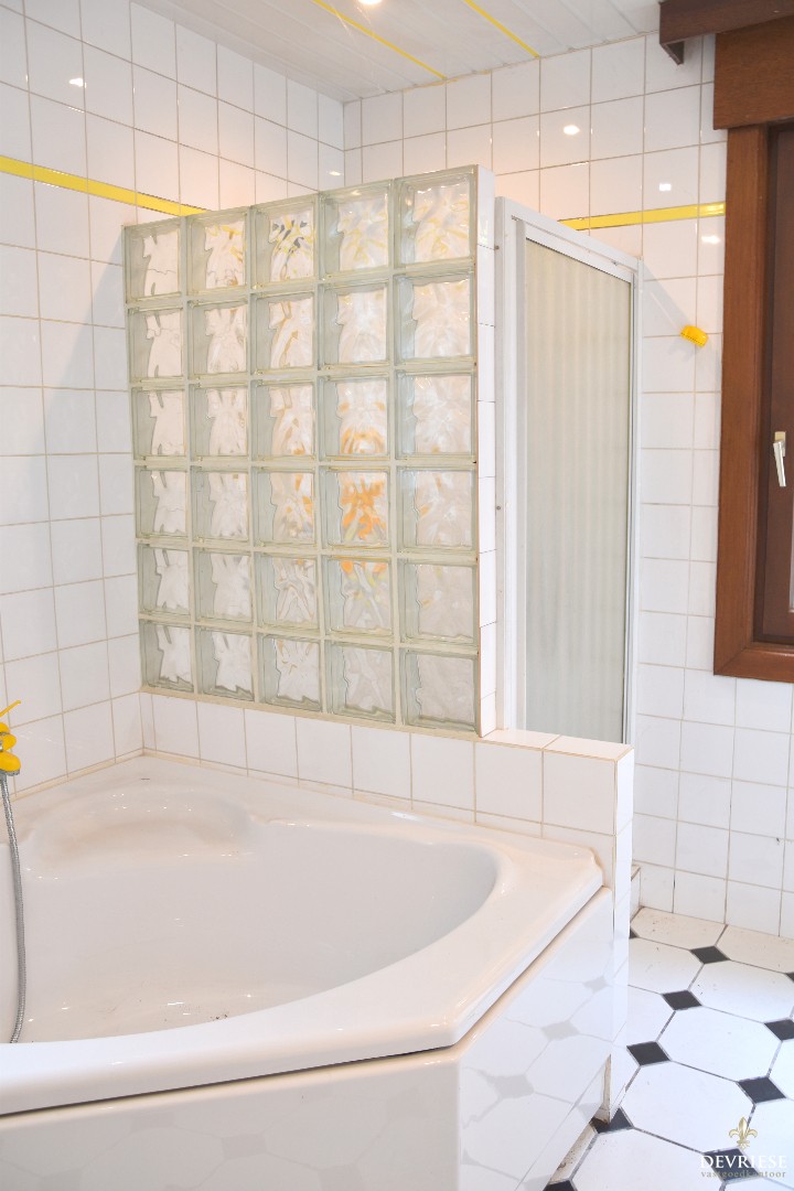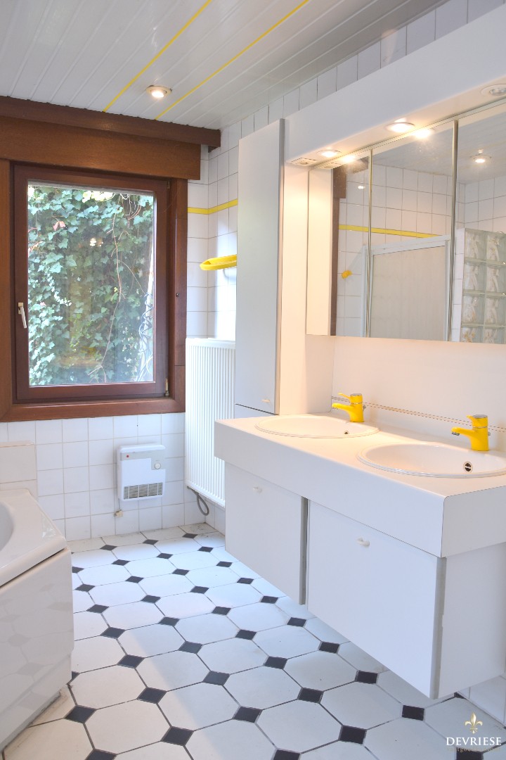 Verder op het gelijkvloers de ruime badkamer met bad, douche, toilet en lavabo.