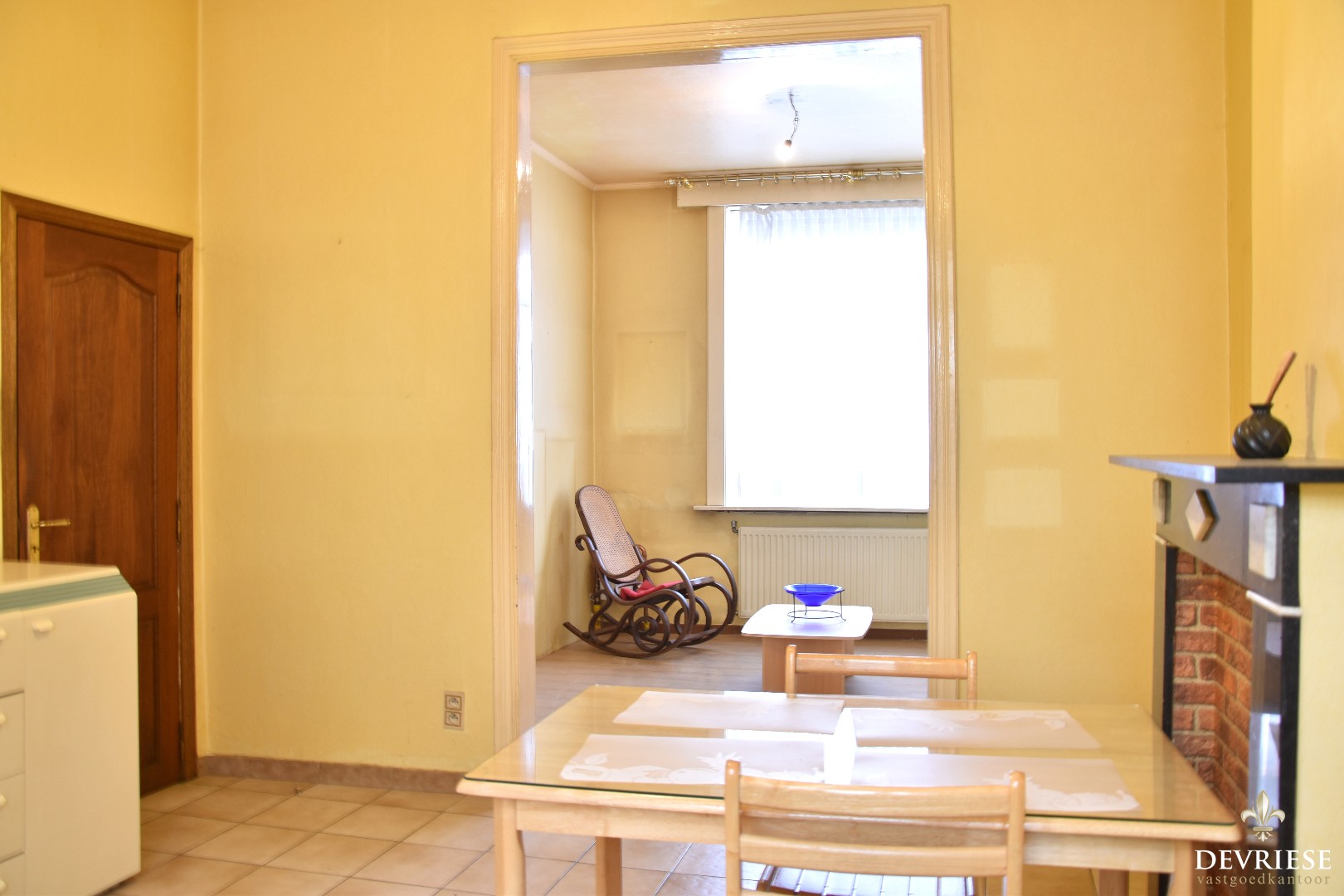 Via de aparte inkomhal treden we de leefruimte binnen, die bestaat uit een zit- en eetkamer. Daarachter de lichtrijke en ruime leefkeuken met directe toegang tot de achtertuin.
