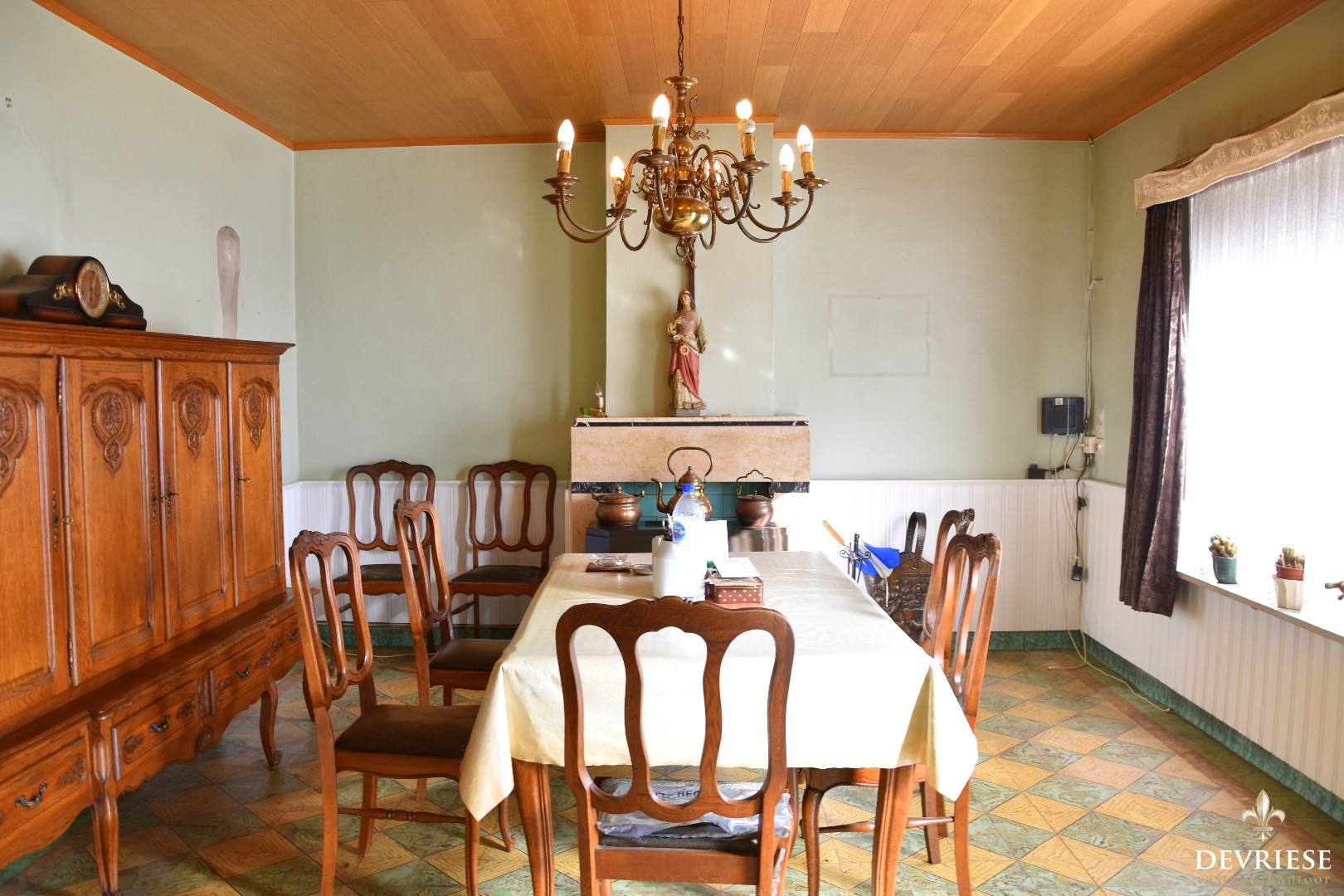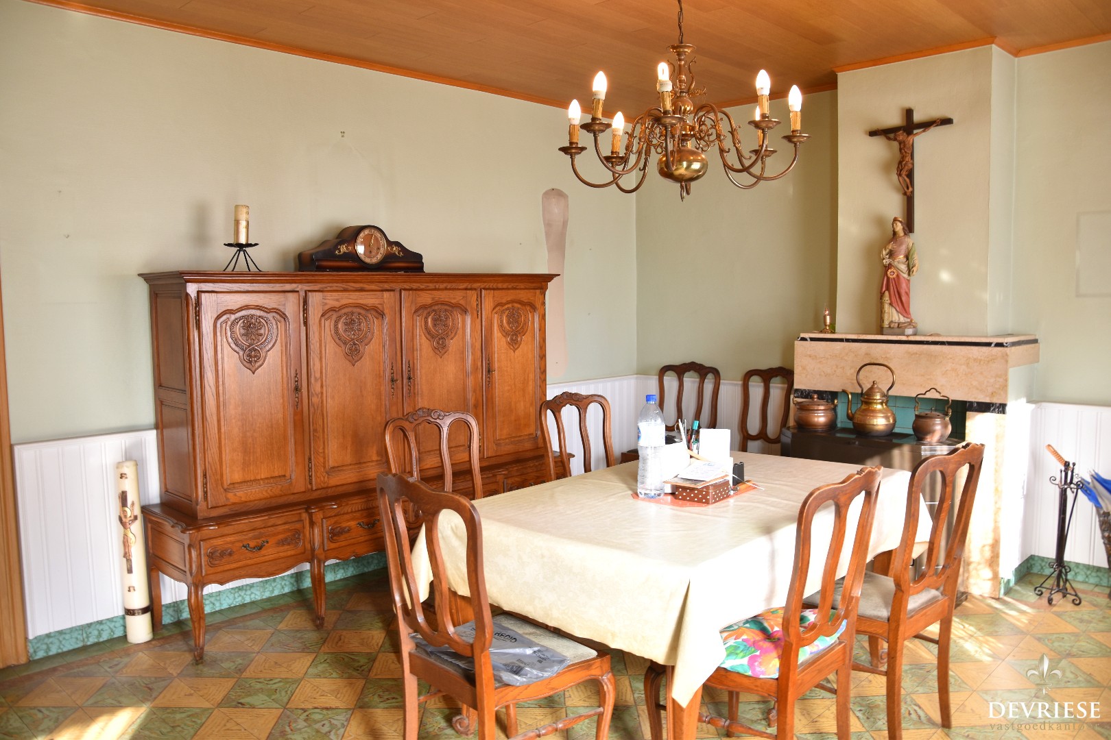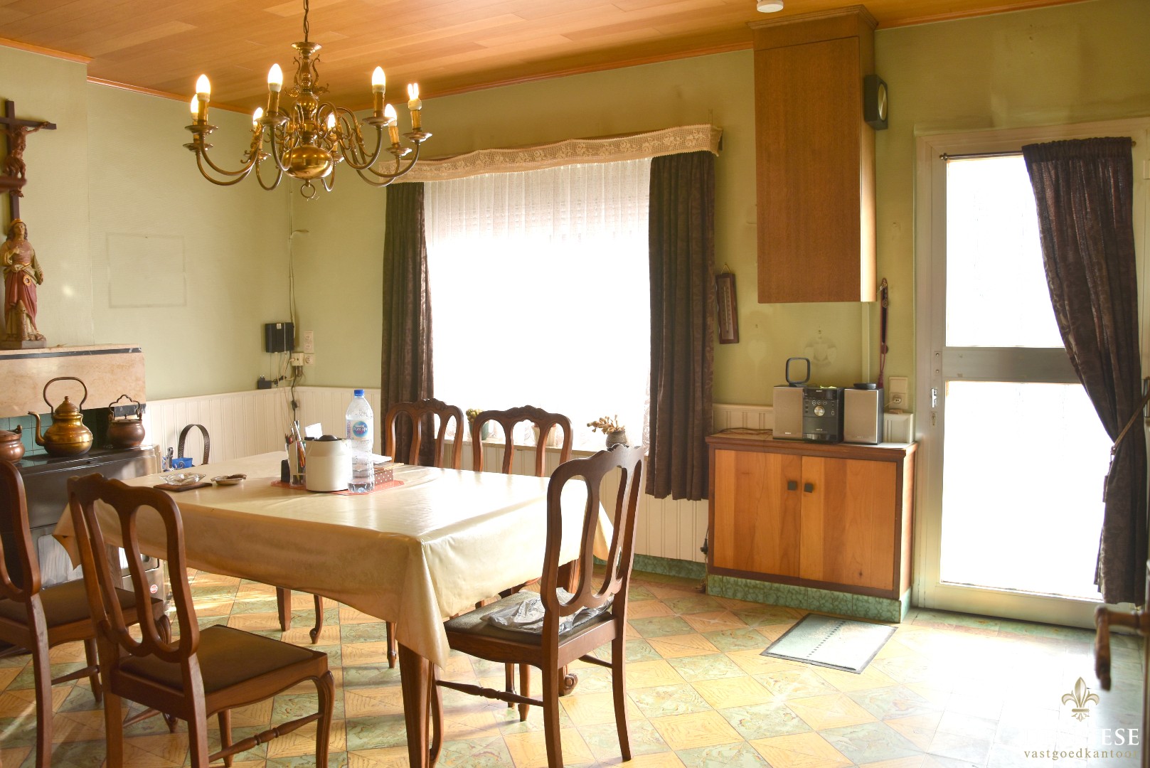 U komt binnen vooraan de woning in de woonkamer met bijhorende eetkamer. Achteraan nog de keuken en een eerste slaapkamer op het gelijkvloers. De kelder biedt extra bergruimte.