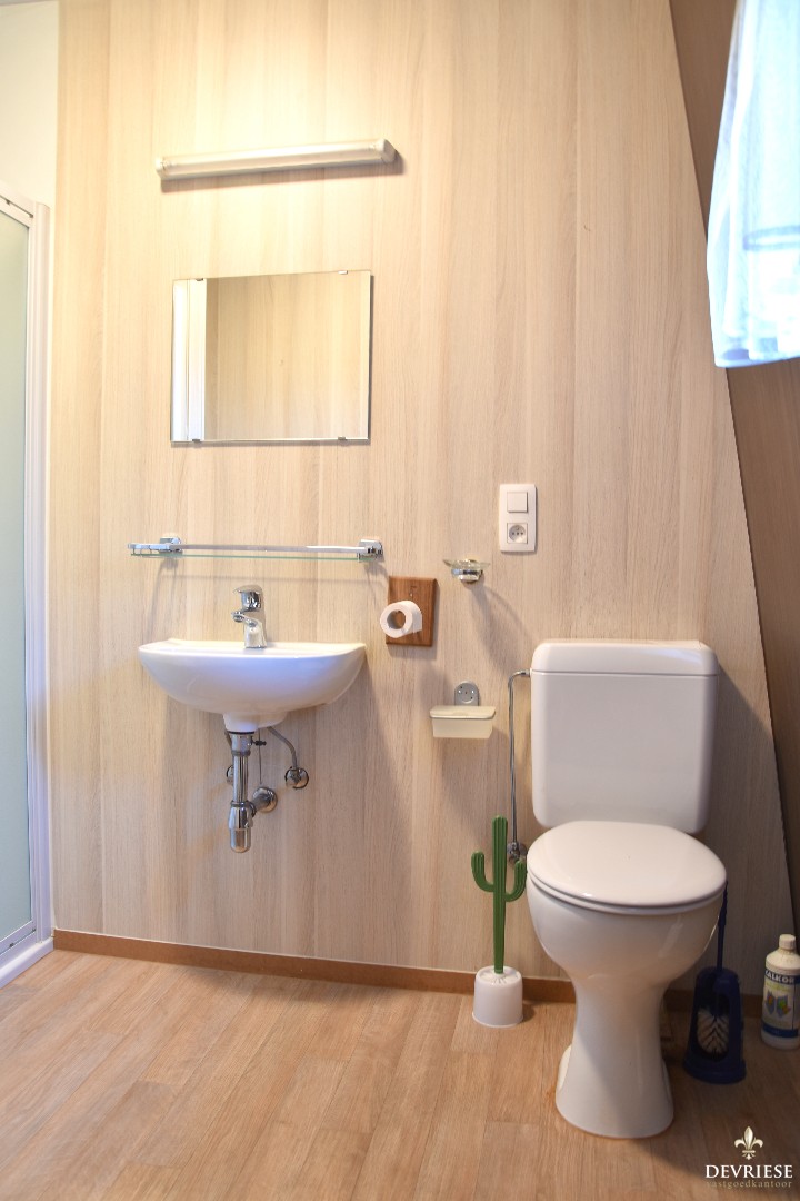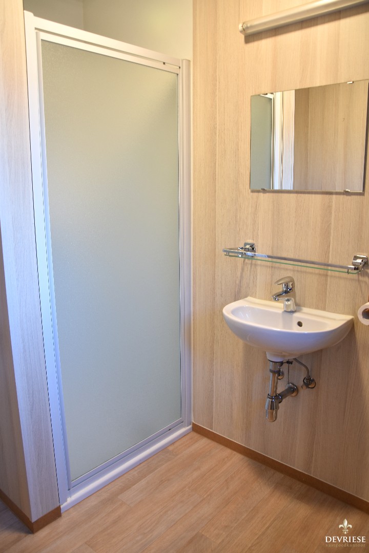 Hier situeert zich een tweede badkamer met douche en toilet, alsook een grote tuinberging.