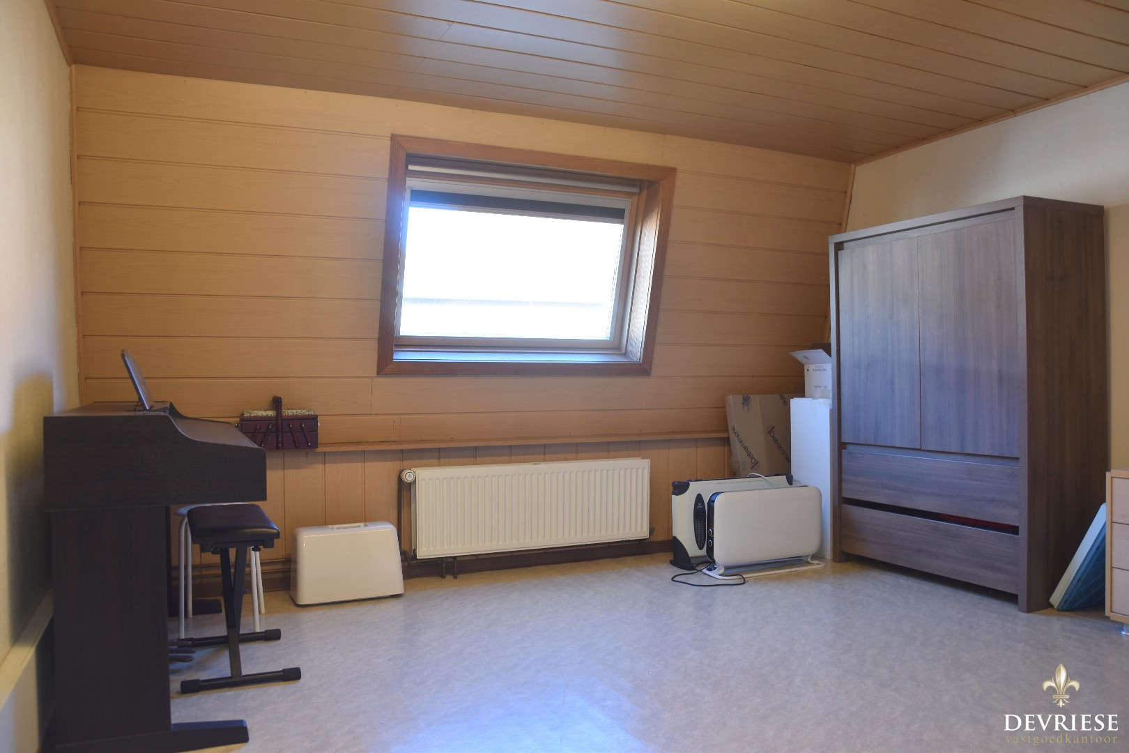 De geïsoleerde zolder, toegankelijk via een zoldertrap, voorziet de woning van de nodige bergruimte.