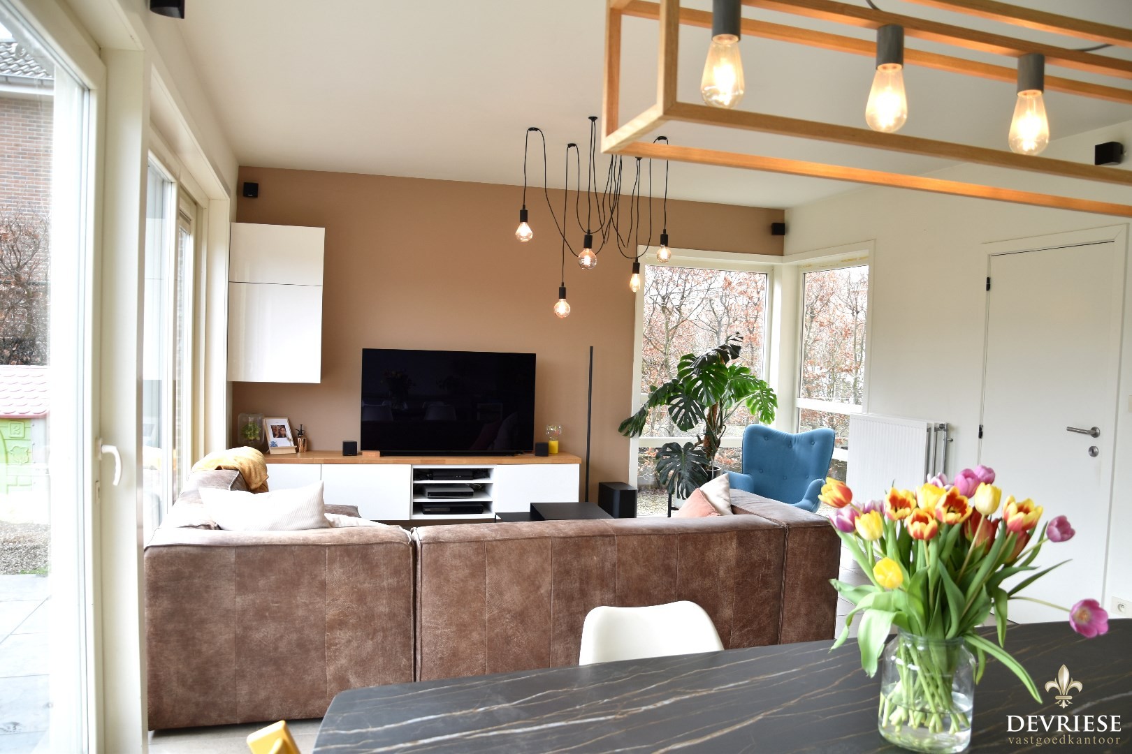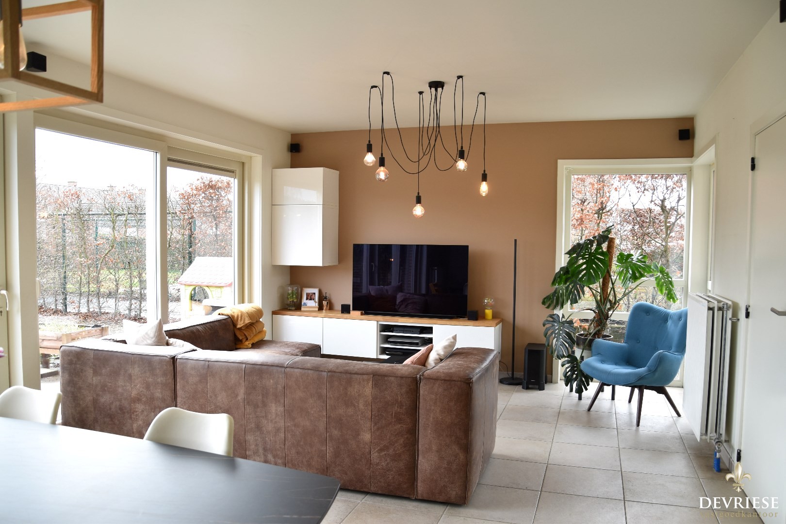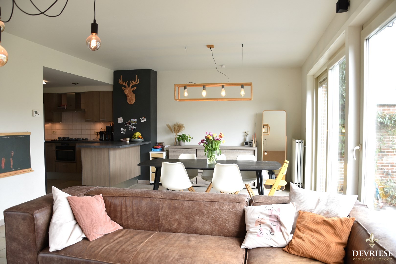 Open indeling & uiterst lichtrijk staan hier centraal. Salon, eetplaats en een kwalitatief geëquipeerde keuken.