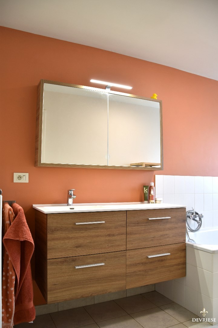 De verdieping telt 3 volwaardige slaapkamers en een (technische) berging. De verzorgde badkamer werd uitgerust met een ligbad, douchecel, lavabo en een tweede toilet.