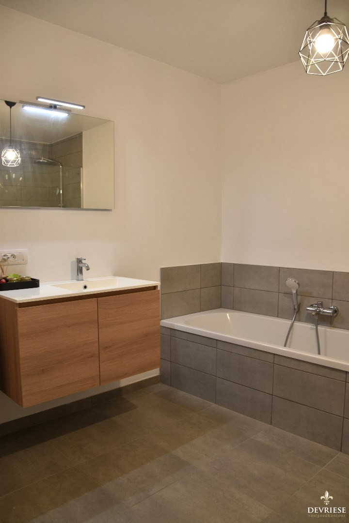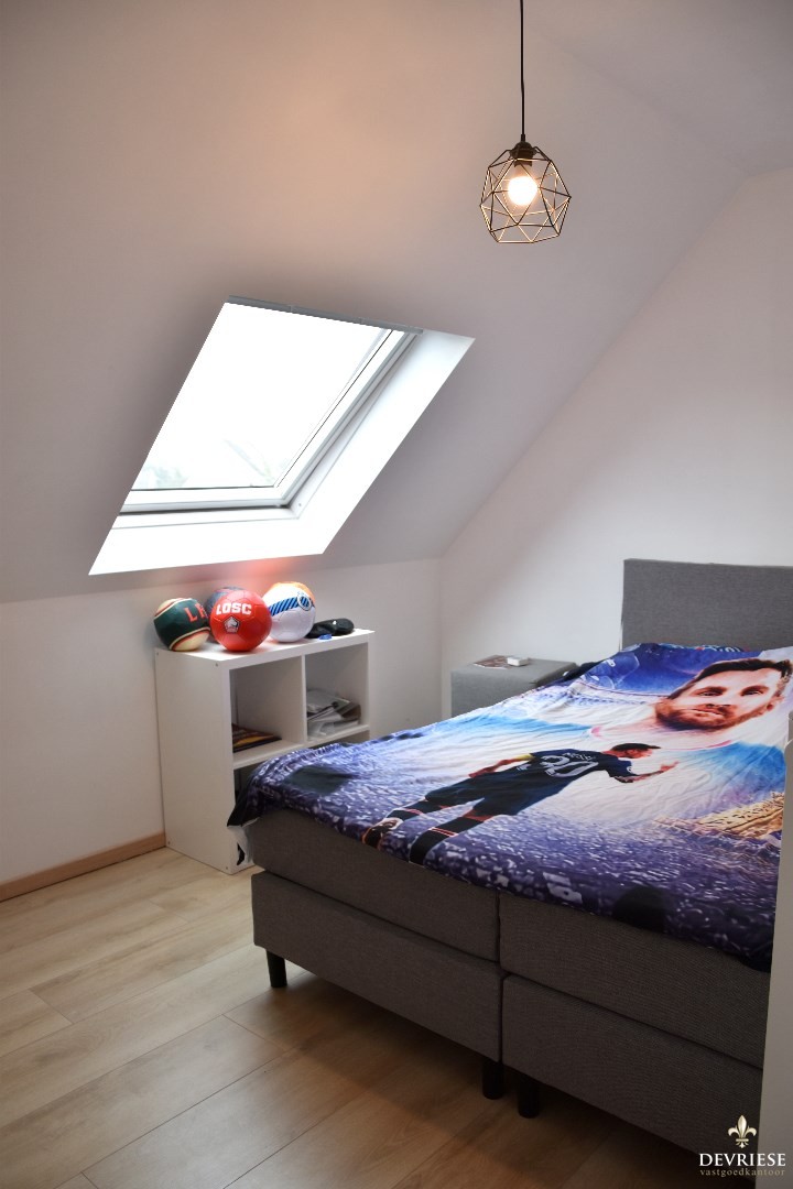 Op de eerste verdieping treffen we 3 volwaardige slaapkamers, waarvan 1 met ensuite dressing. De badkamer werd uitgerust met een ligbad, inloopdouche en lavabomeubel.