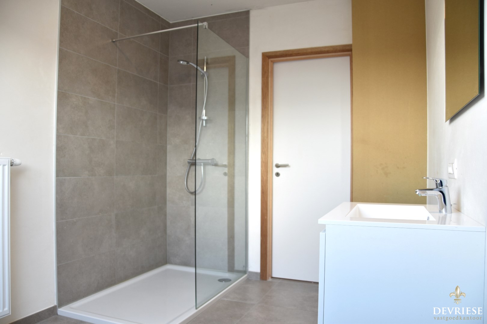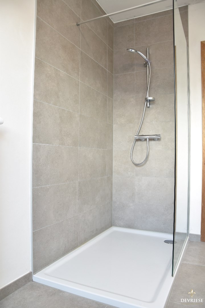 Op de eerste verdieping zijn er 3 slaapkamers, apart toilet en de badkamer met 1 lavabo, bad en inloopdouche.