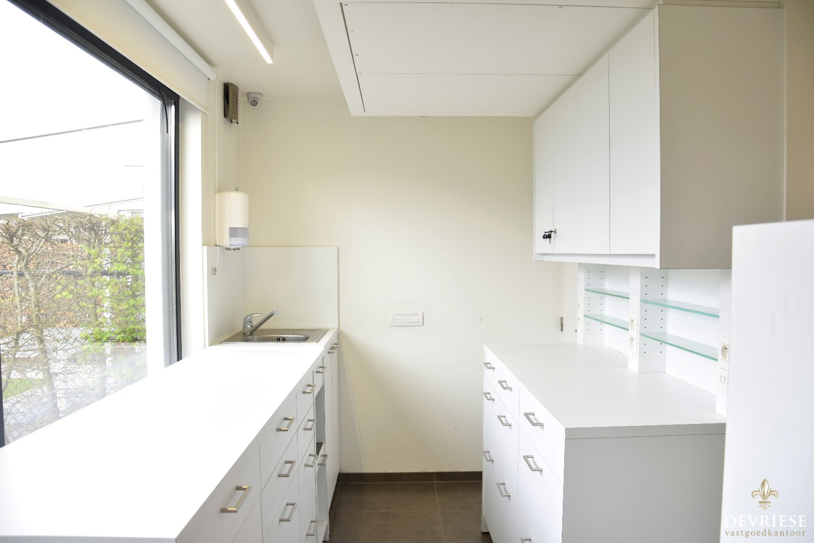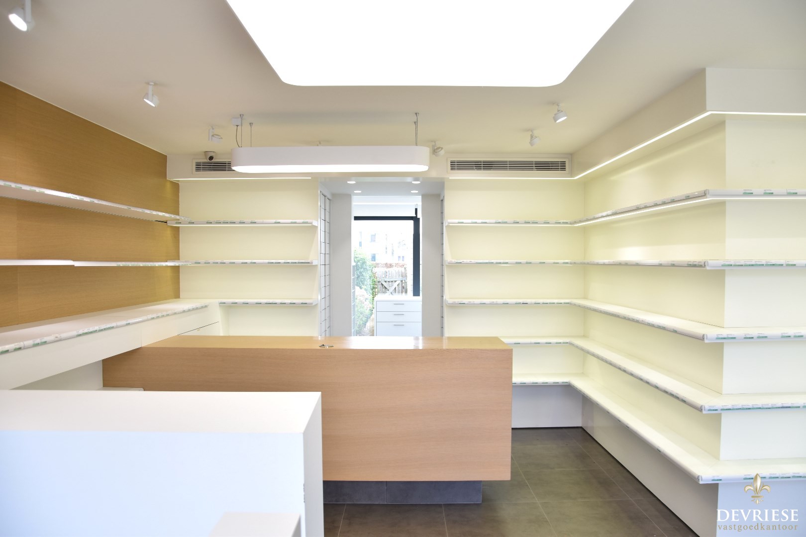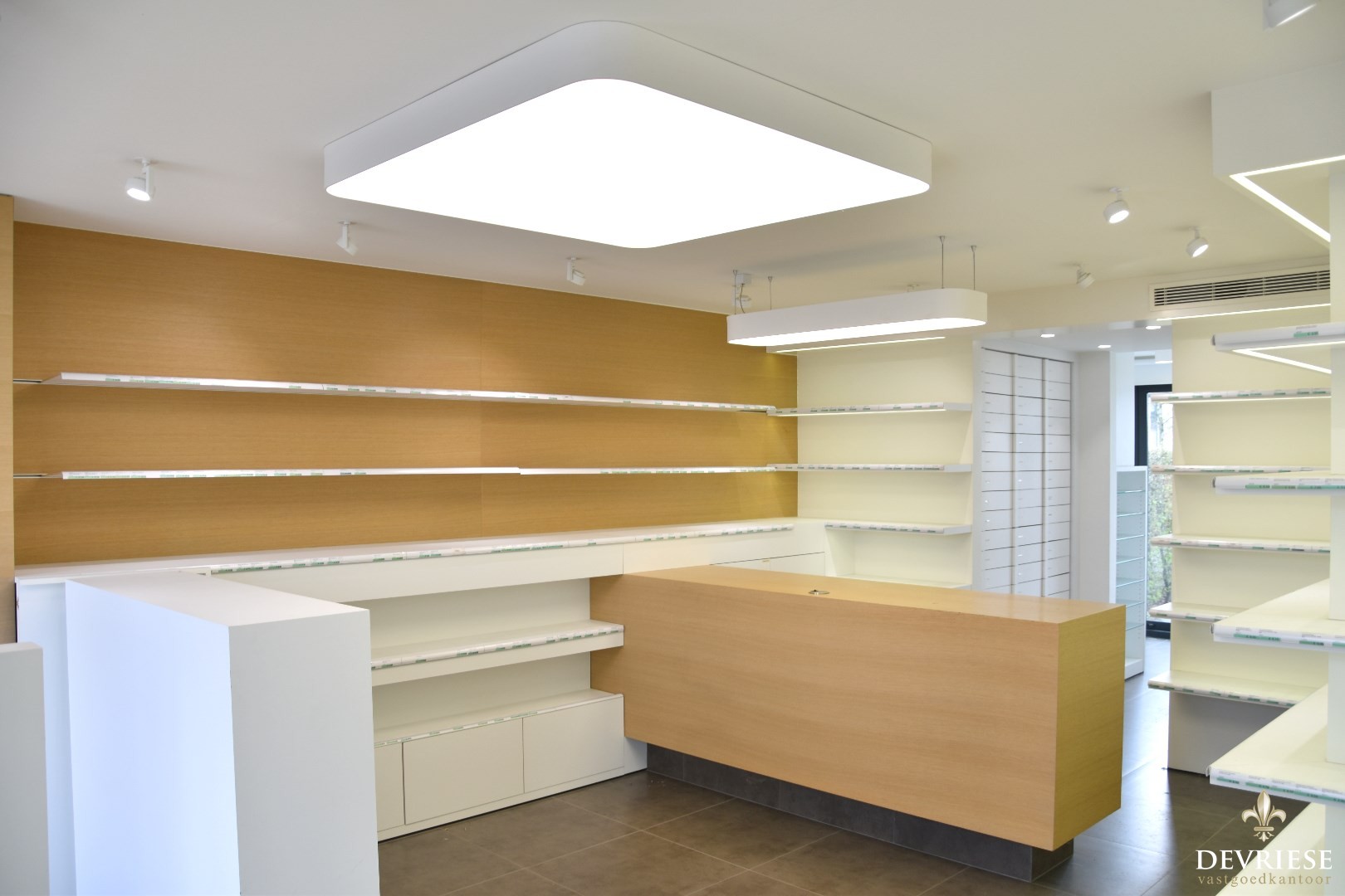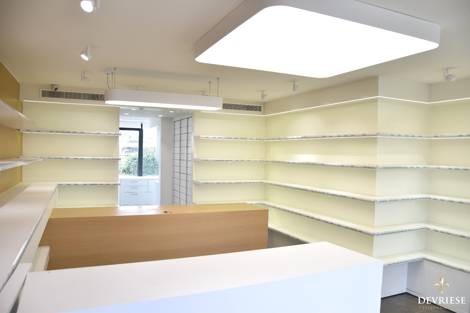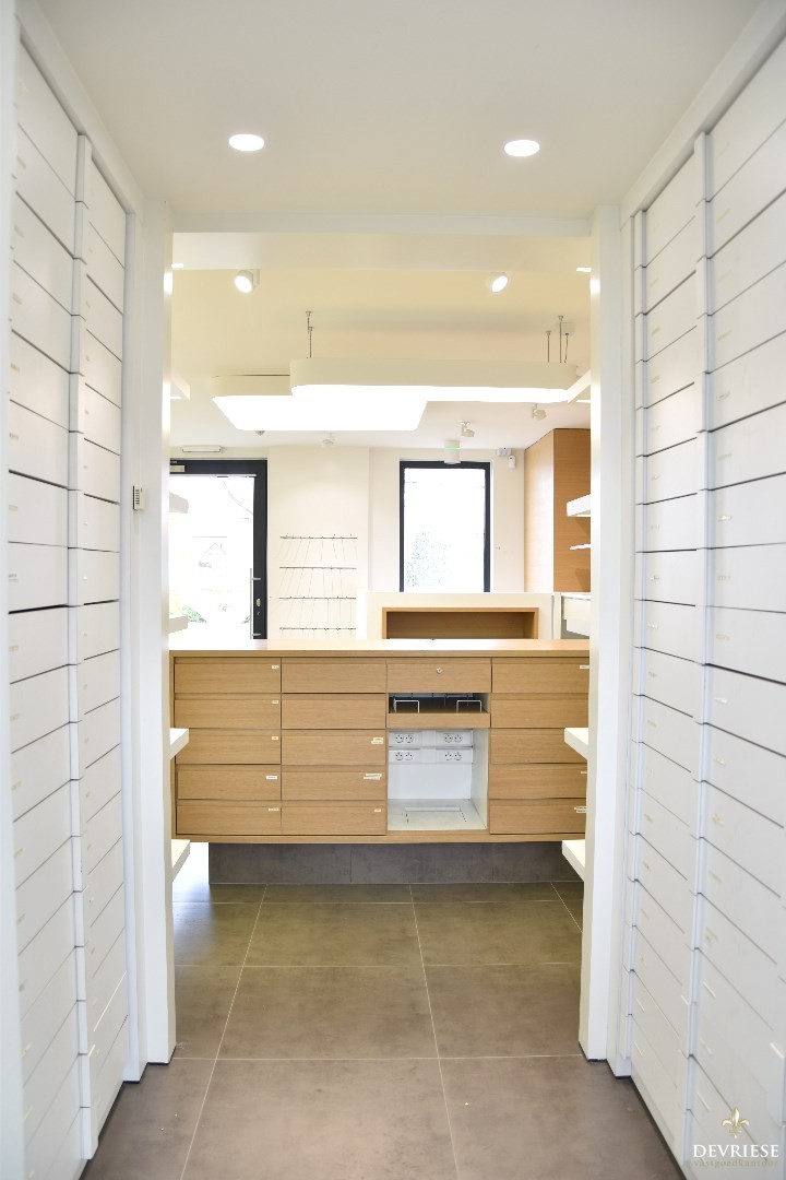 Het gelijkvloers deed vroeger dienst als apotheek maar is ook uitermate geschikt als kapsalon, schoonheidssalon, of voor wie een vrij beroep uitoefent.